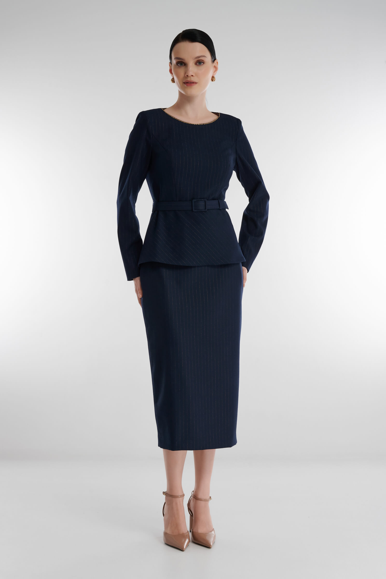 Блузка с баской — воплощение утонченности, которая уместна и в деловой, и в вечерней обстановке. Принт визуально вытягивает силуэт. Баска подчеркивает талию. Декоративная окантовка по вырезу добавляет благородный акцент. В паре с юбкой из той же линии блузка превращается в гармоничный комплект для офиса, романтического ужина или особого случая.
