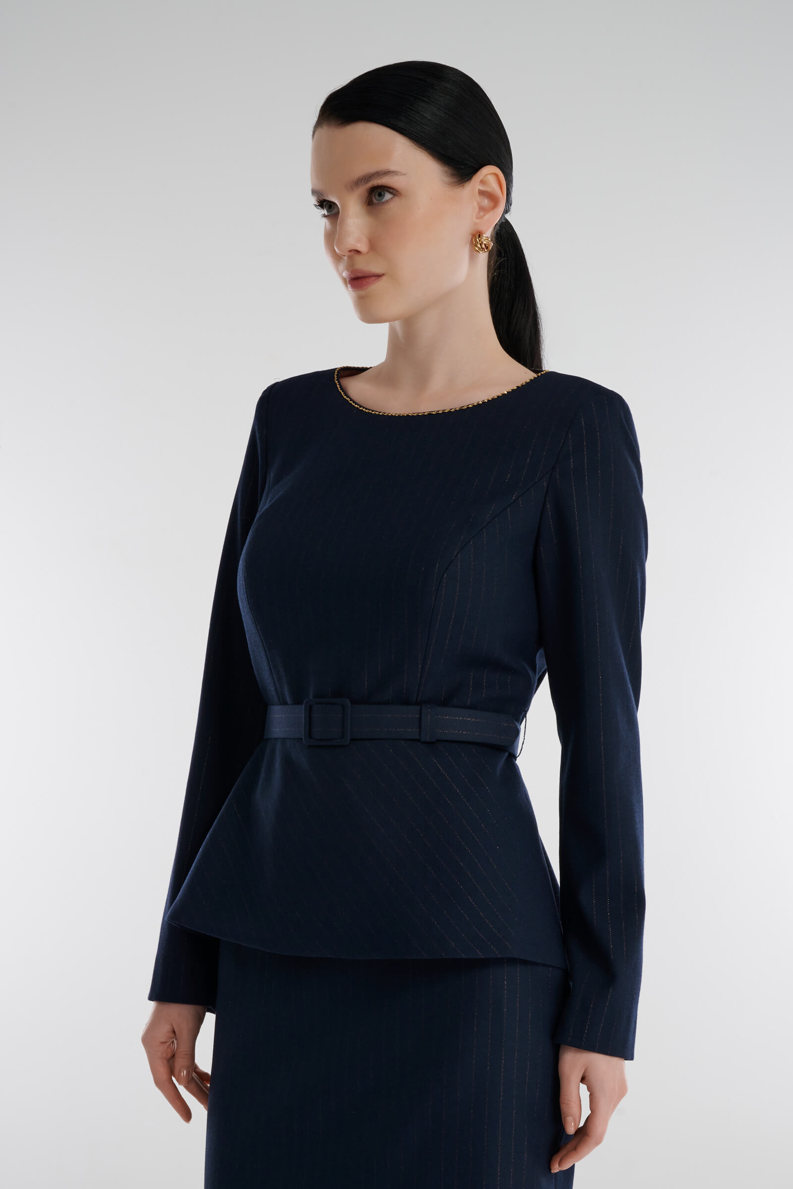 Блузка в полоску с баской Caterina Leman