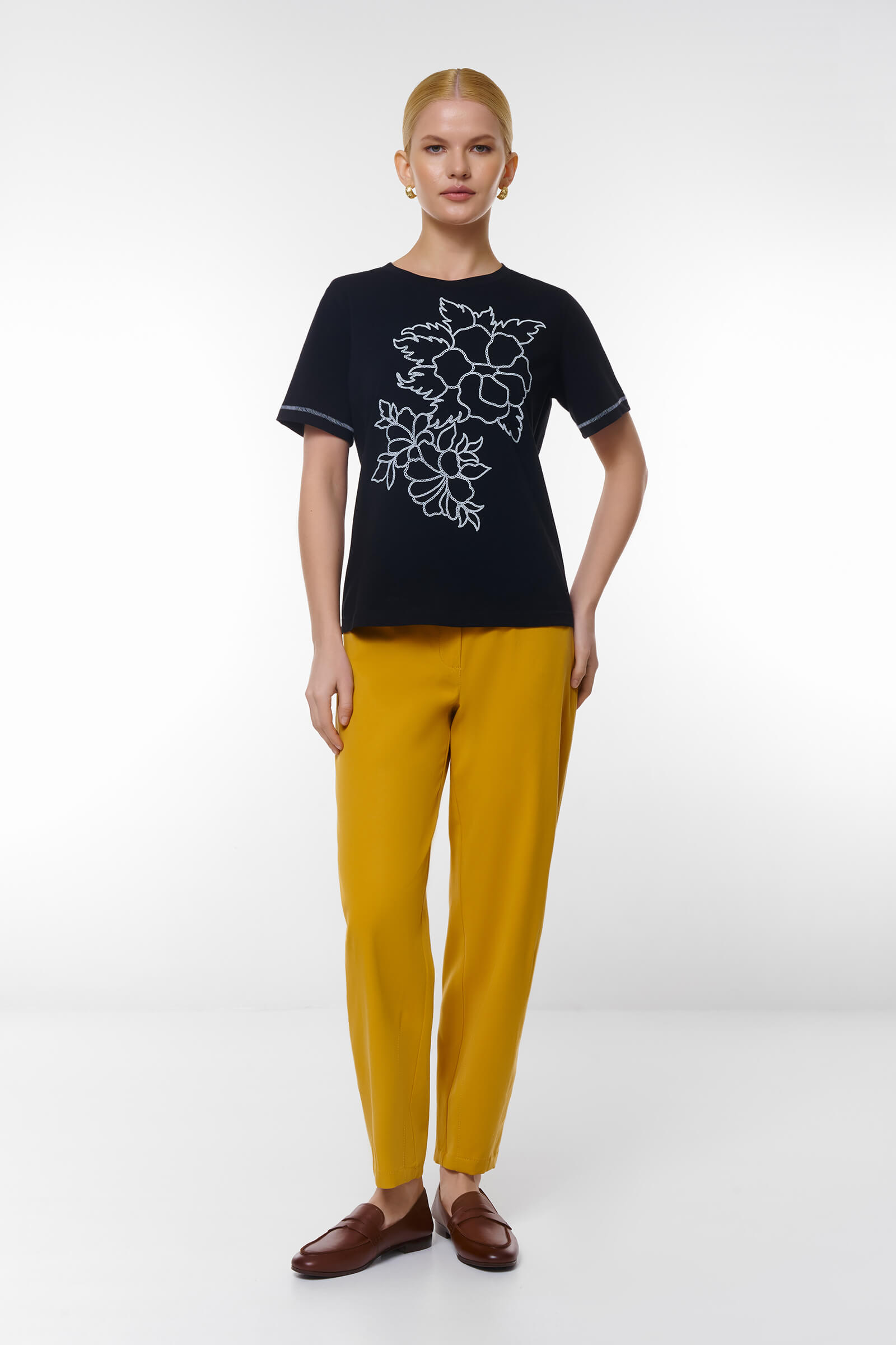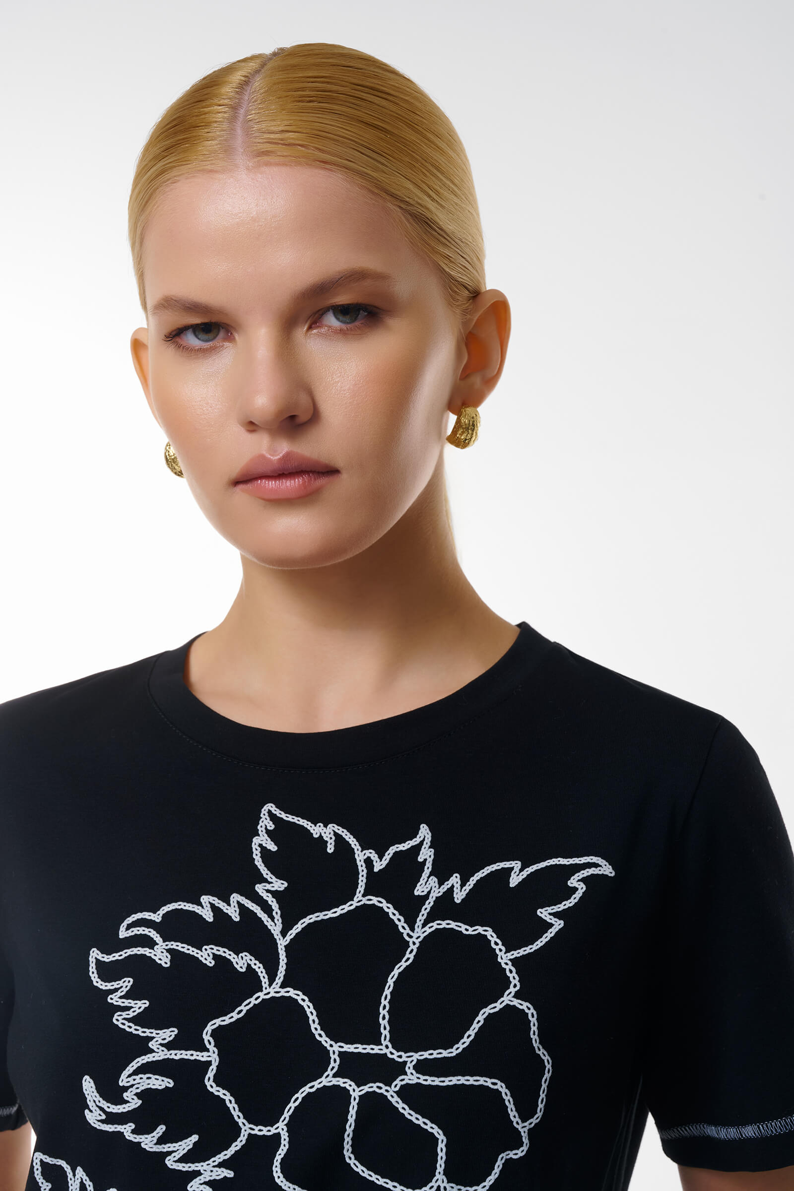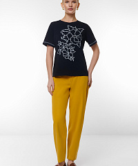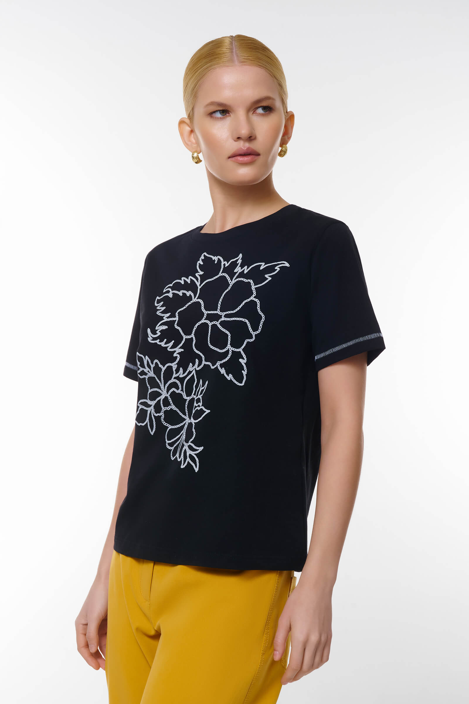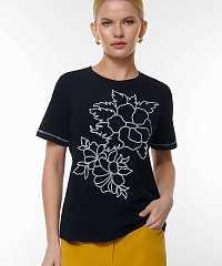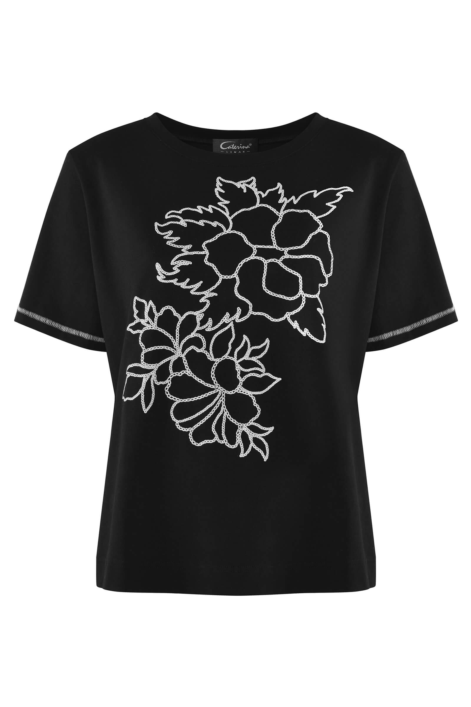 Футболка с цветочной вышивкой от Caterina Leman. Выполненная из мягкого и дышащего хлопка, эта футболка станет идеальным дополнением к вашему гардеробу. Свободный крой и короткие рукава обеспечивают комфорт в любое время года, а изысканная вышивка добавляет нотку изящества. Подойдет как для повседневной носки, так и для особых случаев.