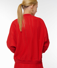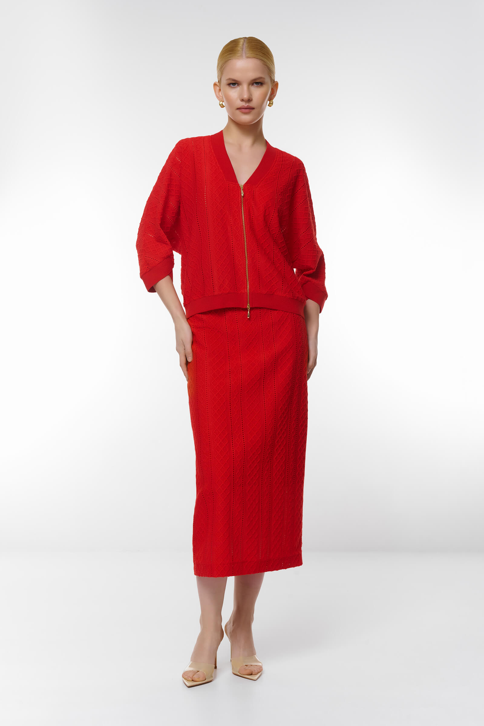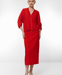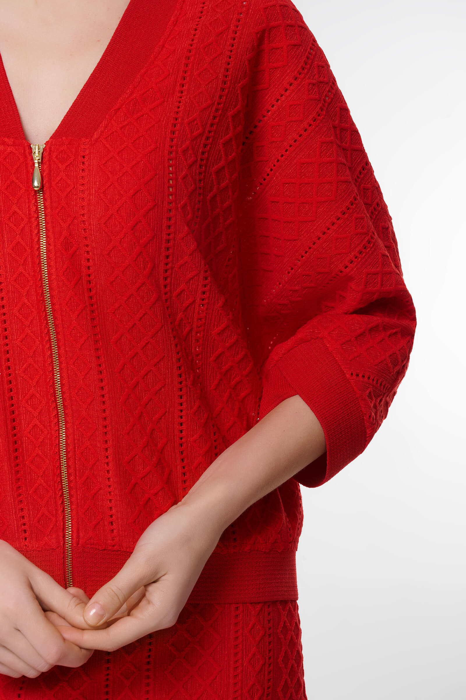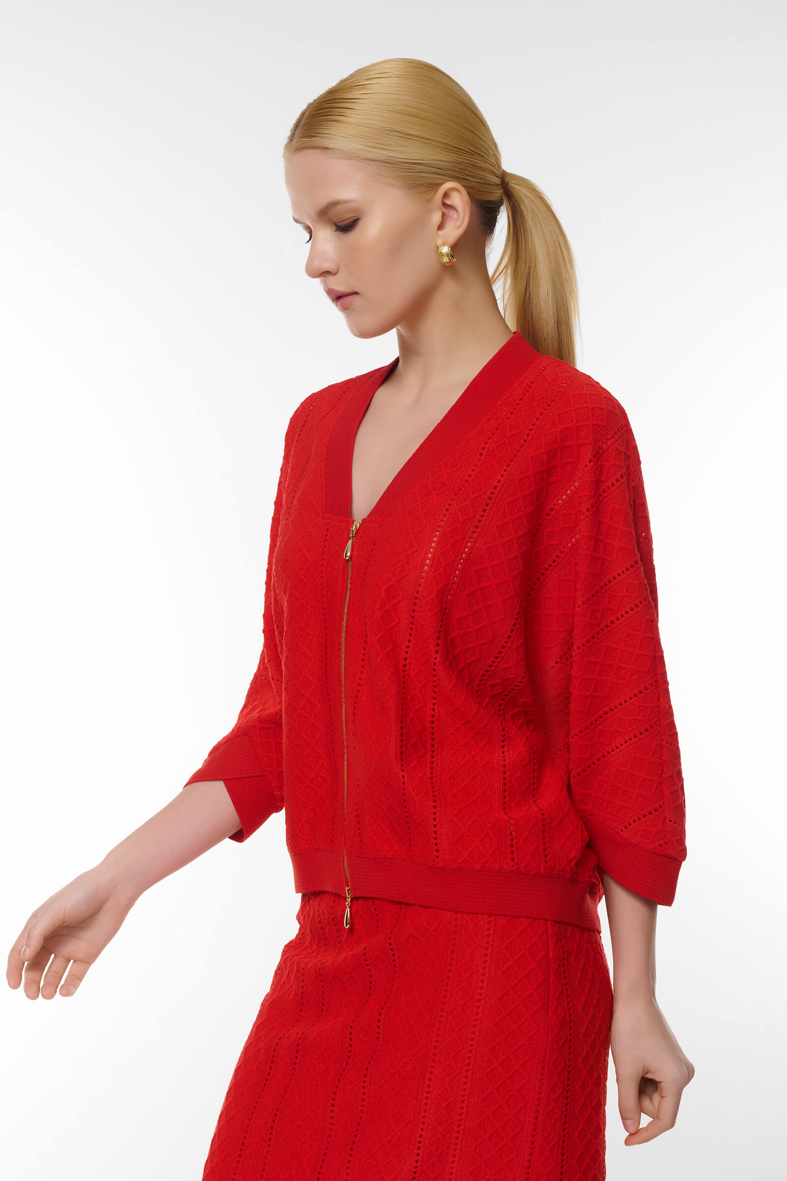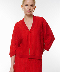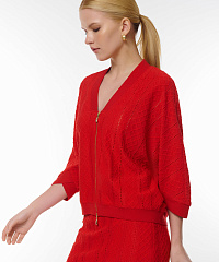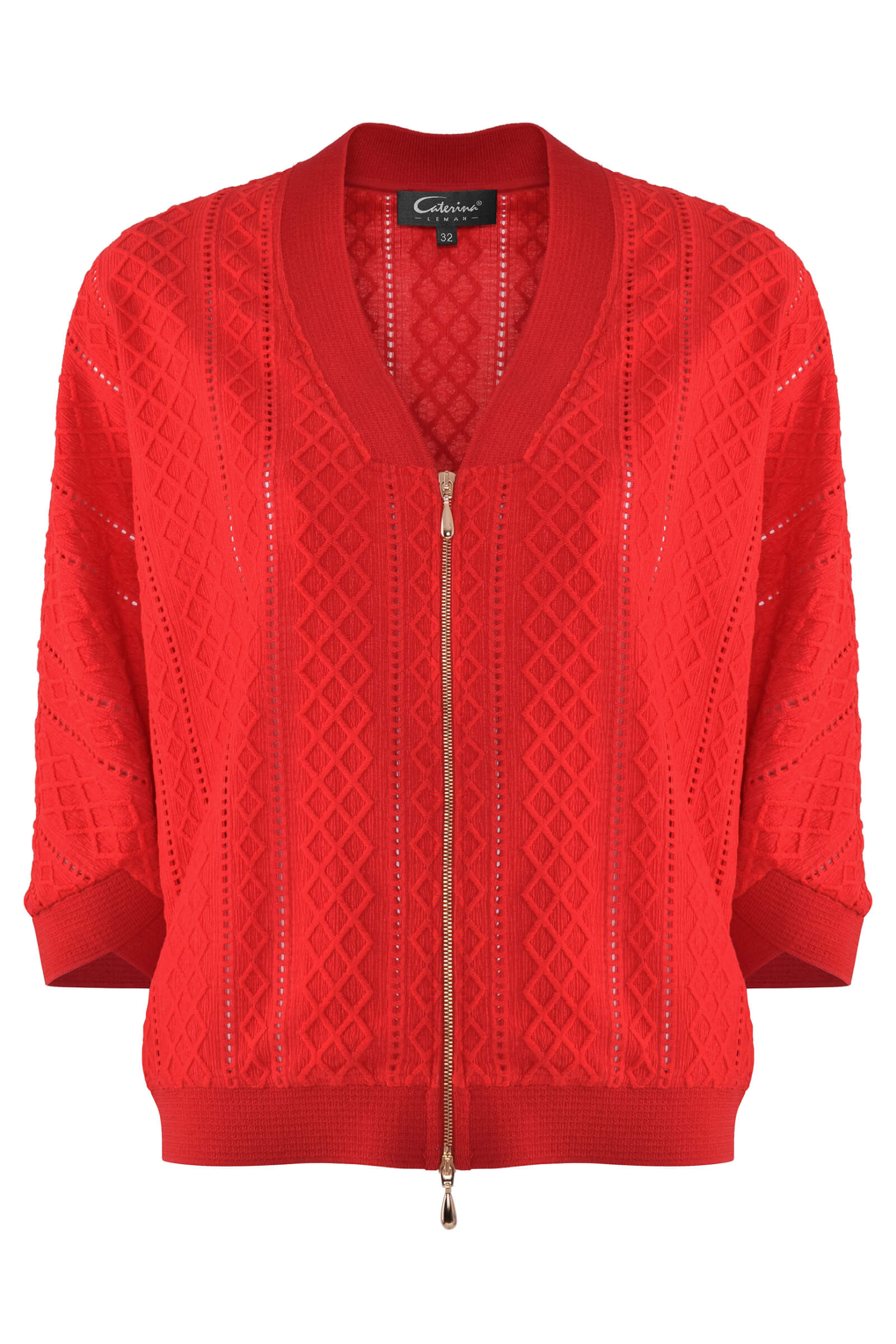 Стильная блузка на молнии от Caterina Leman, насыщенного красного цвета, она прекрасно сочетает комфорт и элегантность. Уникальный узор придает модели особый шарм, а короткие рукава создают легкость и свежесть образа. Застежка-молния обеспечивает удобство и подчеркивает форму. Идеально подходит как для ежедневных образов, так и для особых случае.