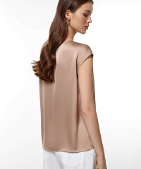 Элегантный топ со струящейся фактурой станет универсальной основой гардероба. Лаконичный дизайн уместен и в деловых, и в вечерних образах. Свободный крой позволяет носить изделие навыпуск или заправленным — в любом варианте образ выглядит стильно и современно