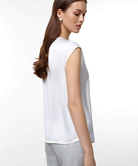 Элегантный топ со струящейся фактурой станет универсальной основой гардероба. Лаконичный дизайн уместен и в деловых, и в вечерних образах. Свободный крой позволяет носить изделие навыпуск или заправленным — в любом варианте образ выглядит стильно и современно