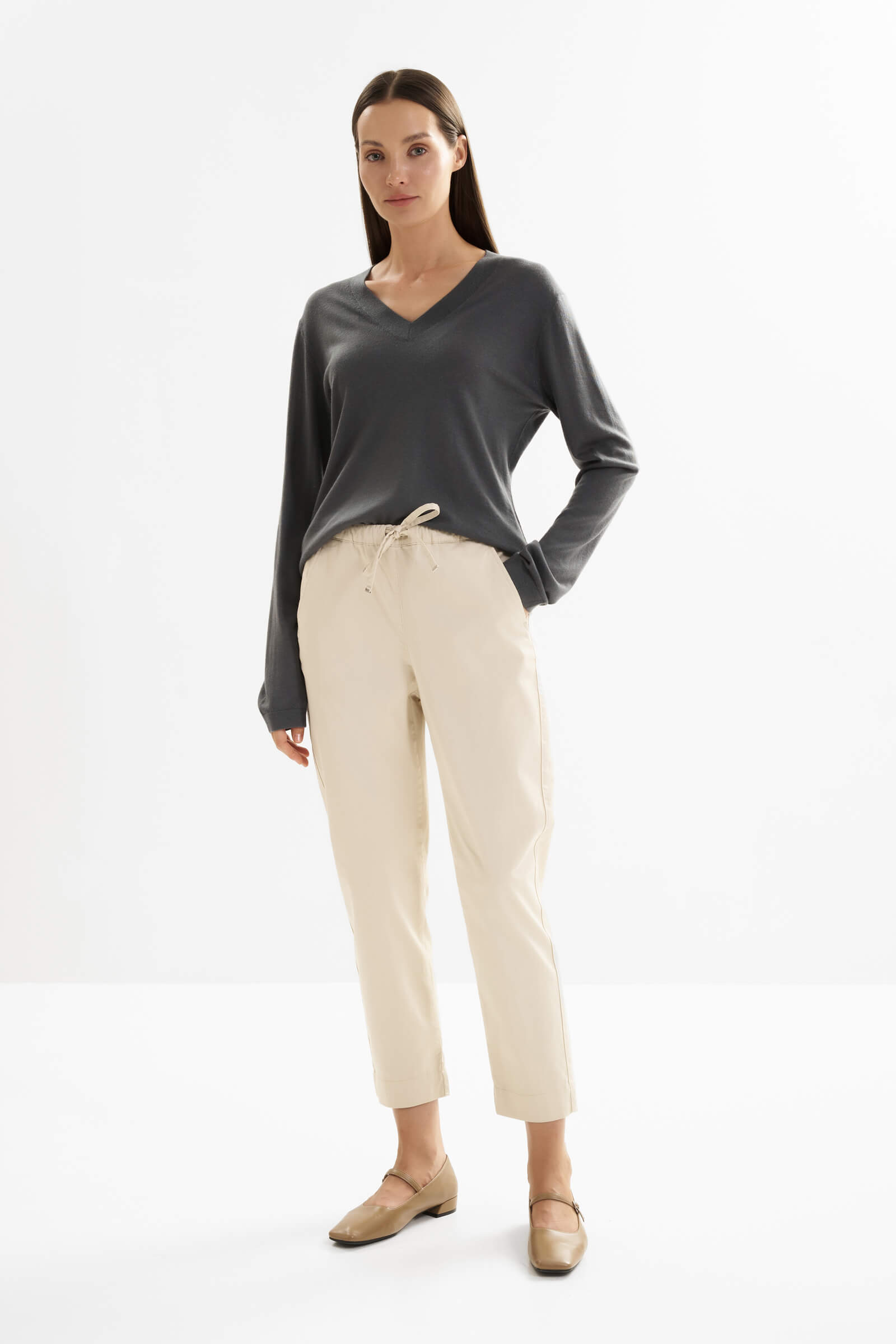Зауженные хлопковые брюки на завязках MM