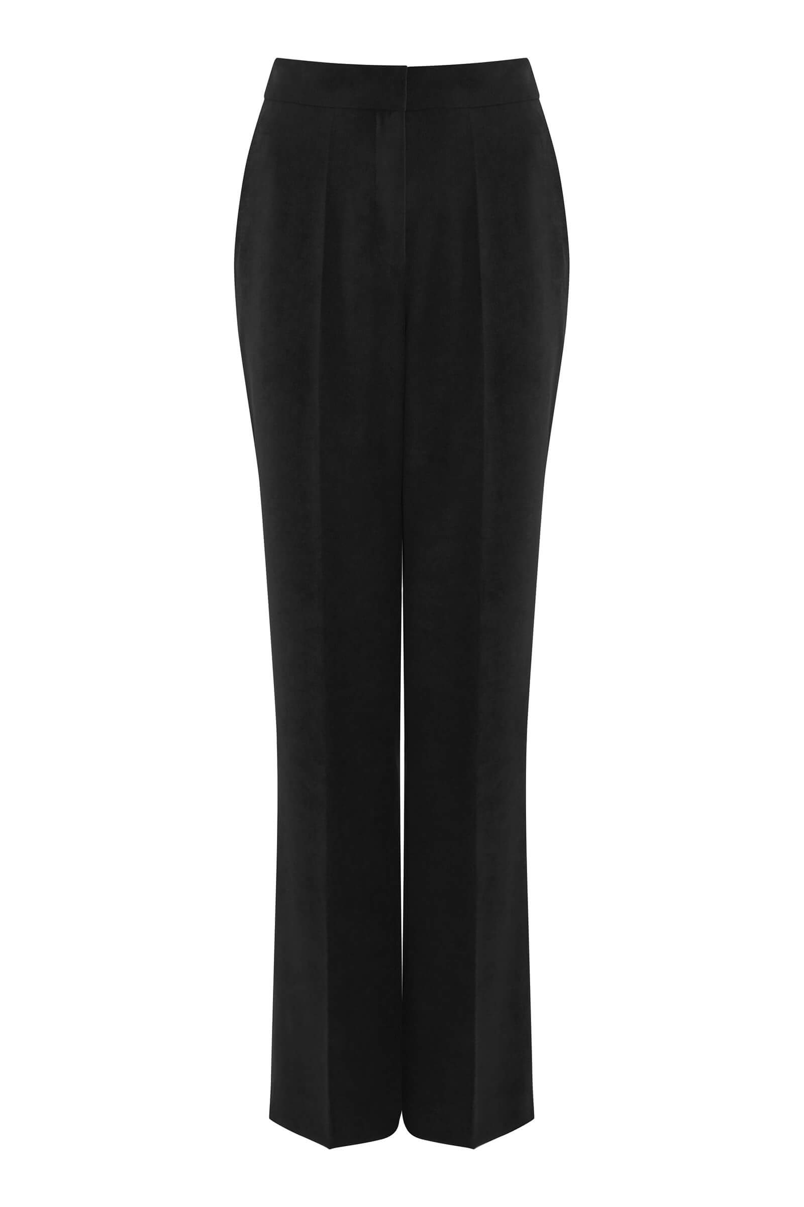 Брюки прямого кроя с завышенной посадкой. Пояс с резинкой сзади гарантирует комфорт во время носки. Модель выполнена из мягкого костюмного материала на основе вискозы. Стилизуйте брюки с пиджаком из той же линейки для создания готового образа.