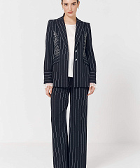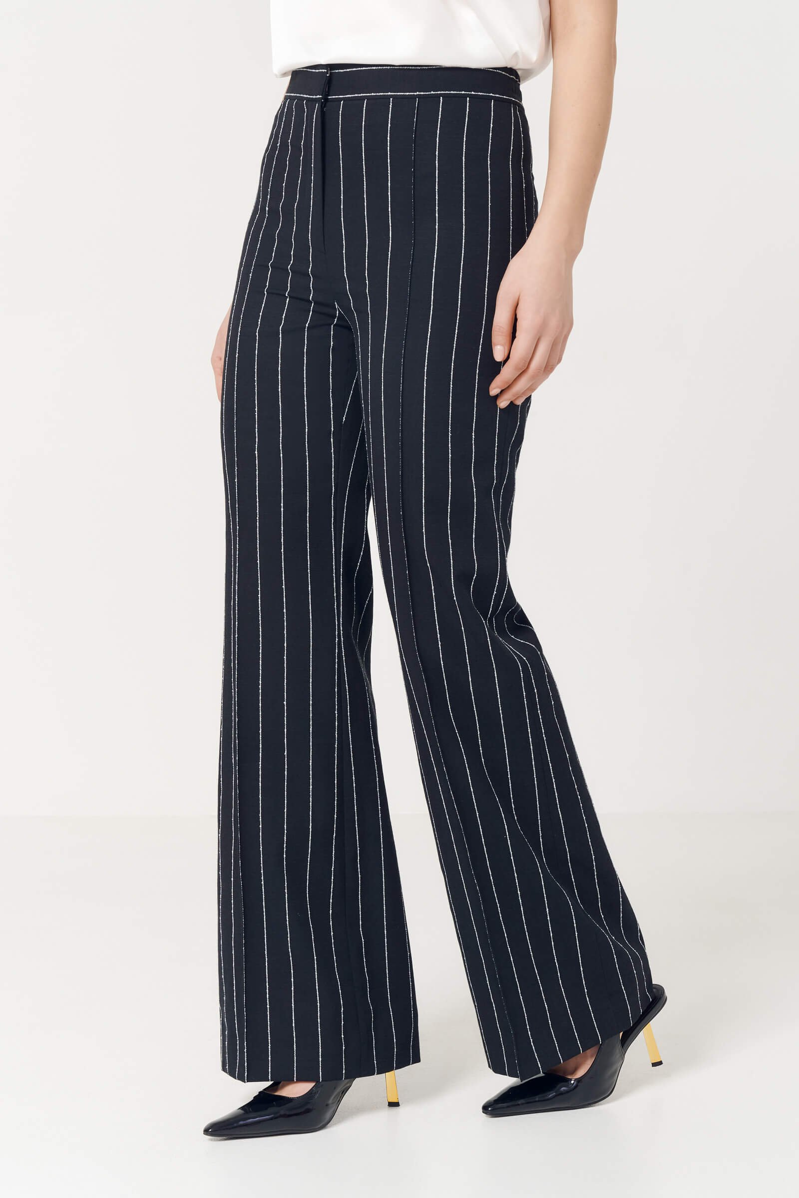Бпюки прямого кроя со стрелками.Застежка со скрытыми крючками и пуговицей и пояс на резинке обеспечивают идеальную посадку.
