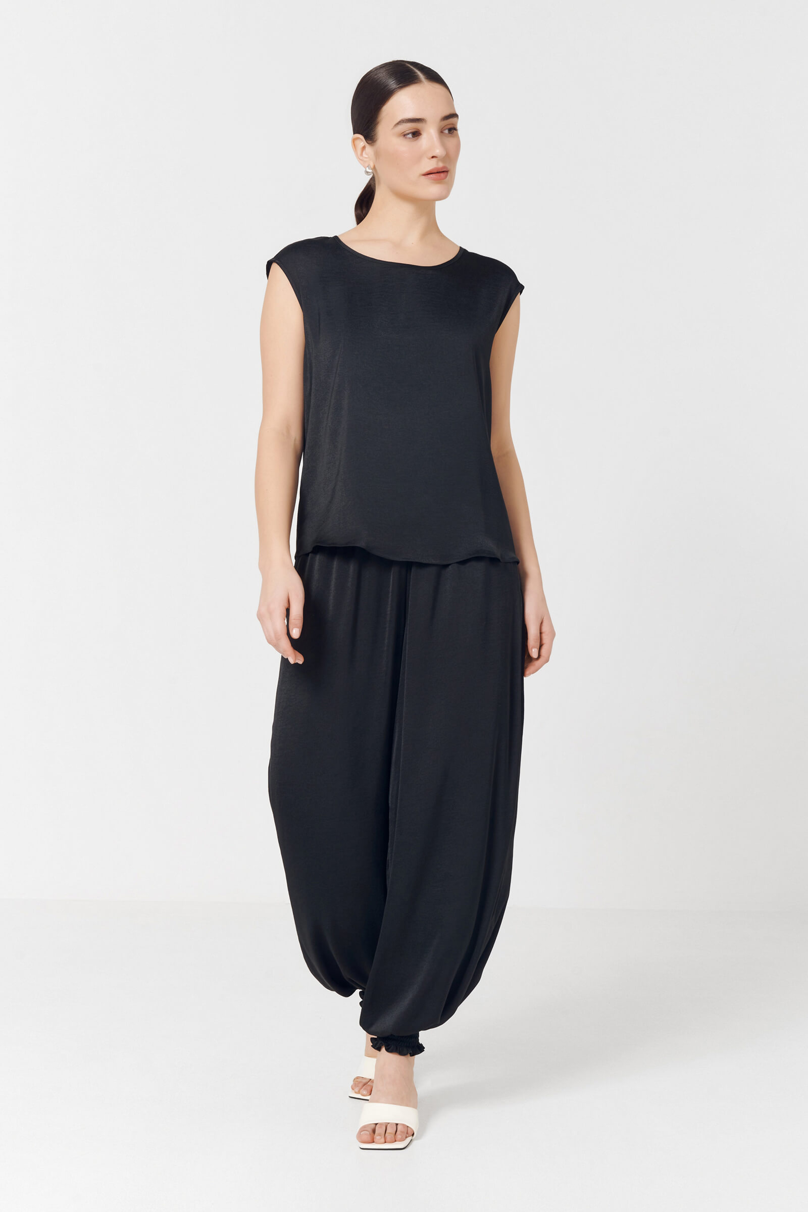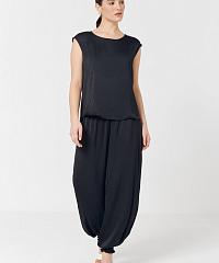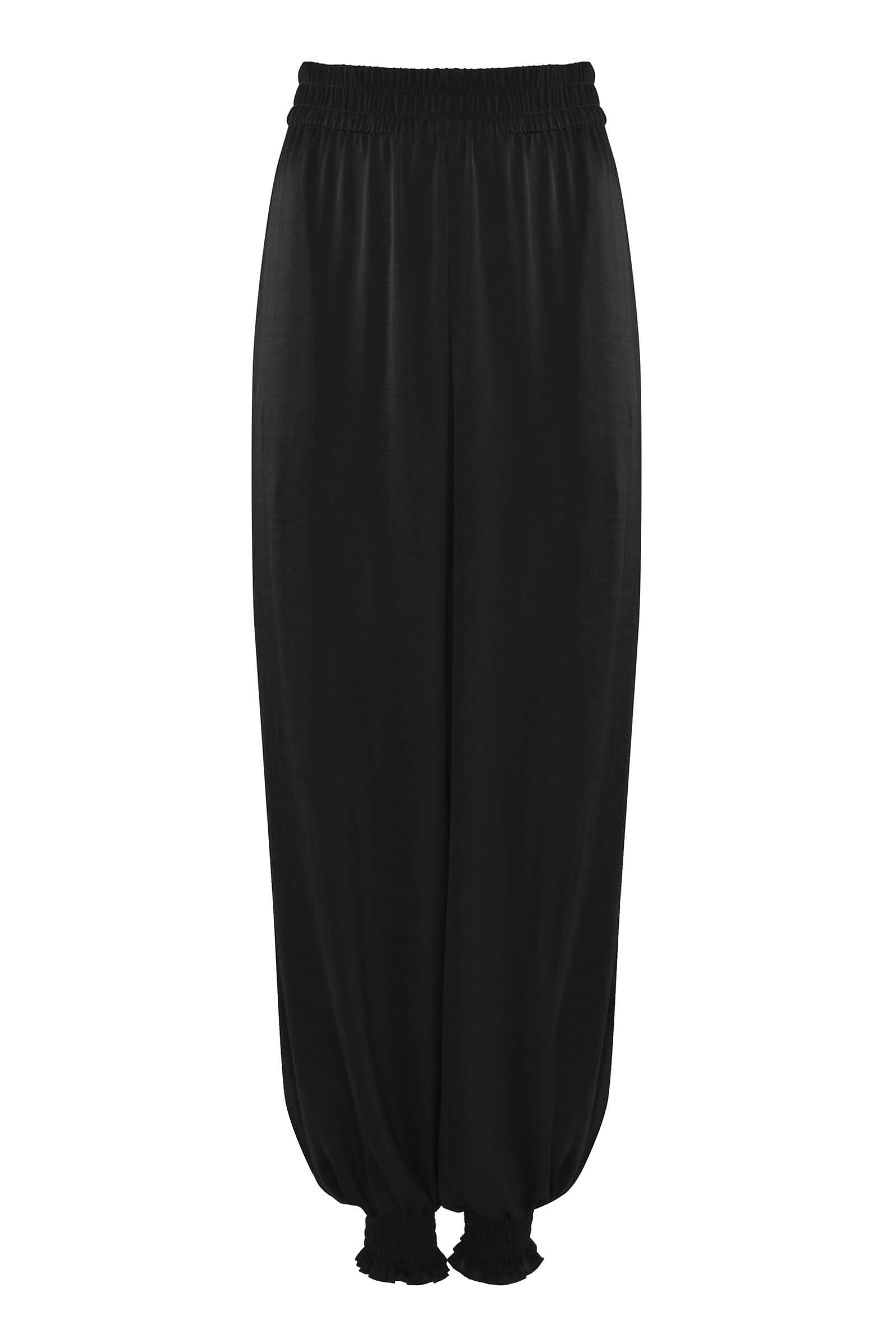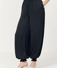 Элегантные брюки-алладины из легкого струящегося материала станут идеальным решением для лета. Эластичная резинка по линии талии и по низу брюк отлично тянется и не сдавливает. Боковые прорезные карманы служат идеальным дополнением.