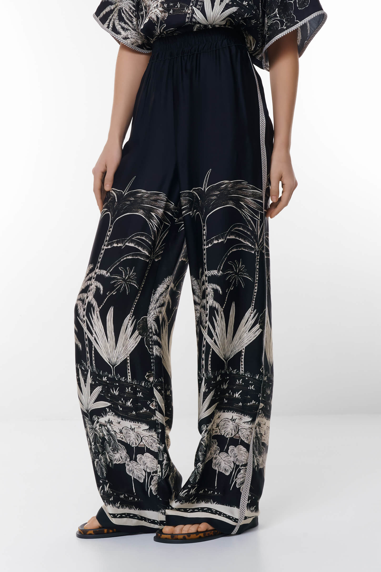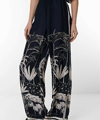 Добавьте в свой весенний гардероб эти стильные брюки с прекрасным растительным рисунком от Caterina Leman. Изготовленные из легкой и дышащей ткани, они обеспечивают комфорт в течение всего дня. Свободный покрой и эластичный пояс делают модель универсальной для любого типа фигуры. Черный цвет искусно контрастирует с изящным белым принтом, что позволяет легко сочетать брюки с различными топами и обувью. Идеальный выбор для прогулок по городу или уютных встреч с друзьями.