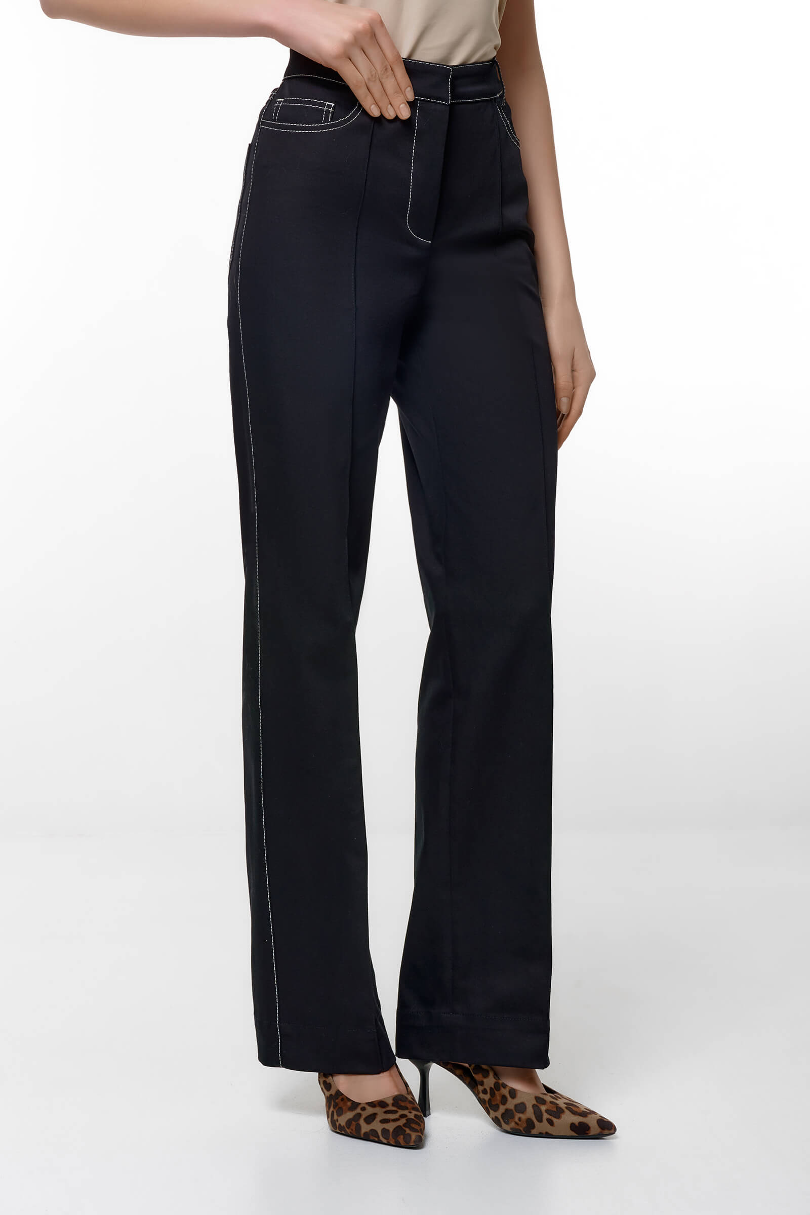 Брюки с контрастной строчкой визуально вытягивает силуэт.