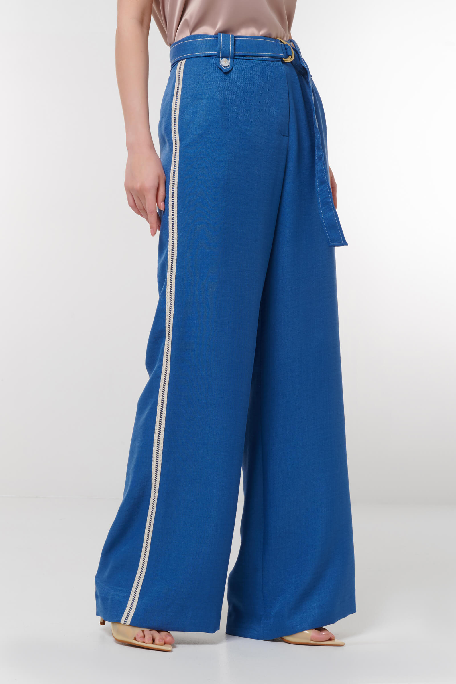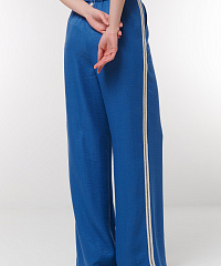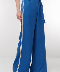 Добавьте в свой гардероб стильные брюки с контрастной строчкой. Эти широкие брюки с высокой талией обеспечивают комфорт и свободу движений, что делает их идеальным выбором для любого повода. Элегантный глубокий синий цвет подчеркивается контрастной отделкой, добавляя современный акцент вашему образу. Ремень в комплекте позволяет регулировать посадку по талии, а классические боковые карманы делают модель практичной. Создайте неповторимый стиль, сочетая эти брюки с различными топами и обувью!