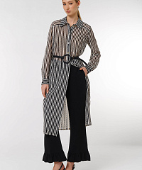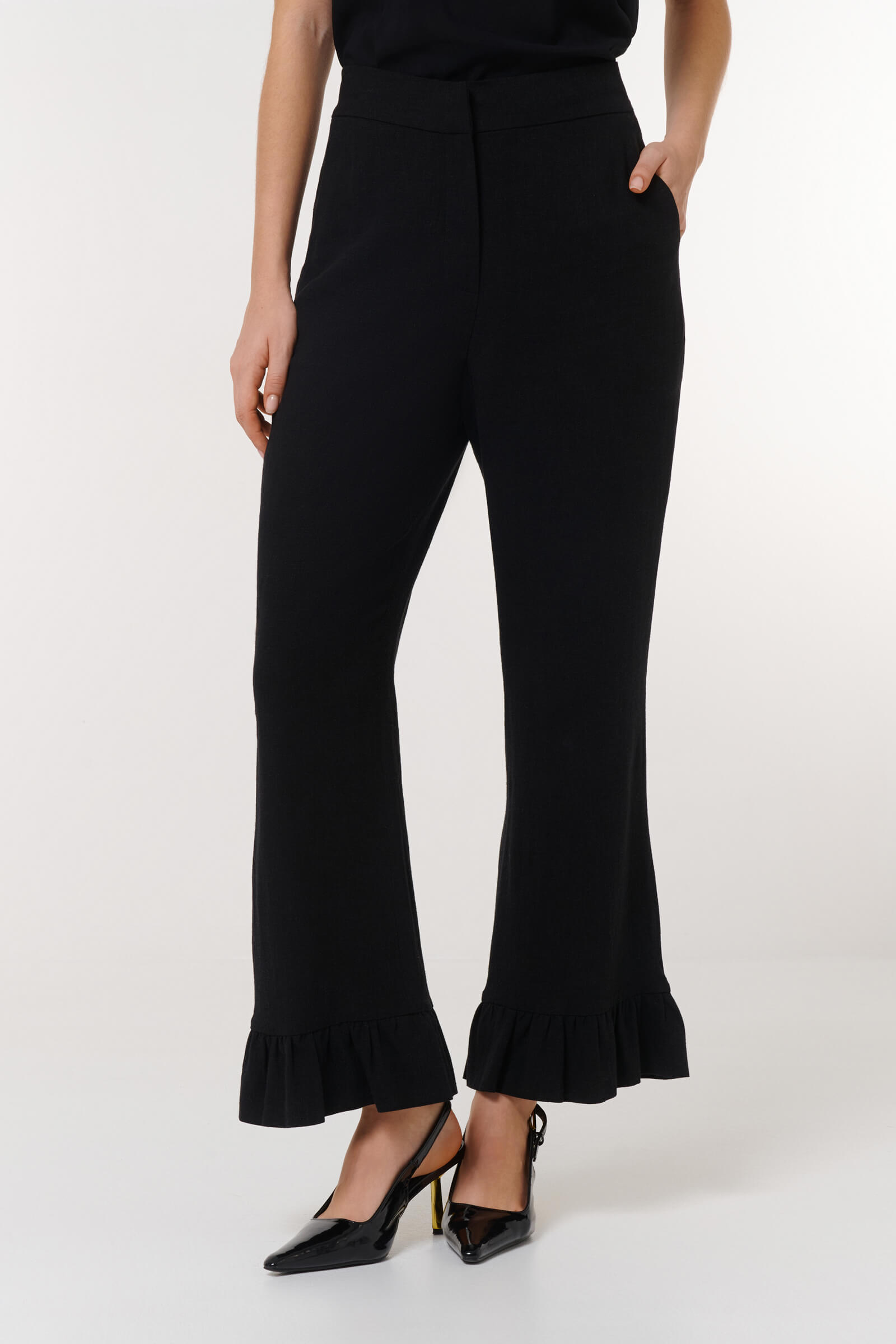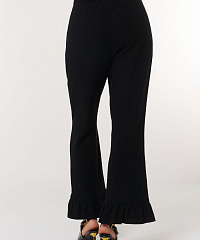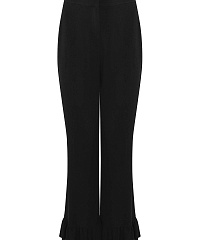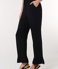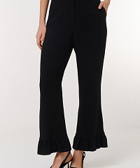 Стильные брюки с воланами добавят изысканности в ваш гардероб. Выполненные в классическом черном цвете ,они идеально подойдут как для офисных будней , так и для вечерних выходов. Высокая талия подчеркивает фигуру, а нежные воланы на подоле придуют образу легкость и воздушность.