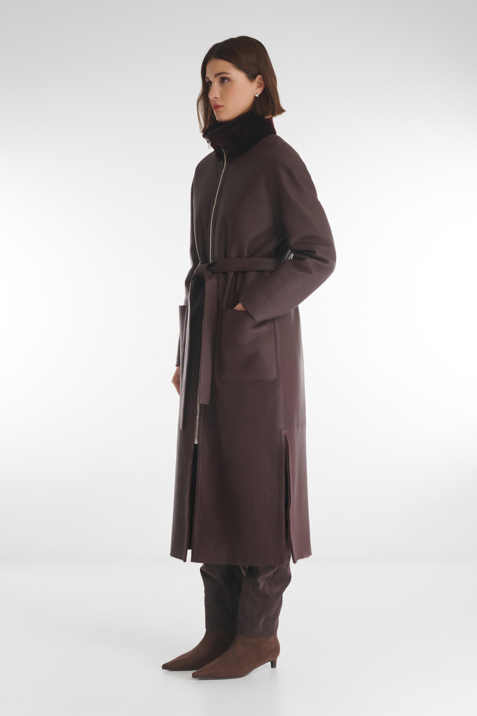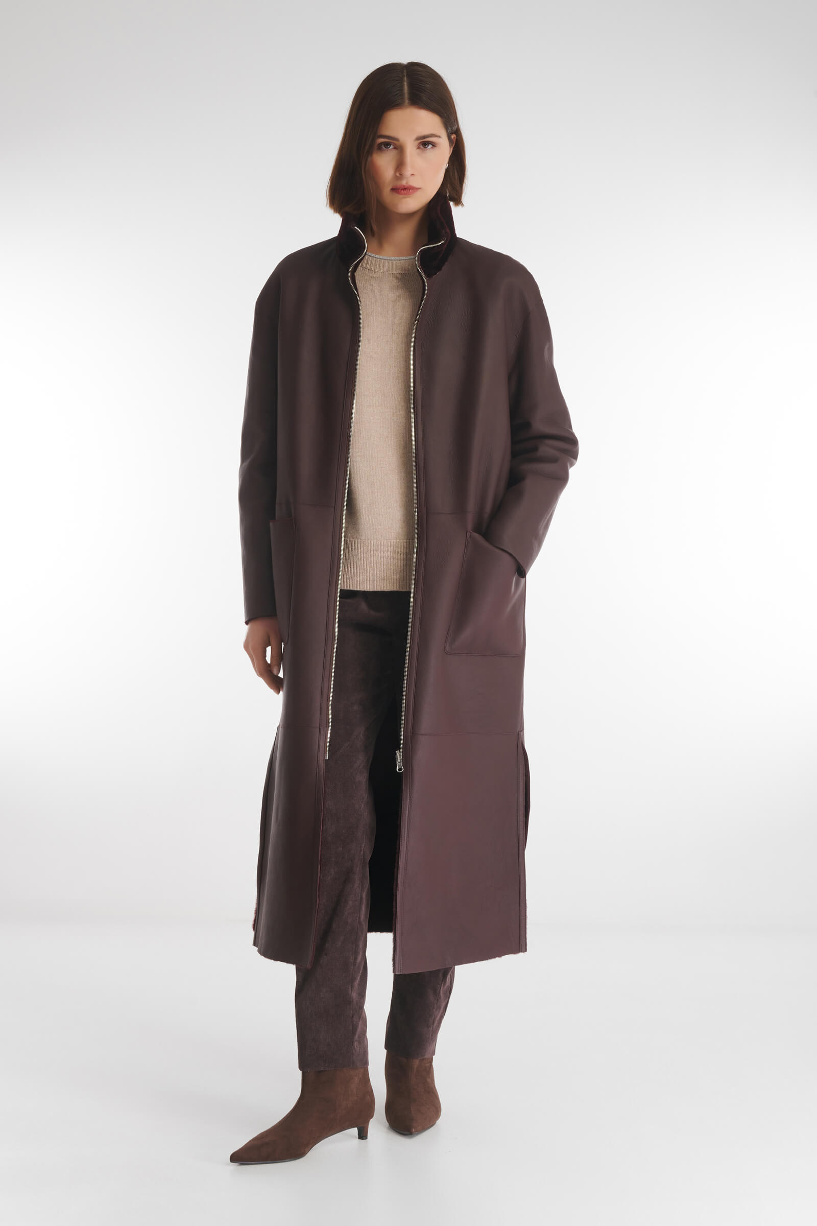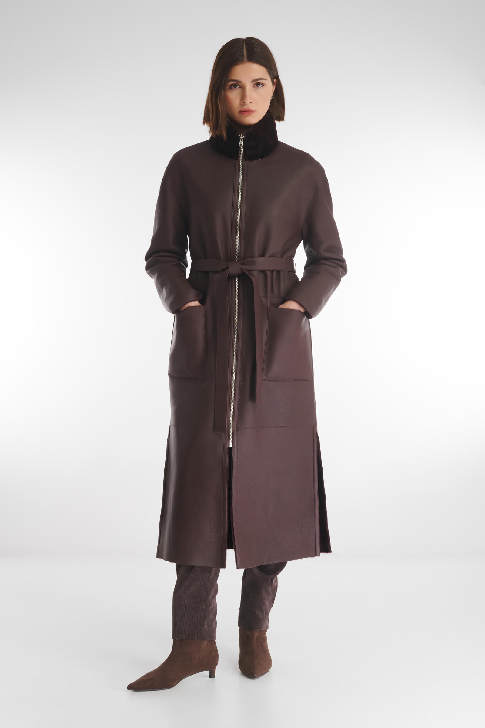 Изысканная двусторонняя дубленка, сочетающая роскошь натурального меха и элегантность натуральной кожи. Модель позволяет мгновенно менять образ. С обеих сторон изделия расположены накладные карманы. Элегантные боковые разрезы обеспечивают свободу движений.