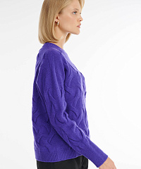 Уютный джемпер с круглым вырезом согреет вас в студеную погоду благодаря составу из смеси высококачественной шерсти и кашемира. Оригинальный вязаный узор и спущенная линия плеча дополняют дизайн.