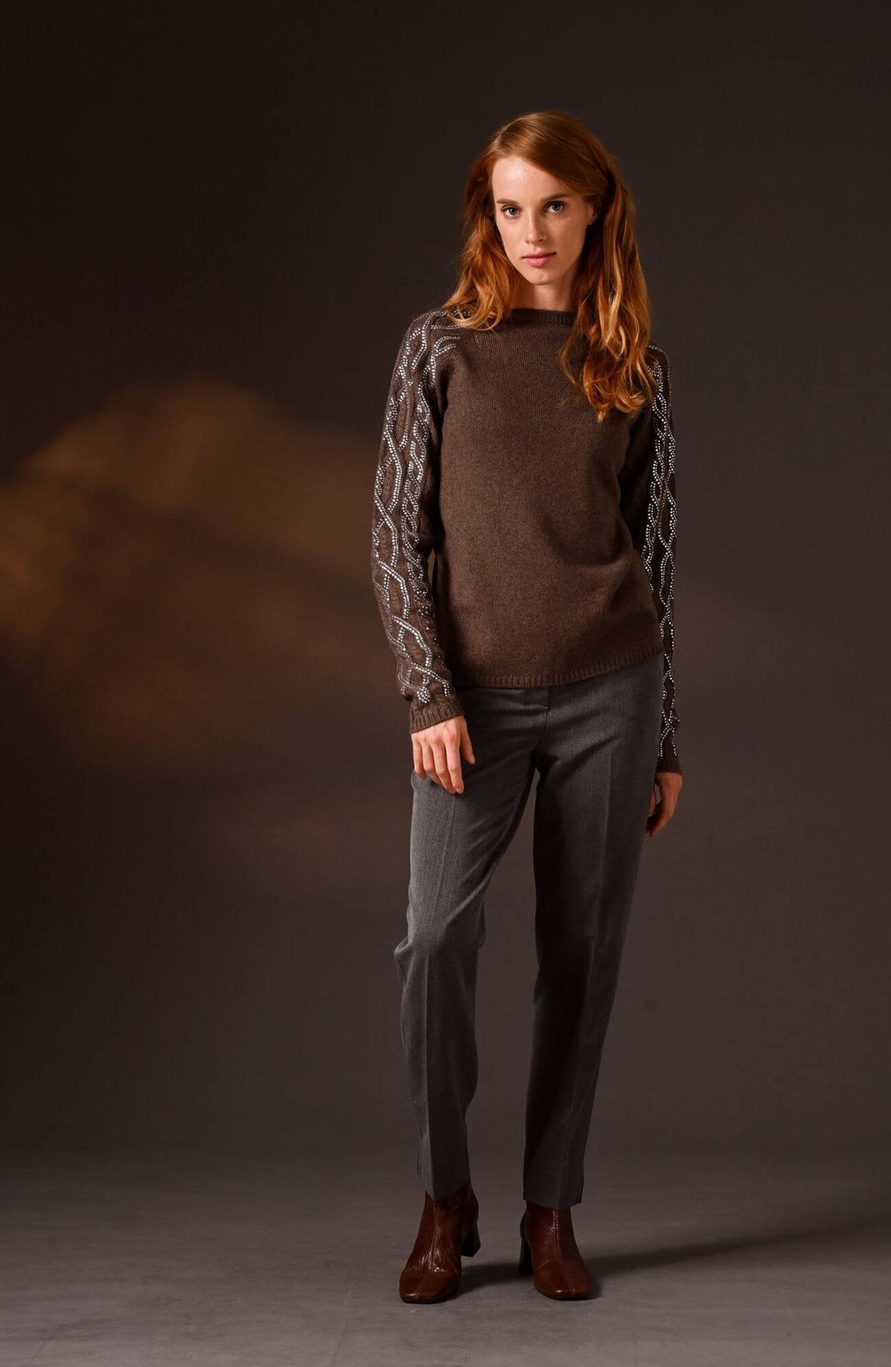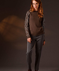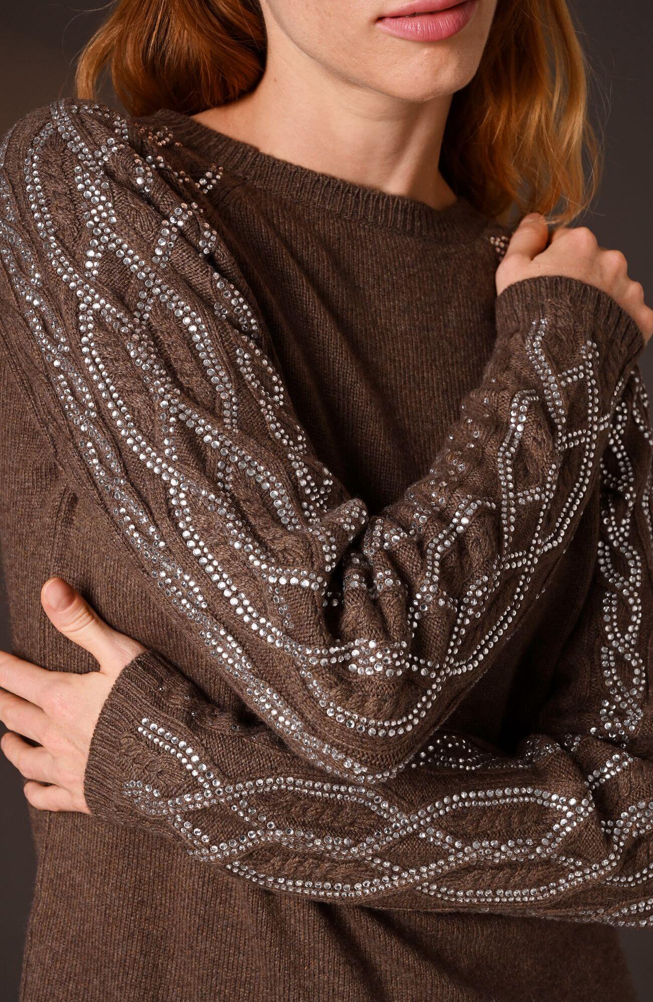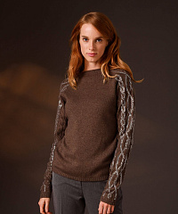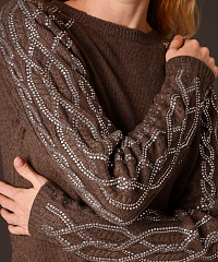 - Рукава украшены рельефной вязкой-косичкой и стразами