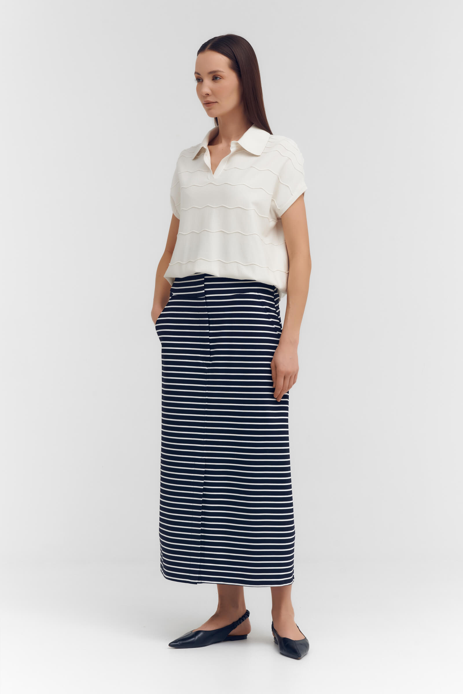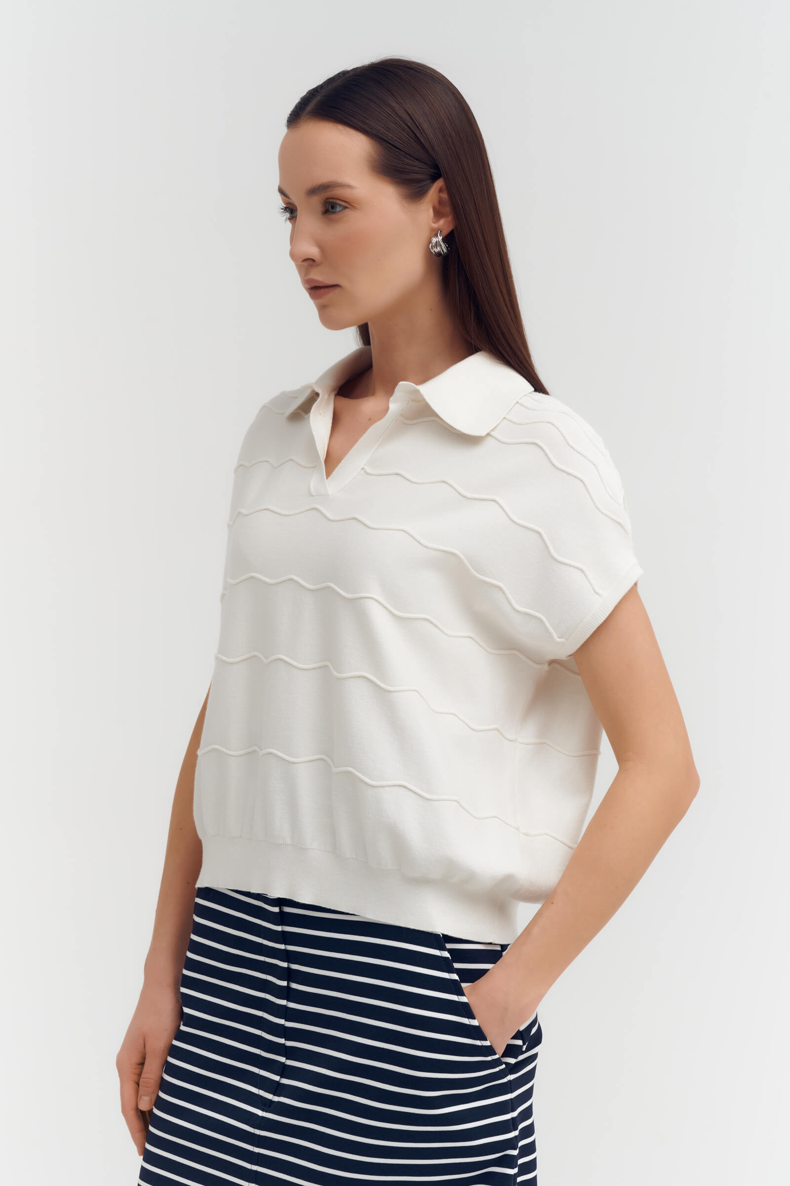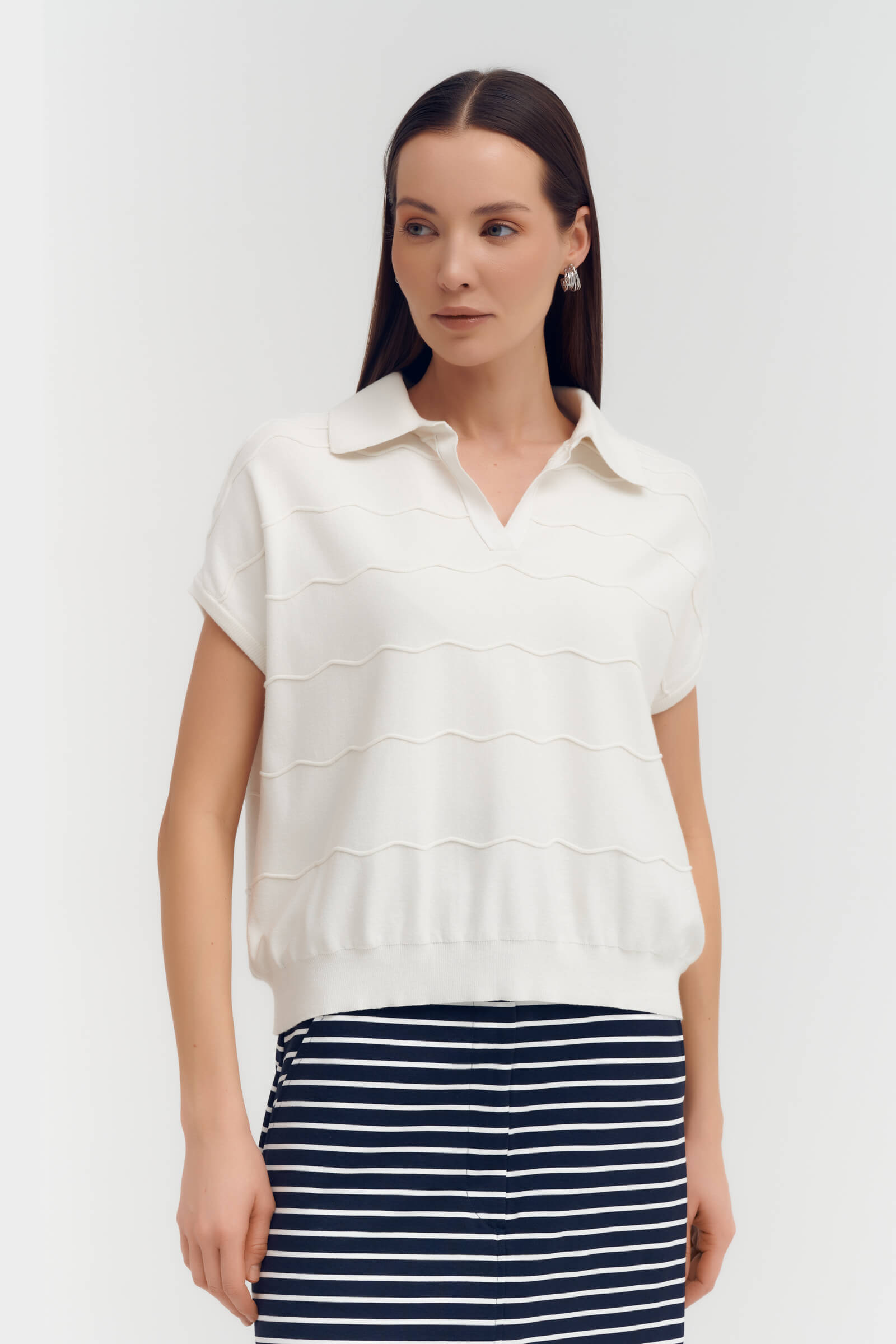 Джемпер с коротким рукавом и фактурным узором Sarah Pacini