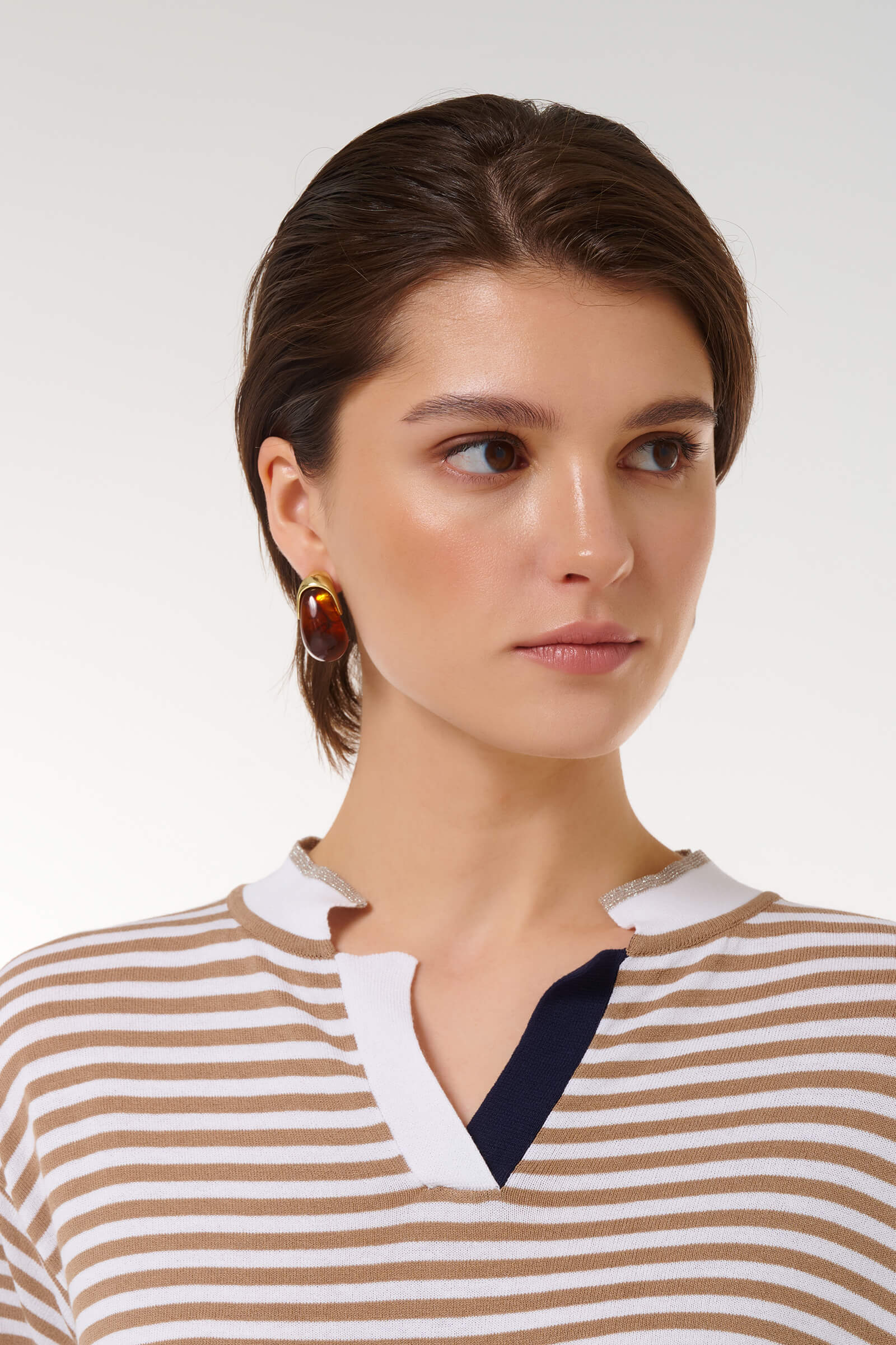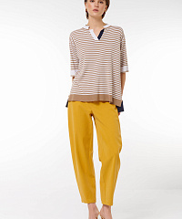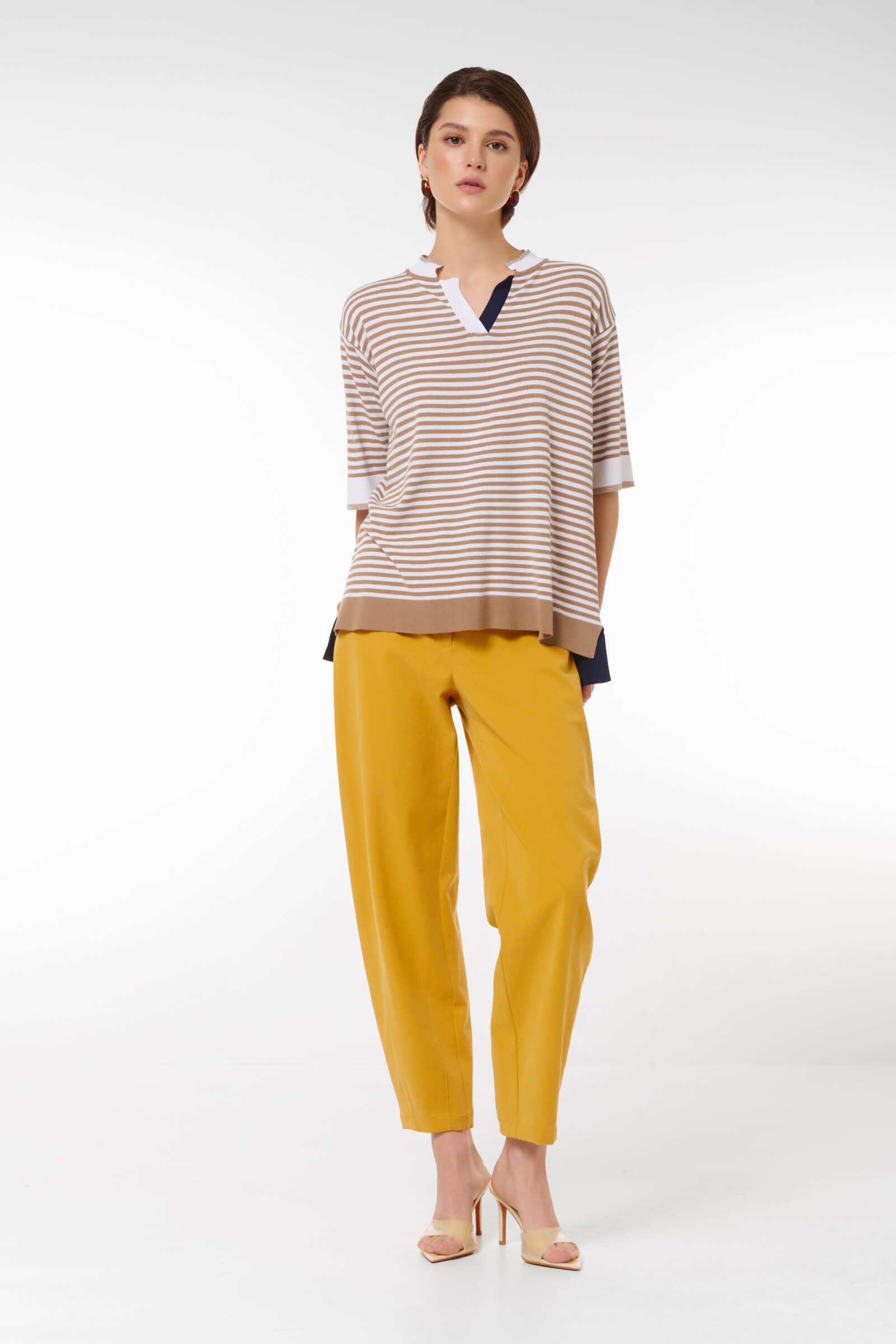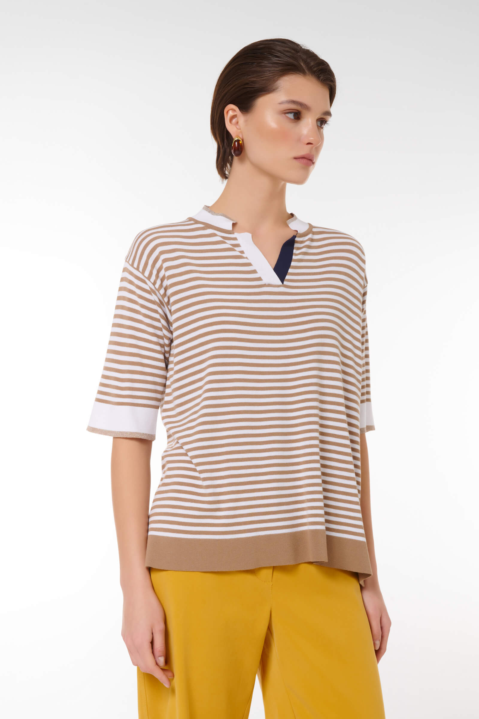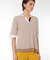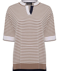 Стильный поло и короткие отворотные рукава добавляют шарм, а свободный силуэт делает его идеальным выбором для сочетания с различными элементами гардероба. Легкий и воздушный, этот джемпер прекрасно подойдет как для прогулок по городу, так и для уютных вечеров дома. Подчеркните свою индивидуальность и стиль, выбрав этот модный аксессуар!