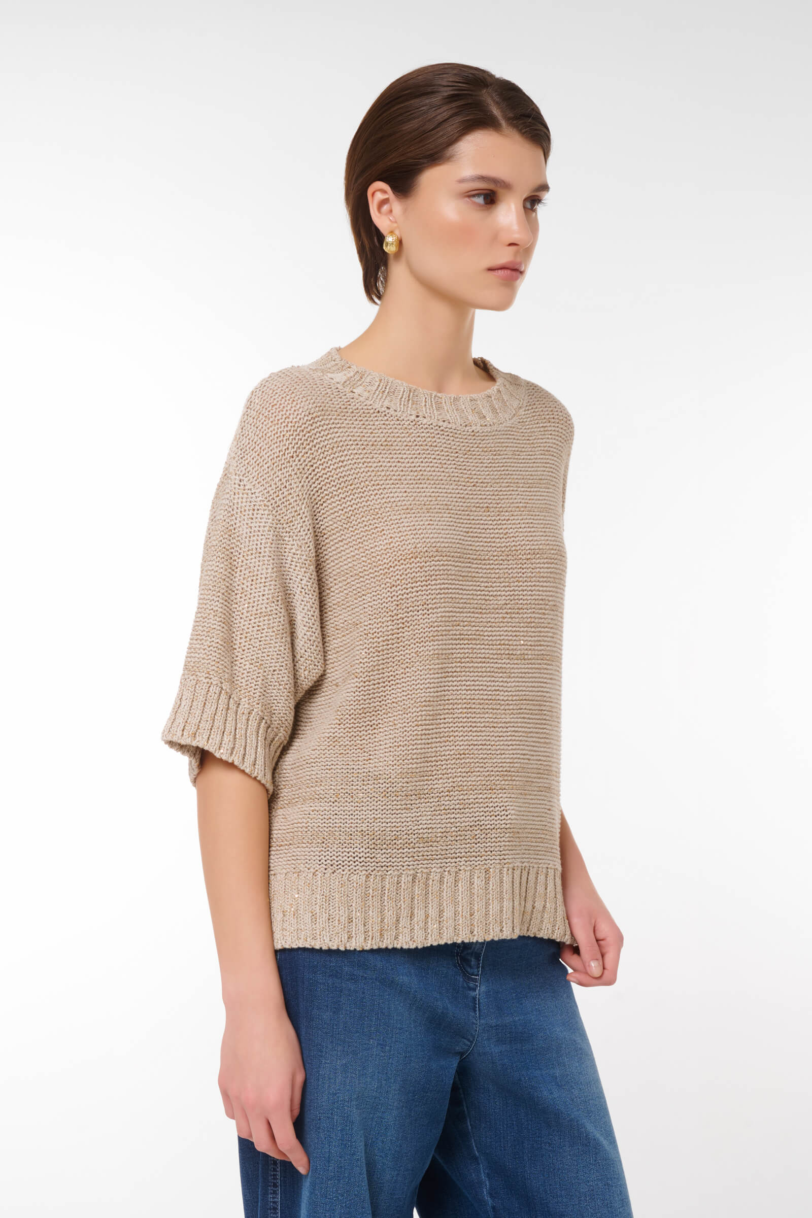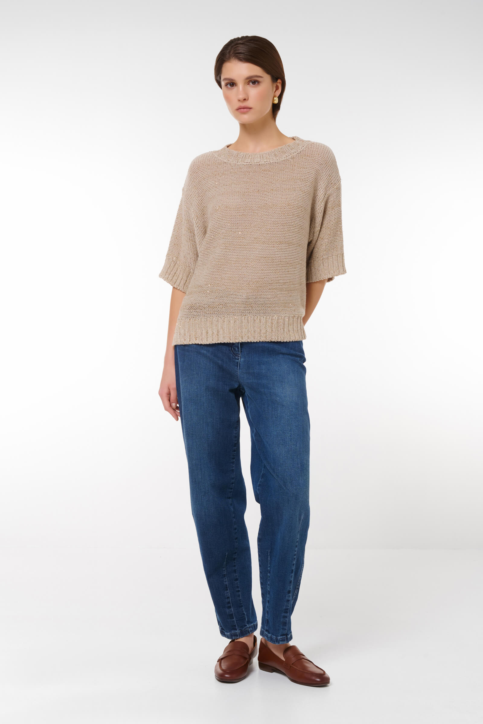 Джемпер с пайетками, который станет незаменимым элементом вашего гардероба.Удобный крой и короткие рукава делают этот джемпер идеальным для повседневного стиля и особых случаев. Сочетайте его с джинсами или юбкой для создания стильного образа. Позвольте себе наслаждаться качеством и элегантностью в каждой детали!