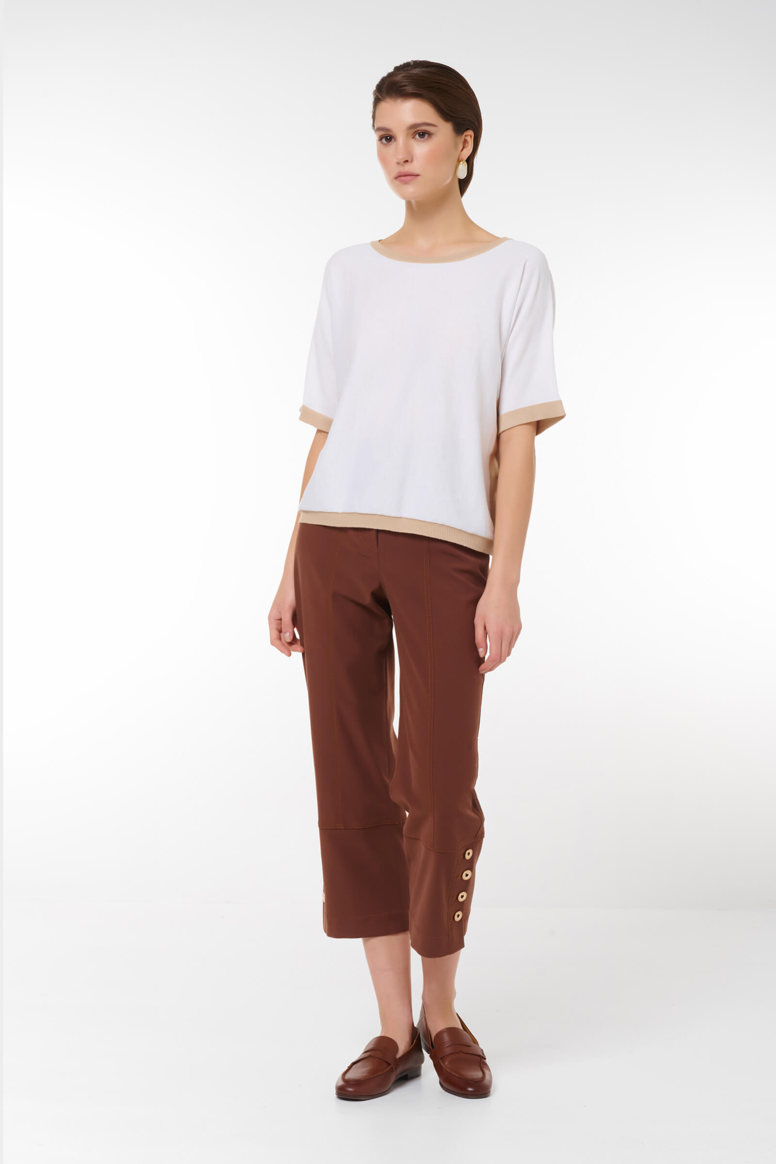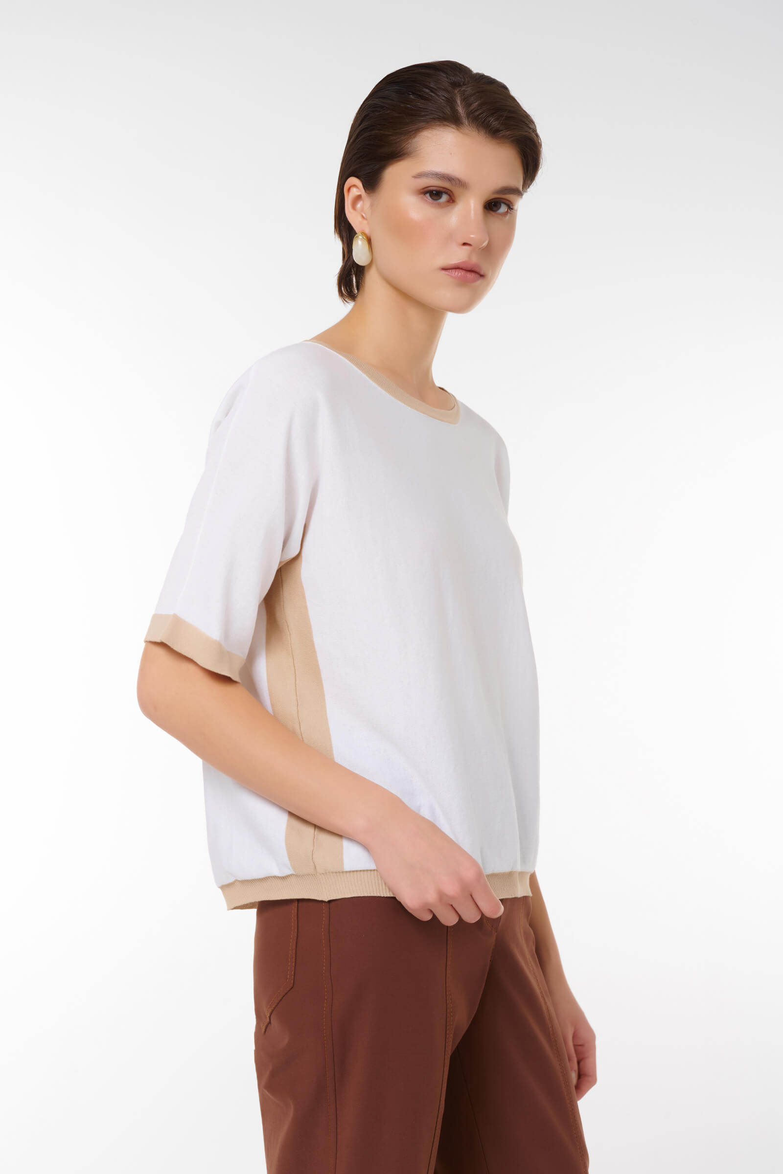 Добавьте в свой гардероб элегантный джемпер с люрексом! Короткие рукава и свободный крой придают ему стильный и расслабленный вид, а контрастная отделка из люрекса добавляет нотку блеска и утонченности. Идеально подходит как для повседневных образов, так и для более нарядных случаев, этот джемпер станет универсальным элементом вашего гардероба. Сочетайте его с брюками или юбками и наслаждайтесь комфортом и стилем!