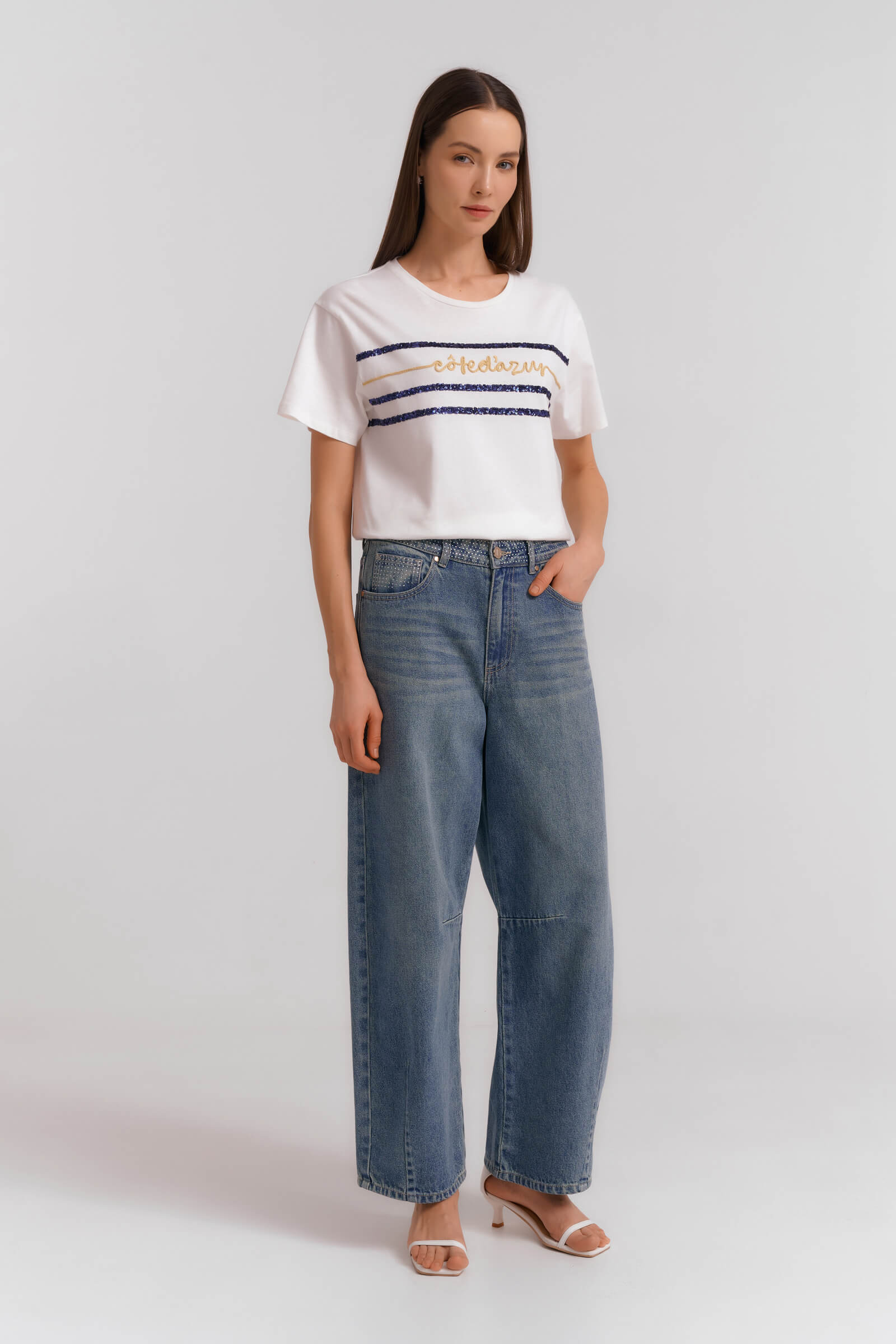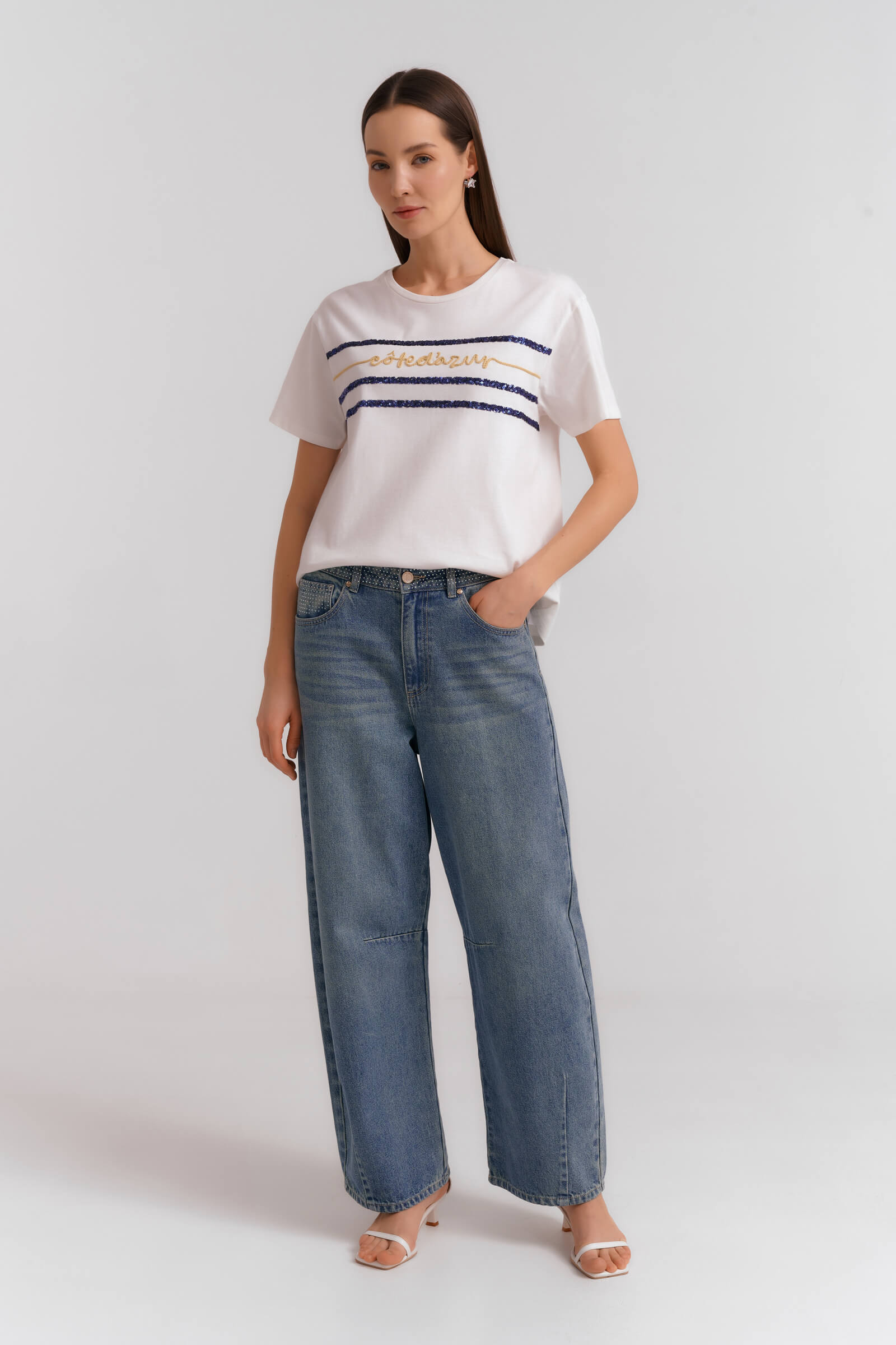 Джинсы-багги с потертостями Diana Gallesi