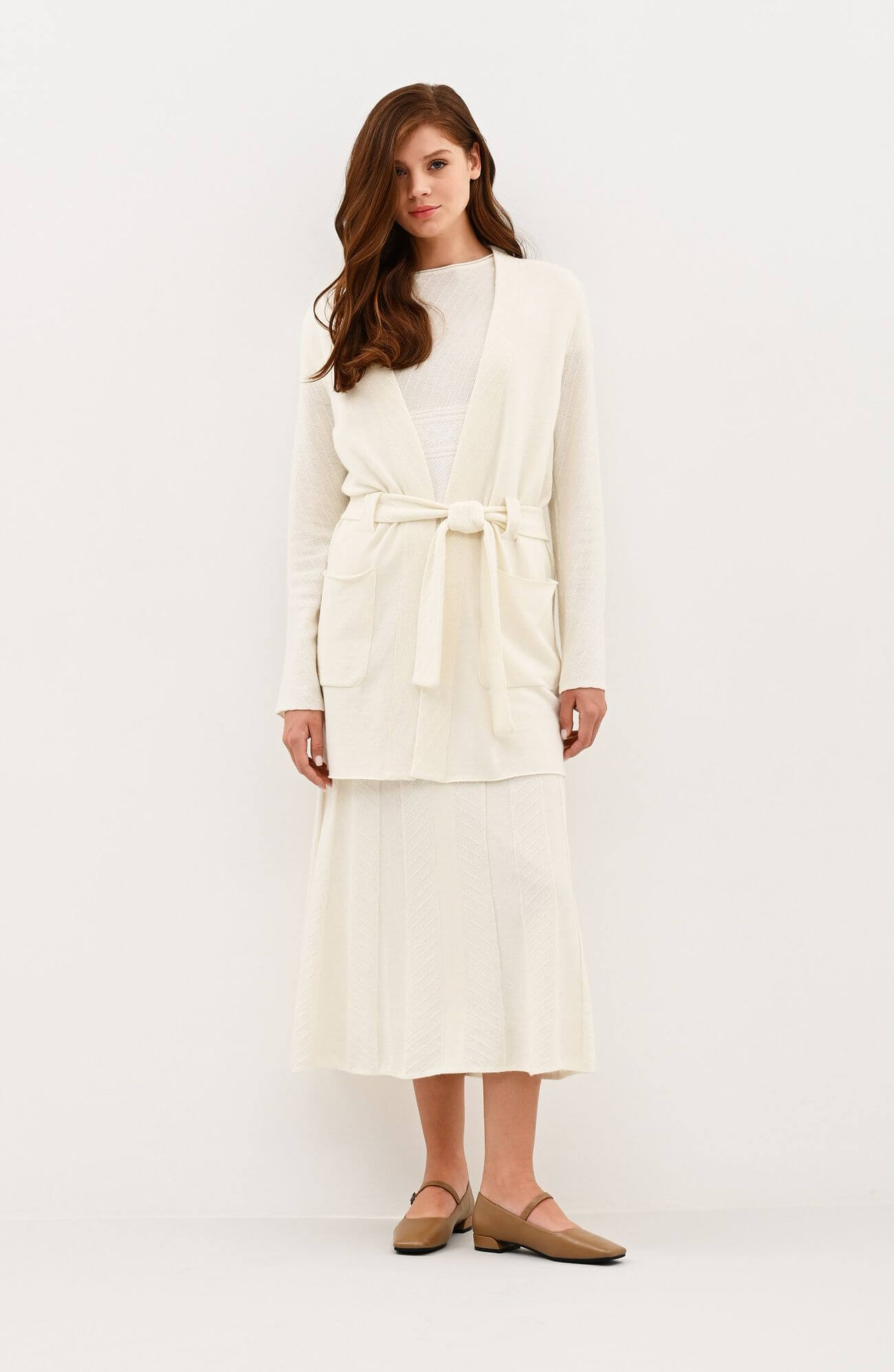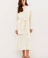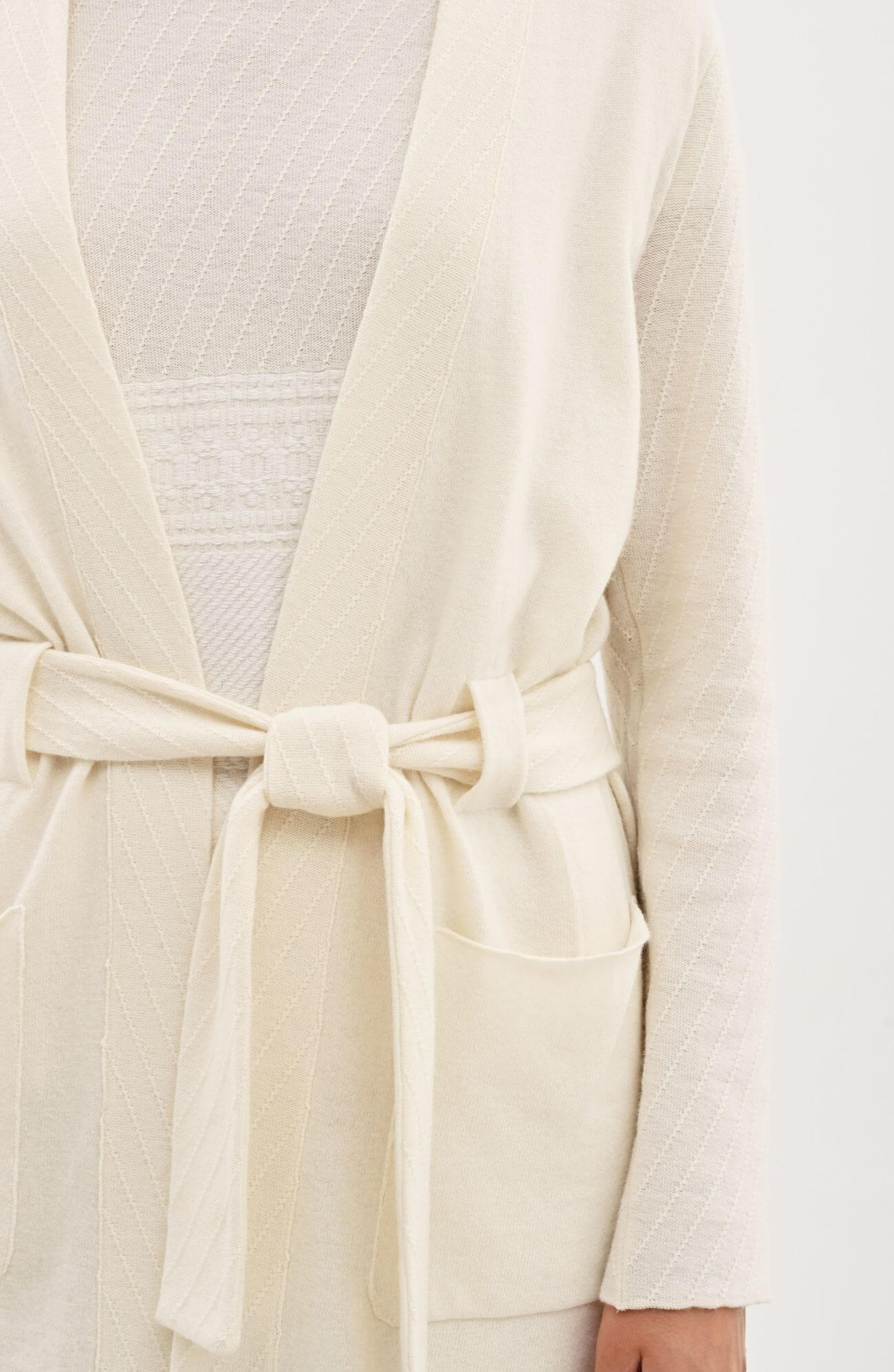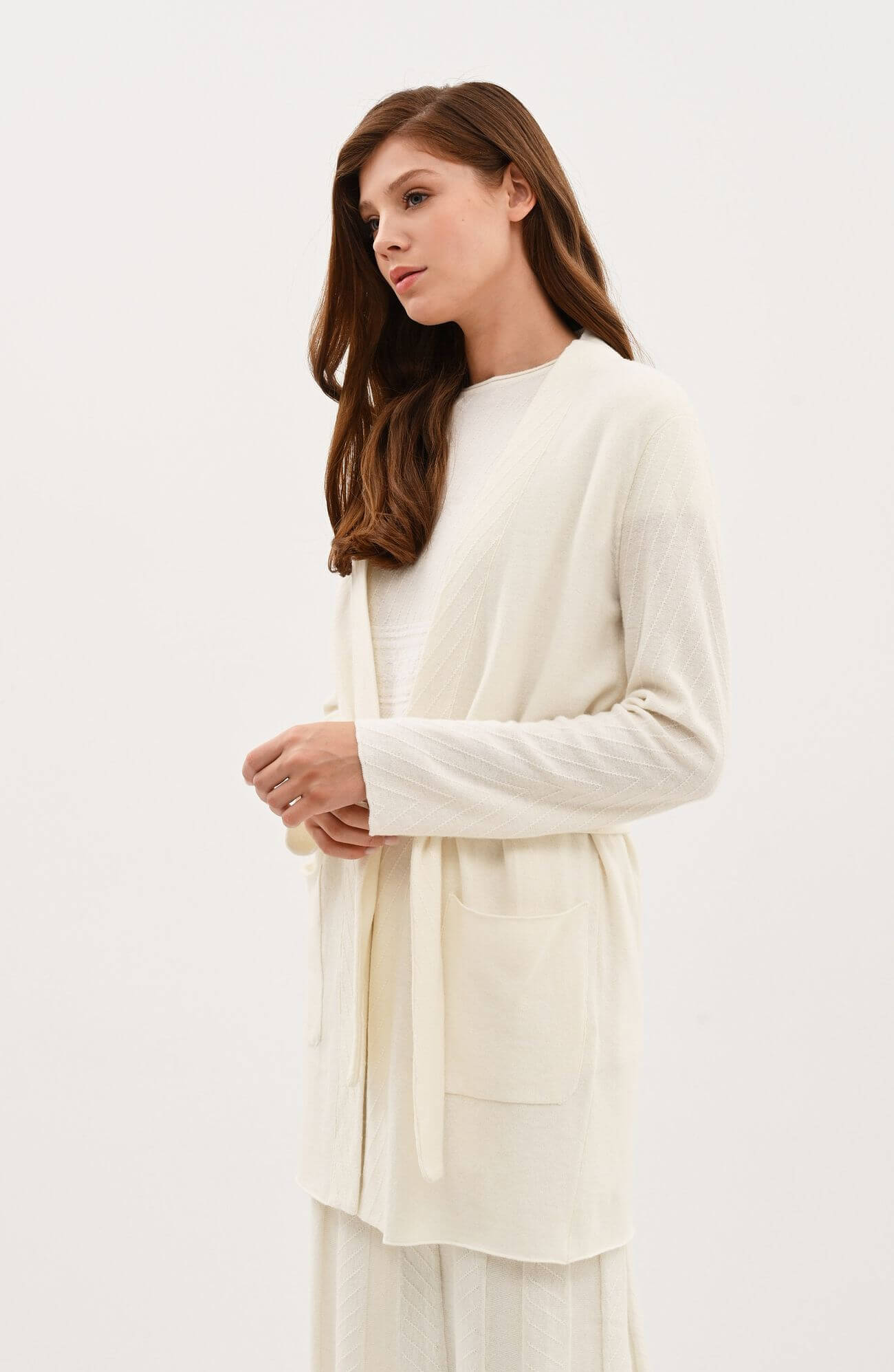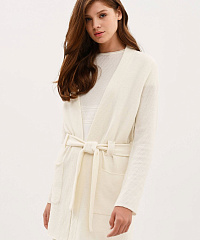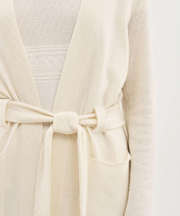 - Рельефная вязка на рукавах, поясе и краях изделия