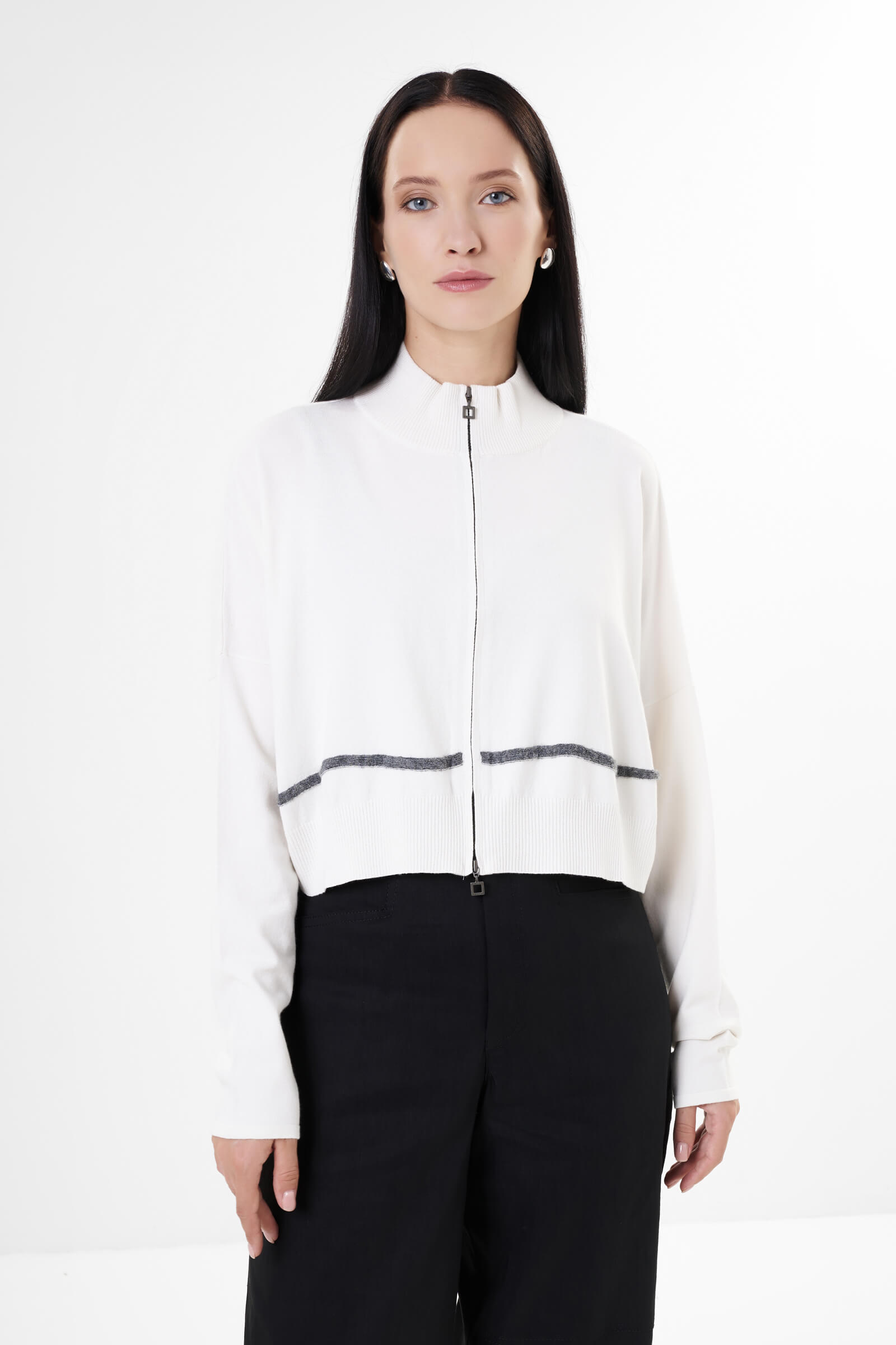- Воротник и нижний край изделия из эластичного трикотажа в рубчик