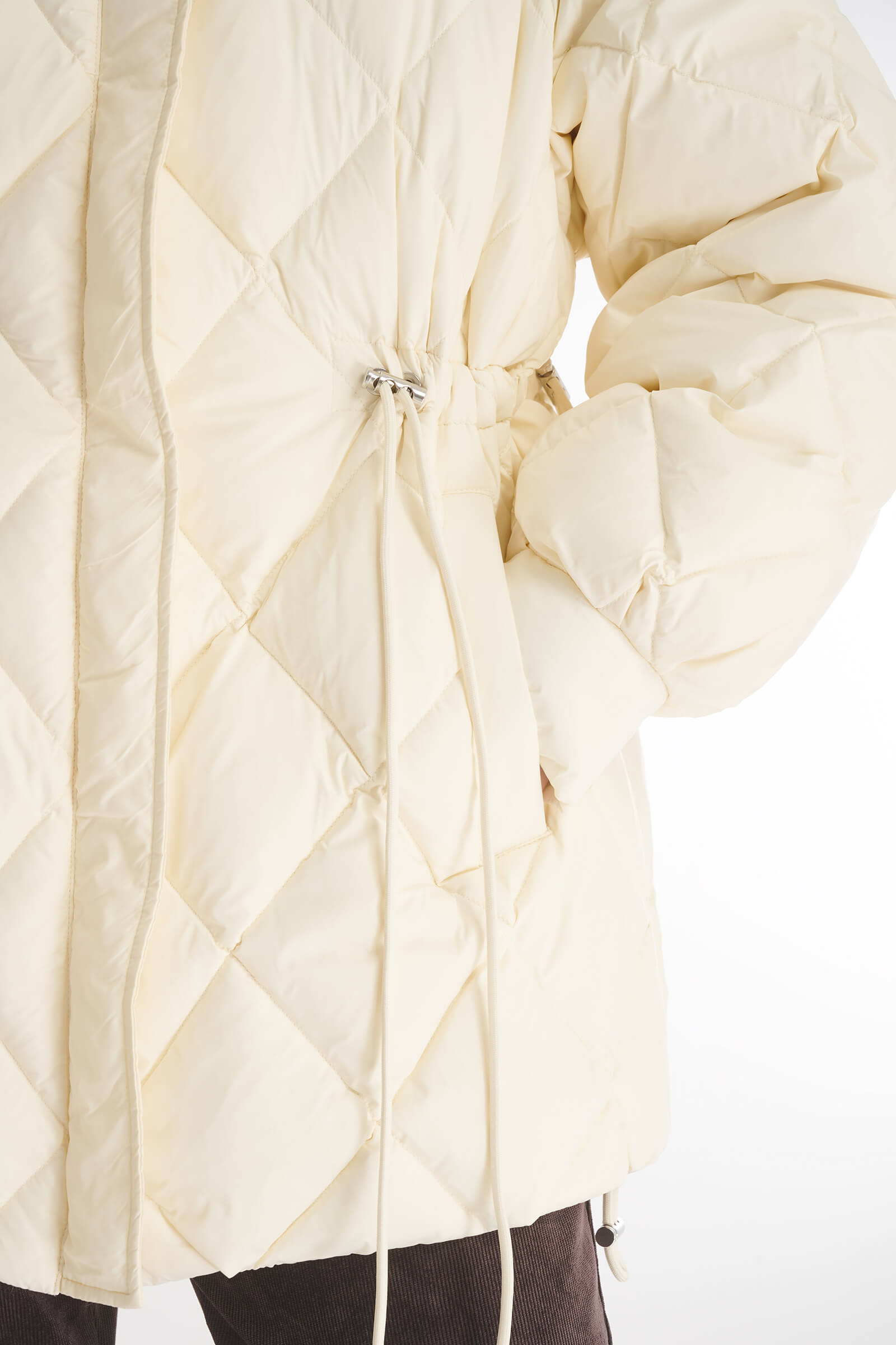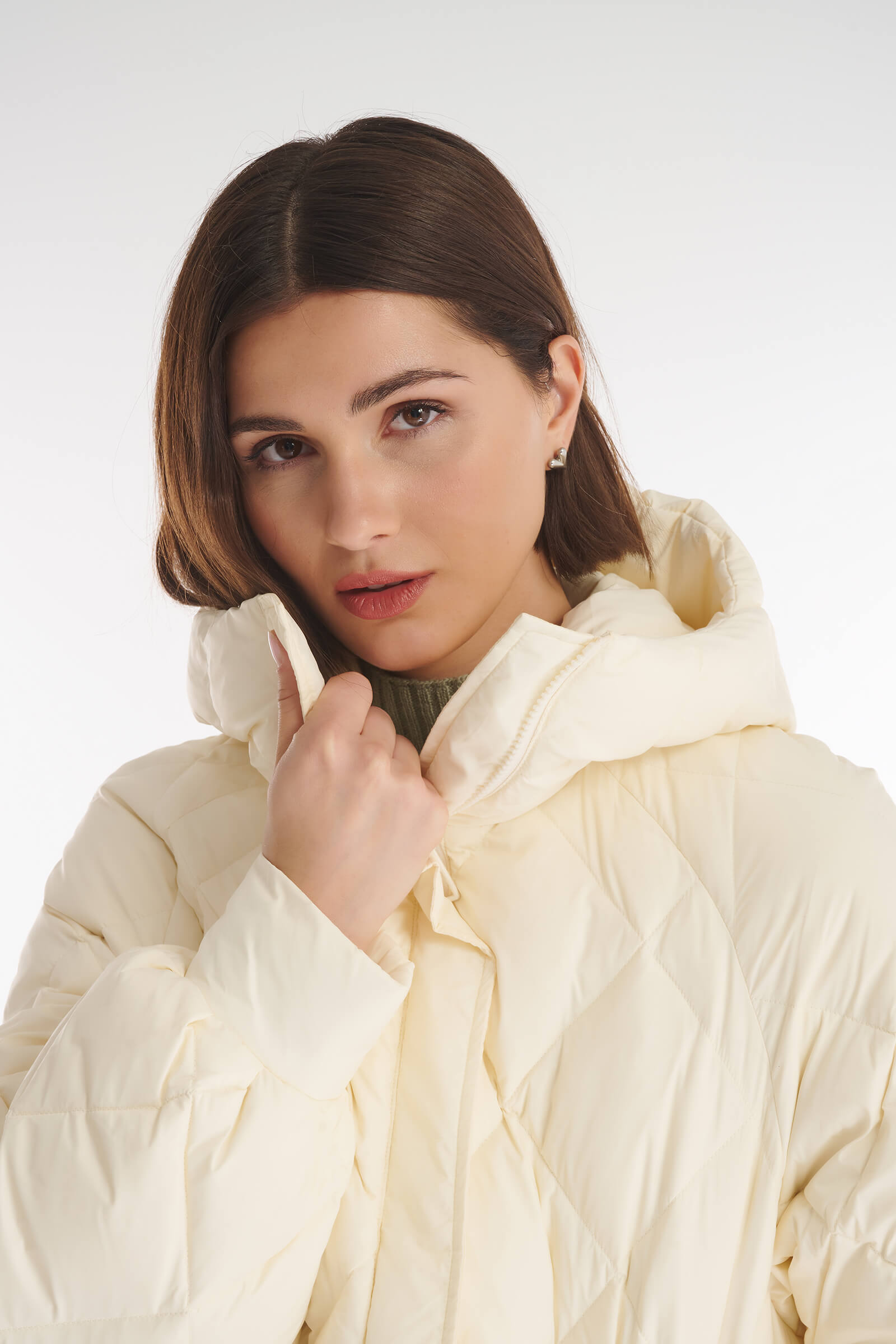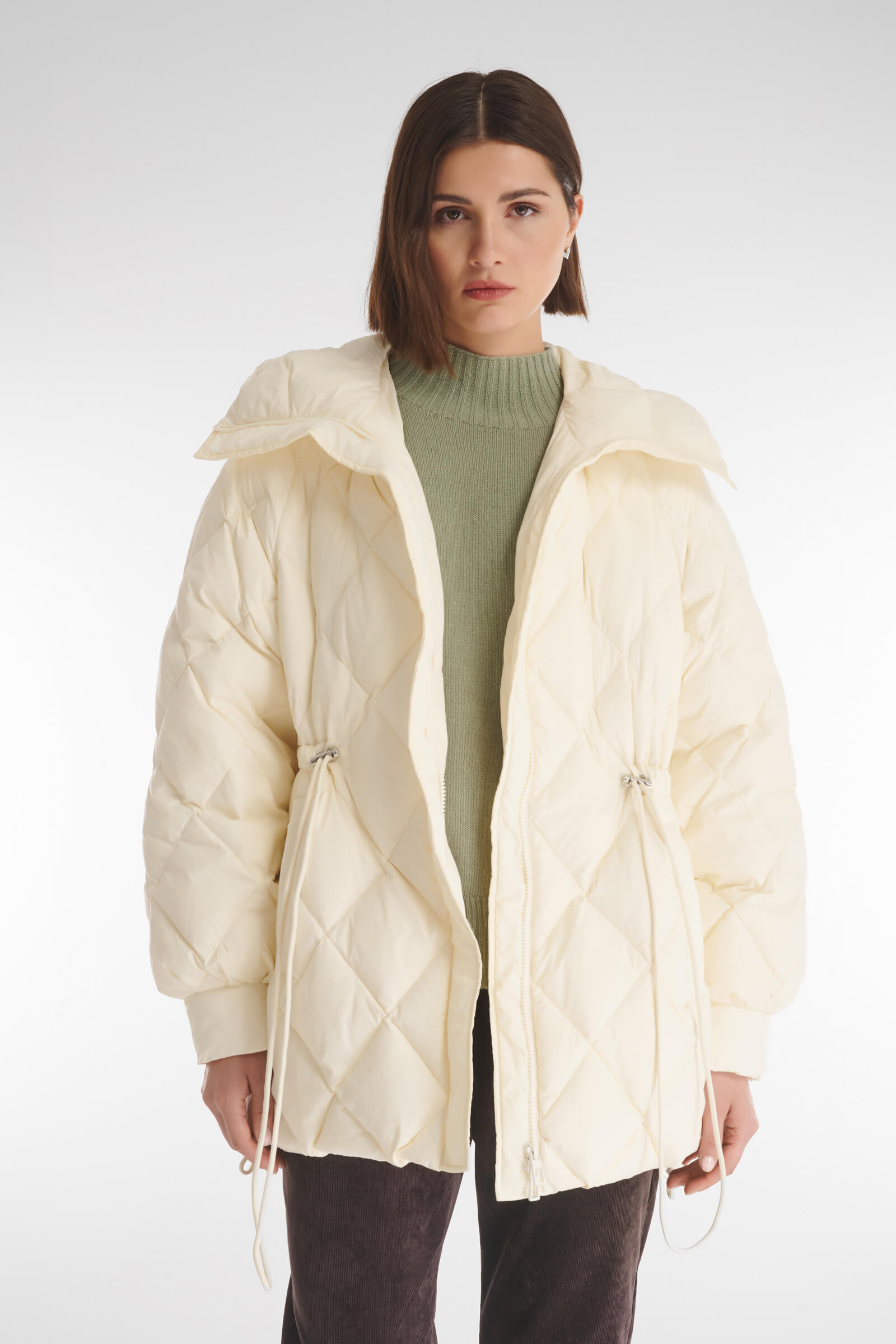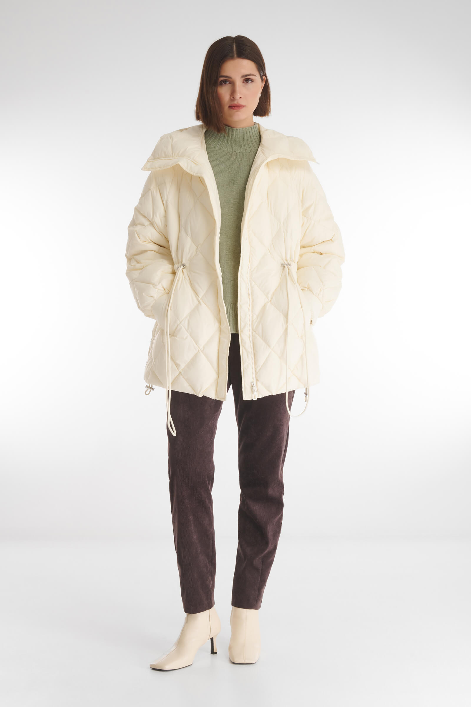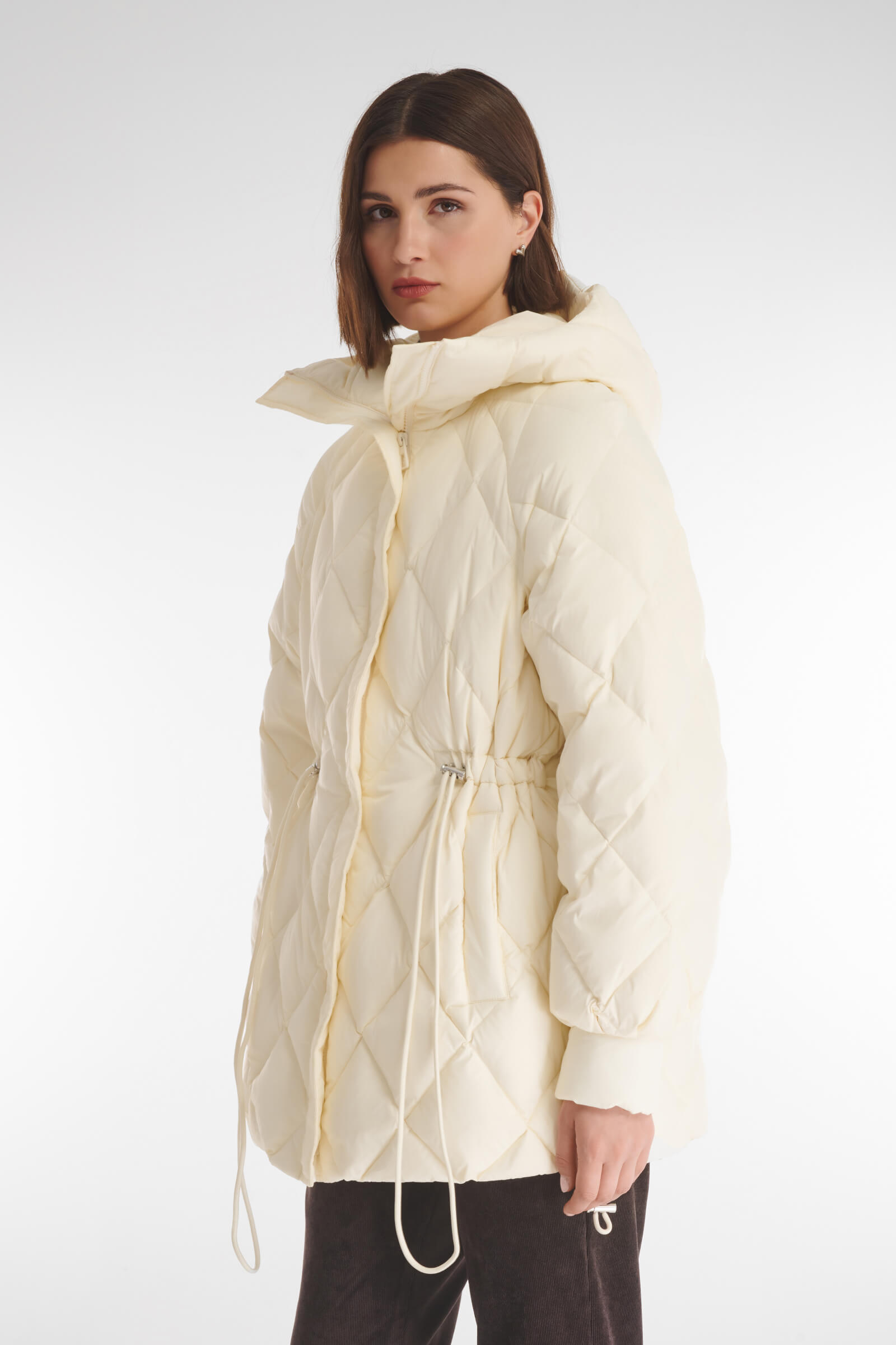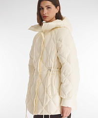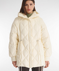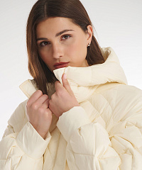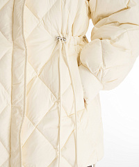 Стеганая куртка сочетает стильный дизайн и функциональность. Модель свободного кроя дополнена кулисками, позволяющими менять силуэт. Капюшон-трансформер можно использовать по прямому назначению или носить, расстегнув молнию и превратив в акцентный отложной воротник. Куртку утеплили натуральной смесью из пуха и пера, отличающейся легкостью, отличными дышащим и согревающим свойствами.