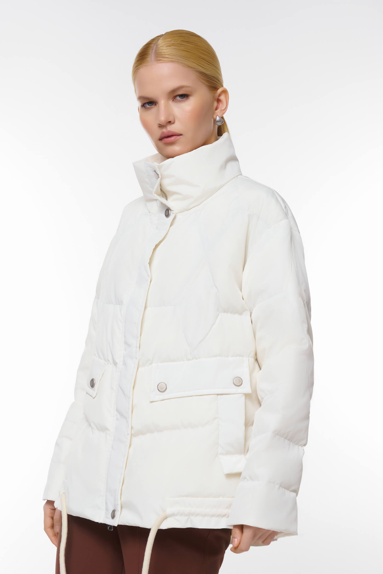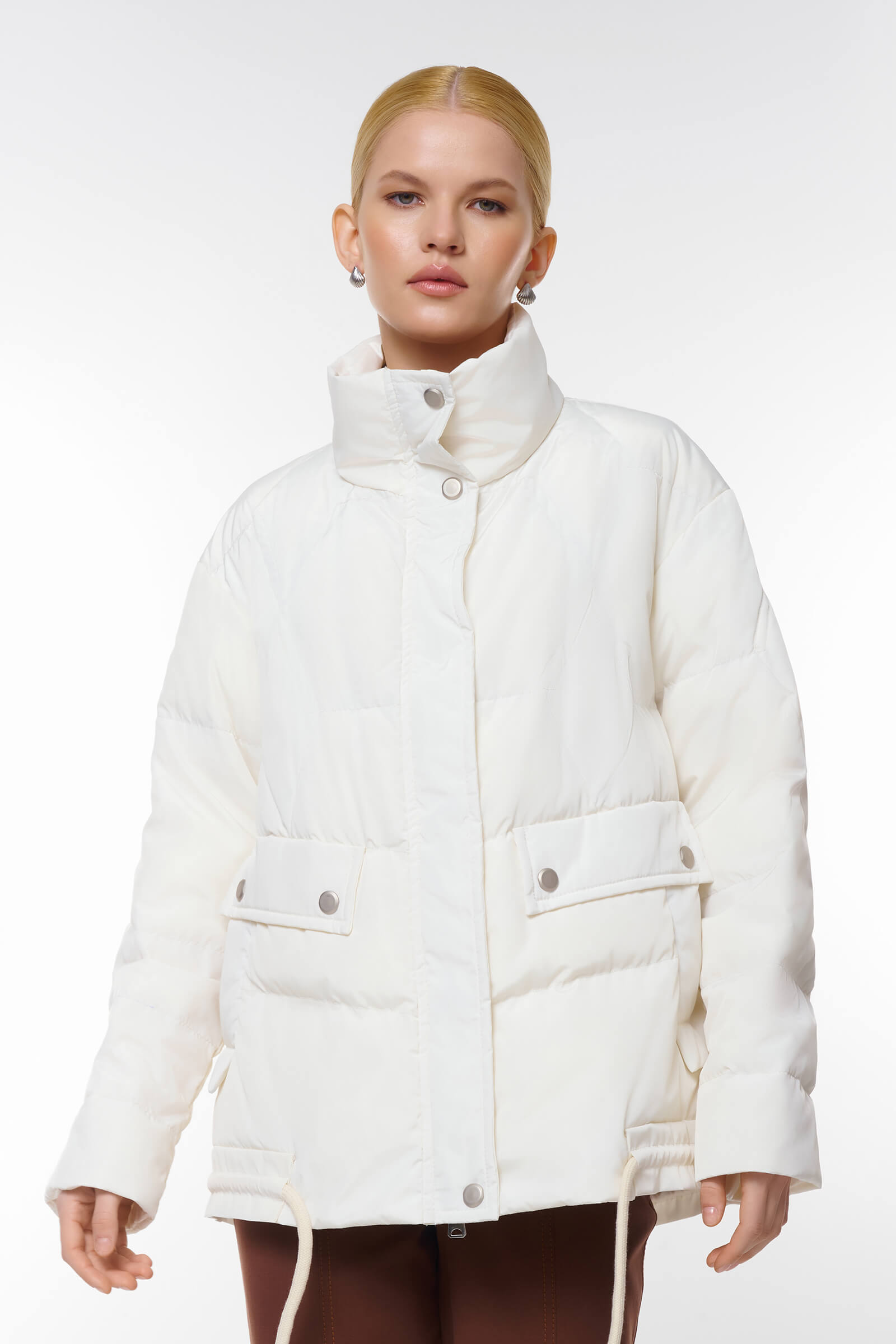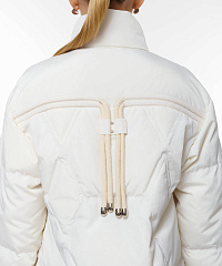 Стеганая куртка сочетает стильный дизайн и функциональность. Модель свободного кроя дополнена кулисками, позволяющими менять силуэт.