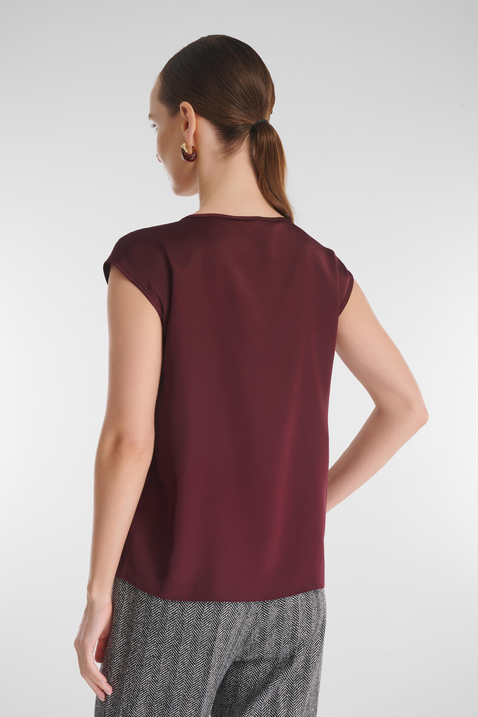 Элегантный топ со струящейся фактурой станет универсальной основой гардероба. Лаконичный дизайн уместен и в деловых, и в вечерних образах. Свободный крой позволяет носить изделие навыпуск или заправленным — в любом варианте образ выглядит стильно и современно.