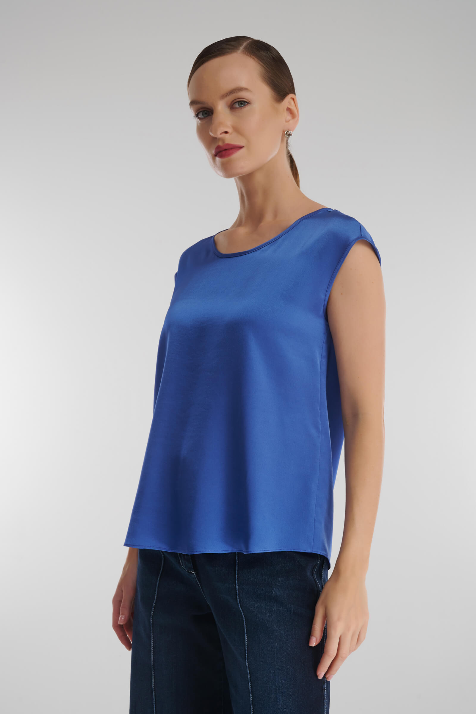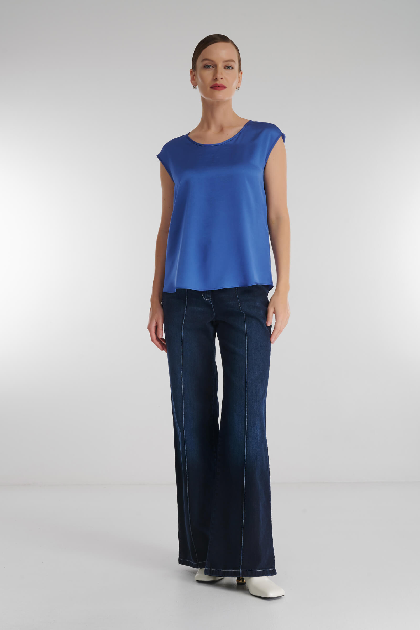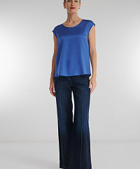 Элегантный топ со струящейся фактурой станет универсальной основой гардероба. Лаконичный дизайн уместен и в деловых, и в вечерних образах. Свободный крой позволяет носить изделие навыпуск или заправленным — в любом варианте образ выглядит стильно и современно.
