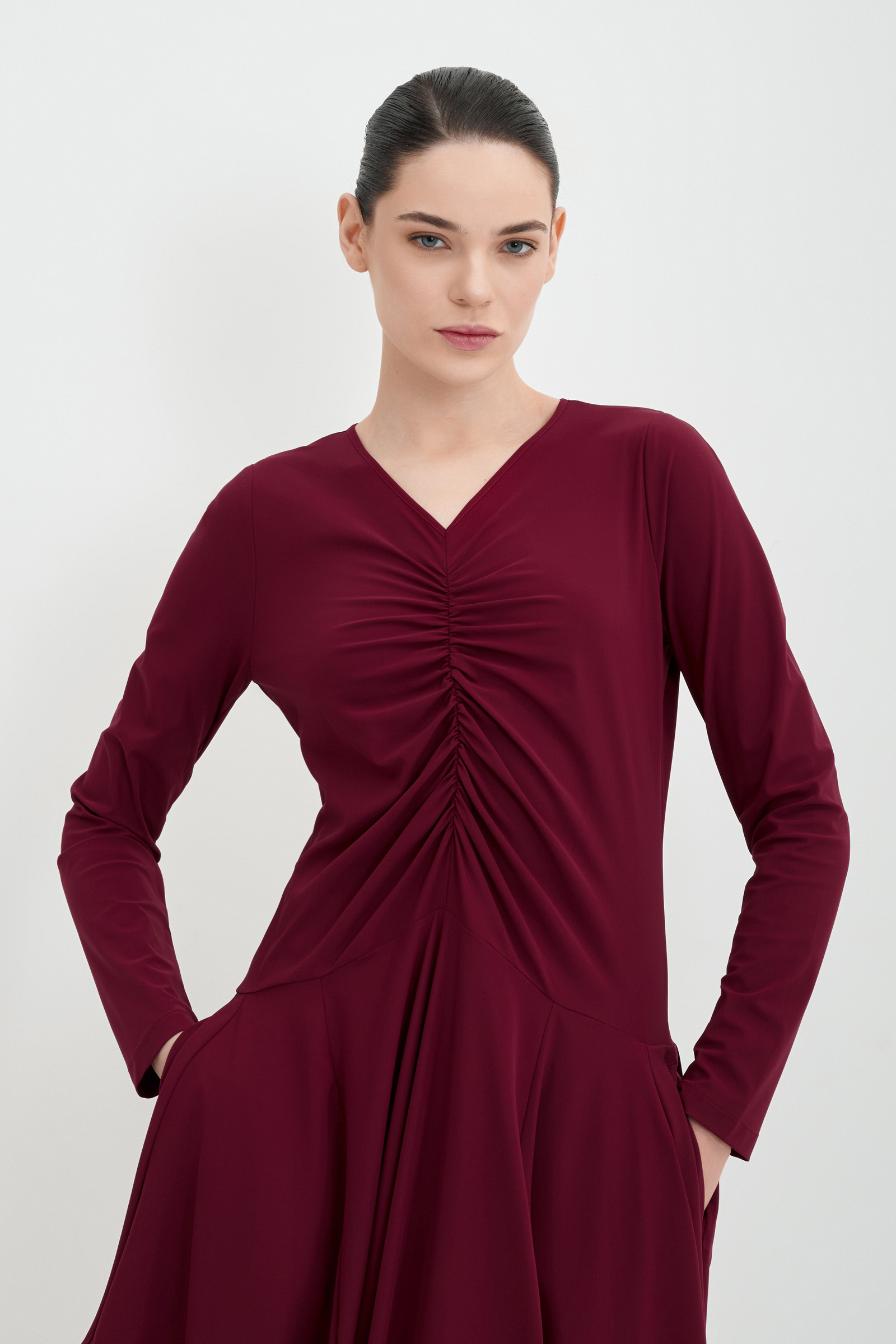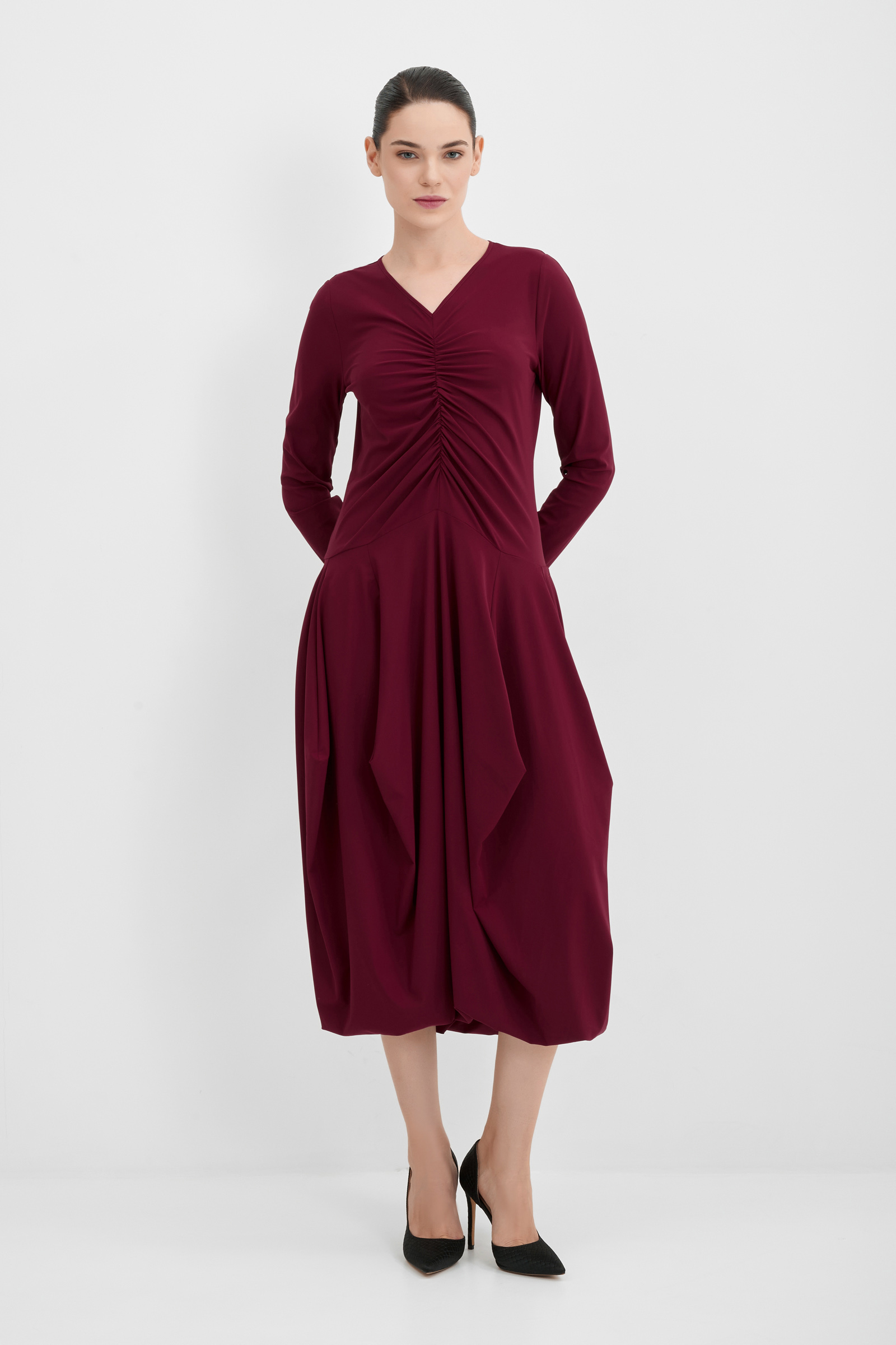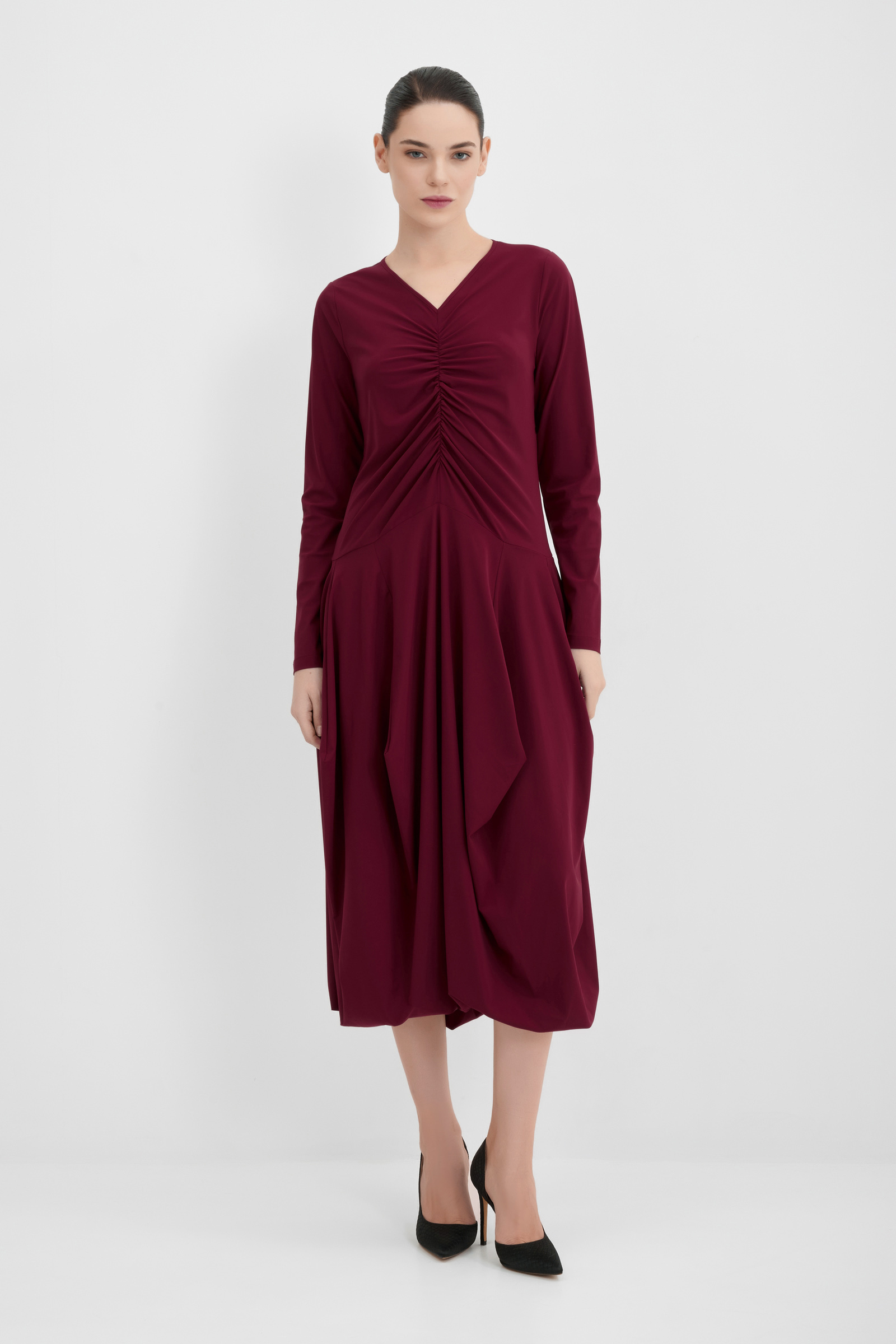Платье из тонкого трикотажа с драпировкой High
