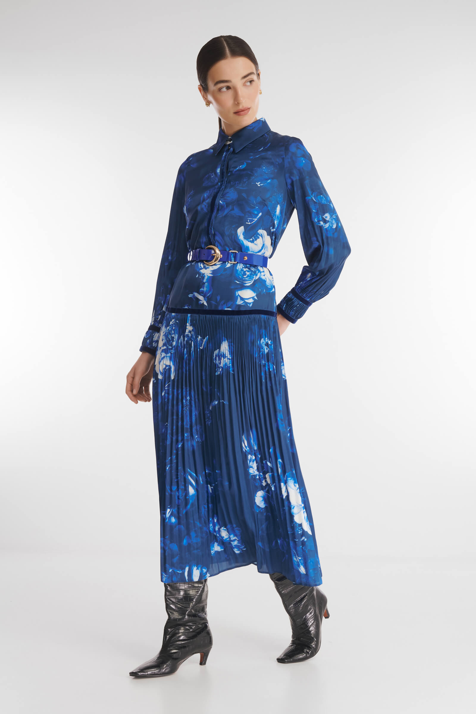 Плиссированное платье-рубашка с принтом Caterina Leman