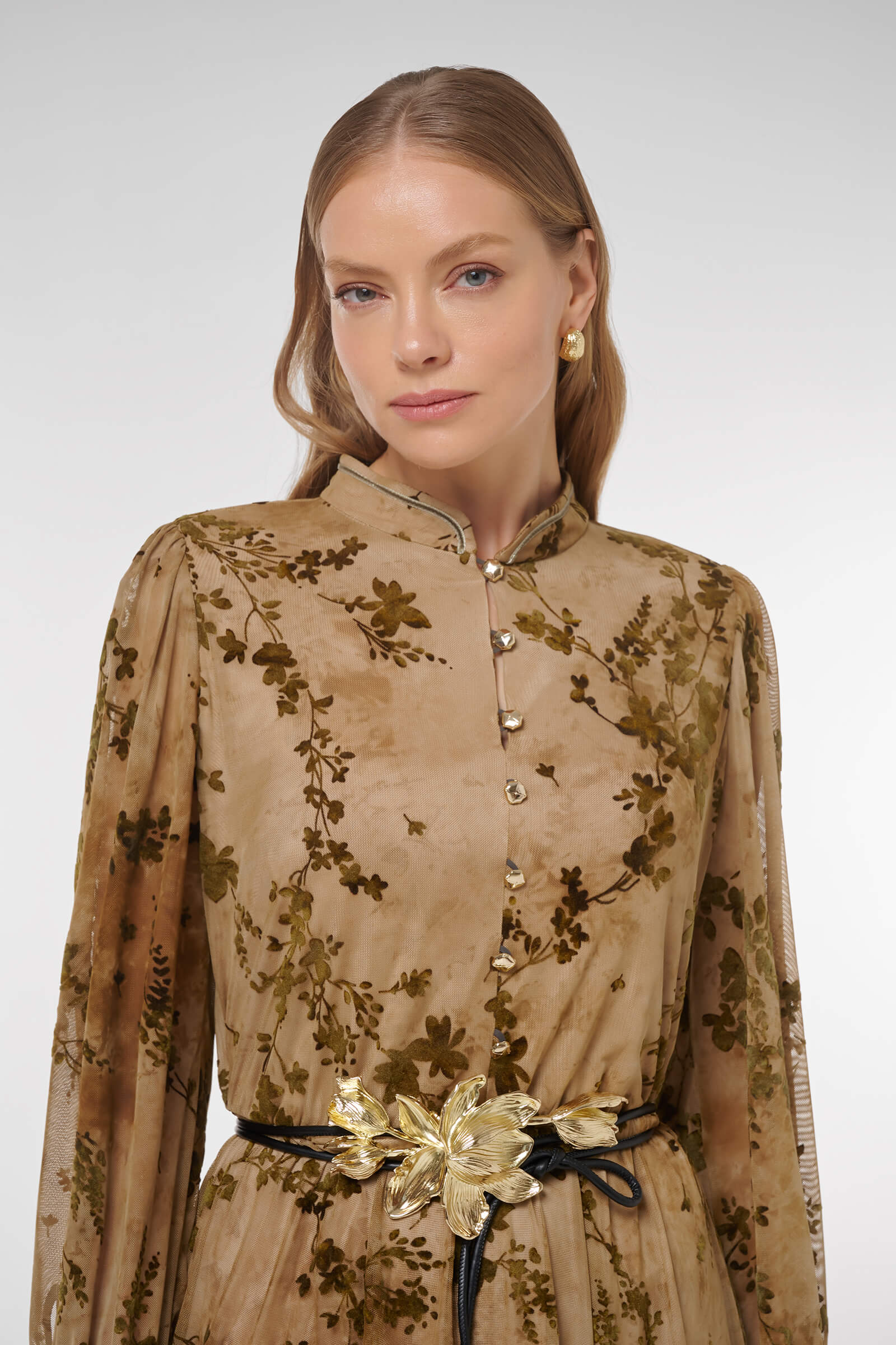 • Длинные прозрачные рукава с манжетами на пуговицах