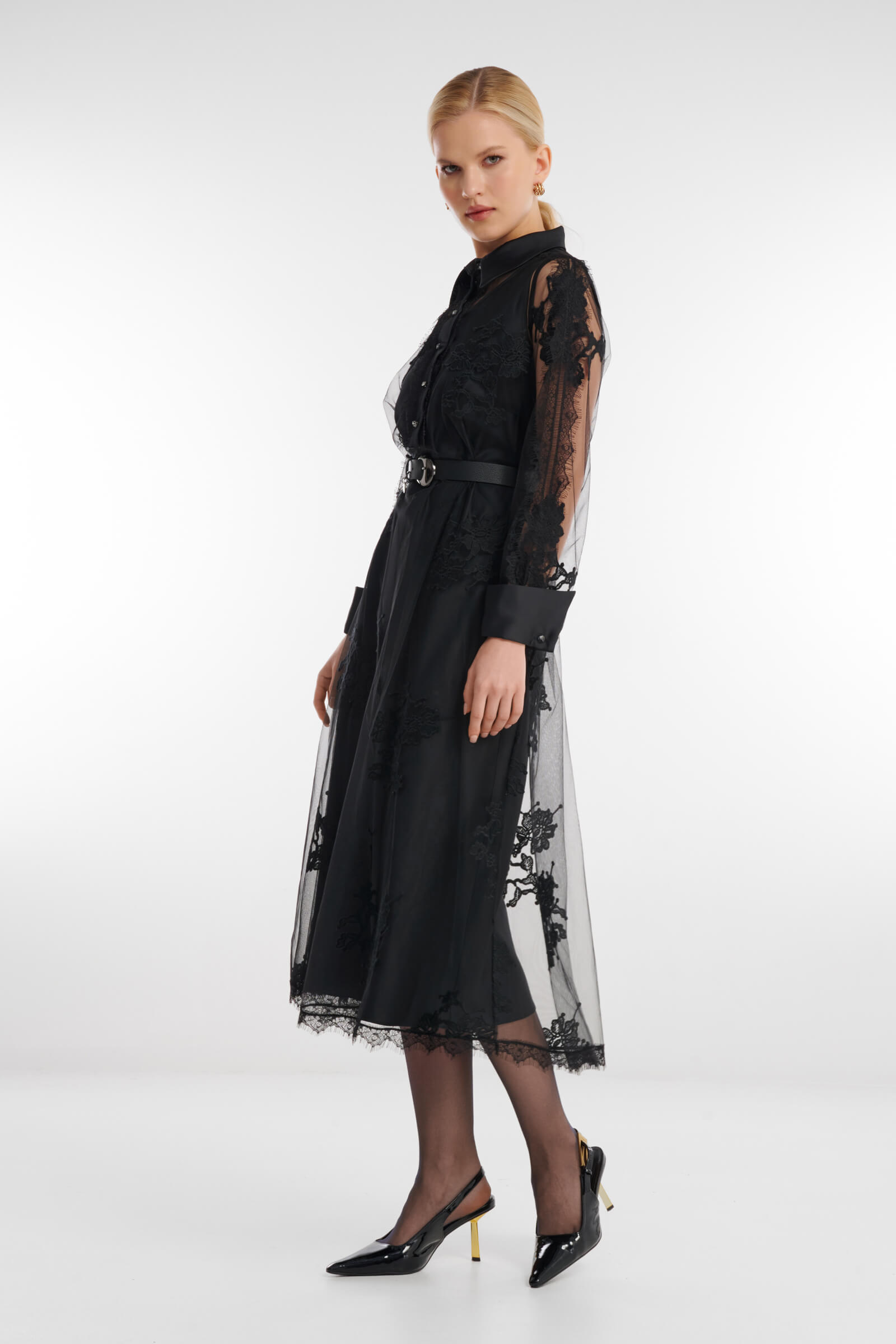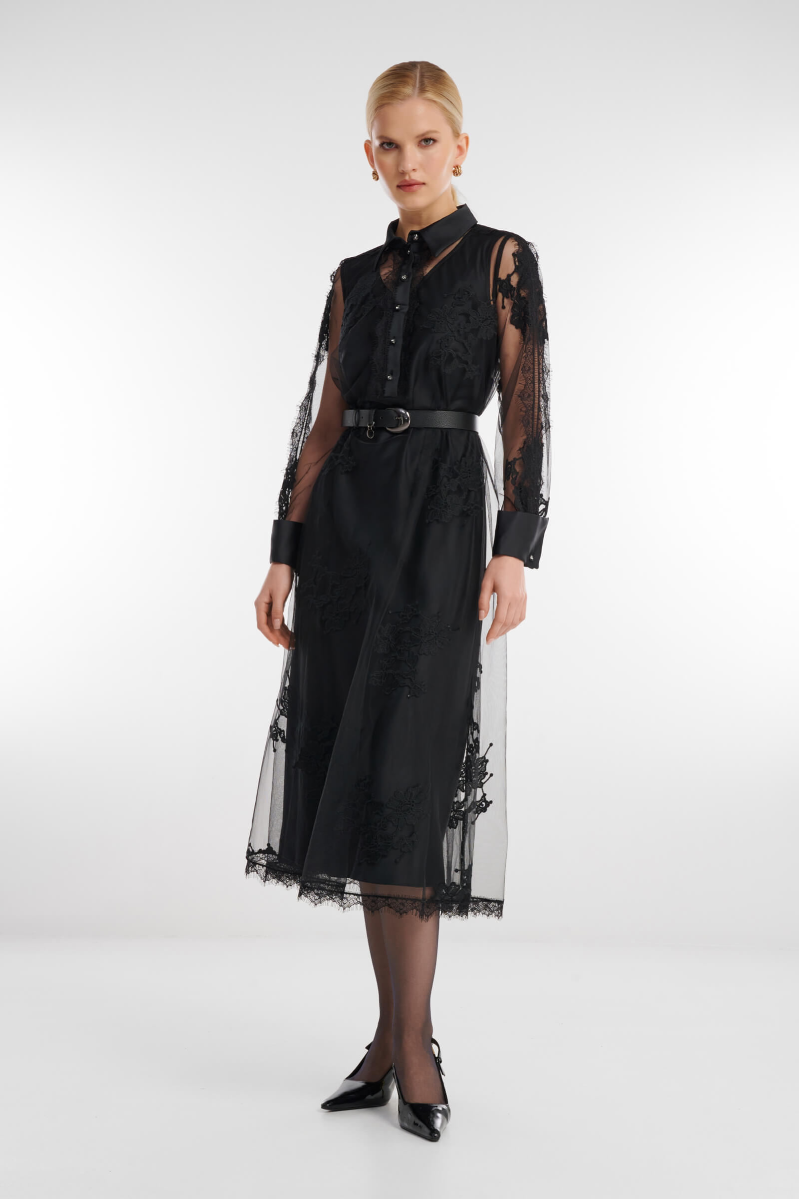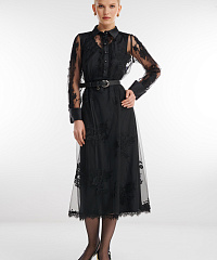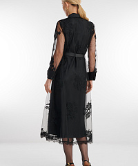 Изящное двухслойное платье сочетает атласное основание и невесомый верхний слой из тюля с цветочным принтом. Гладкий атлас подчёркивает силуэт, а полупрозрачный тюль добавляет образу воздушности и утончённой романтичности. Эффектная модель для особых случаев, когда хочется лёгкого движения, мягкого сияния и деликатного акцента.