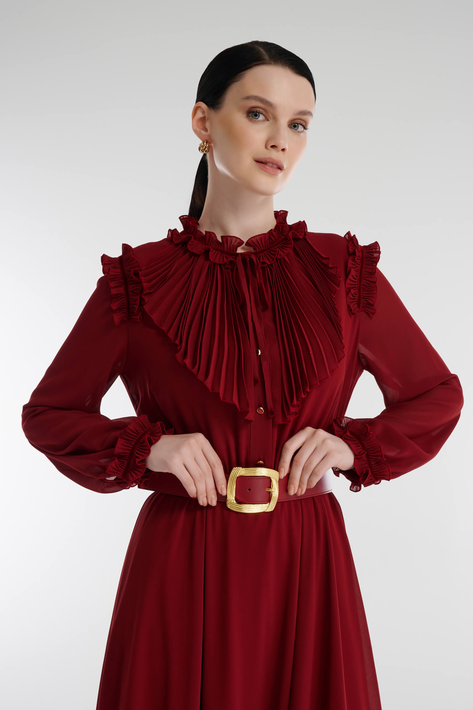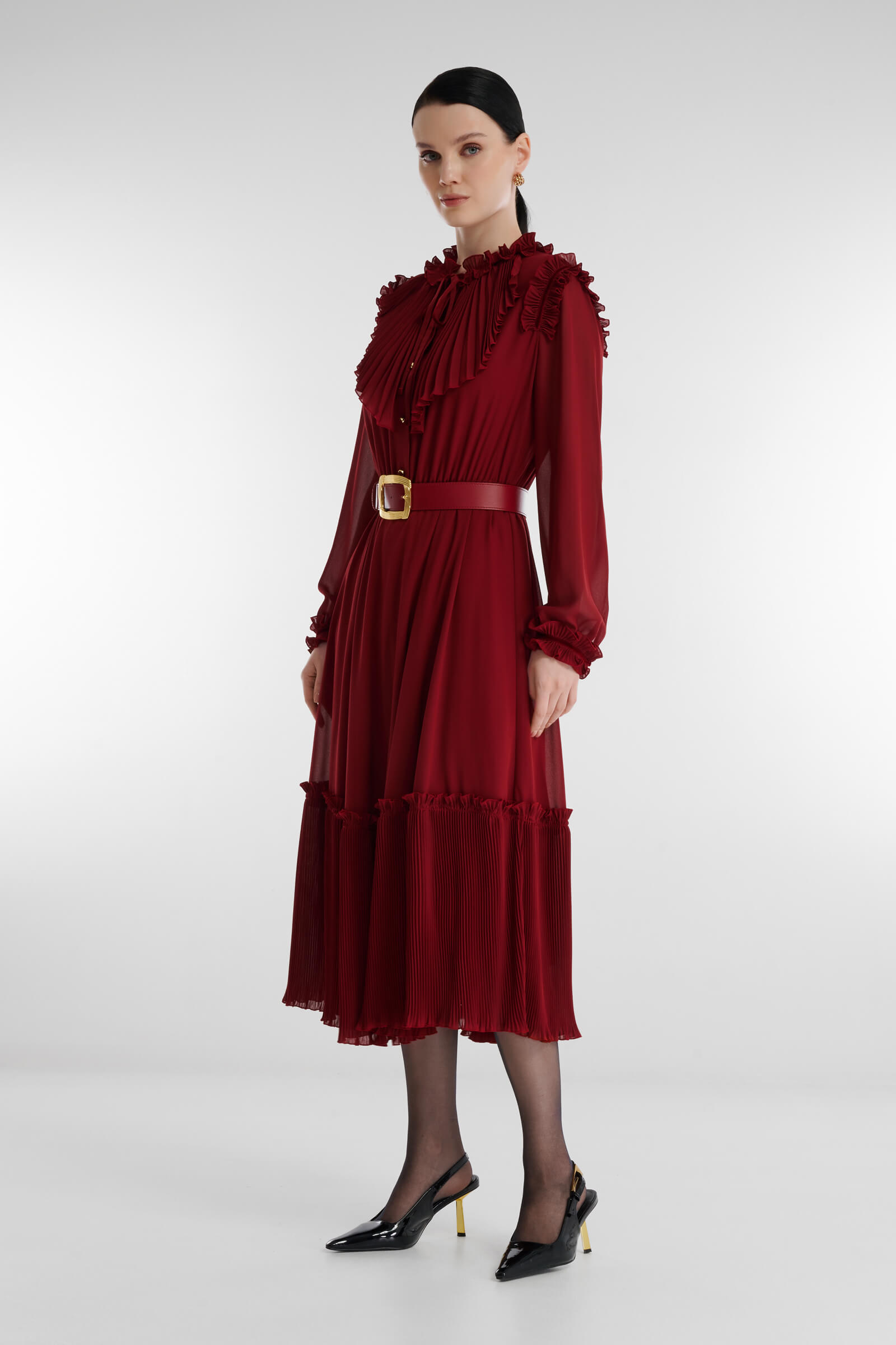 Платье-рубашка с плиссированным жабо Caterina Leman