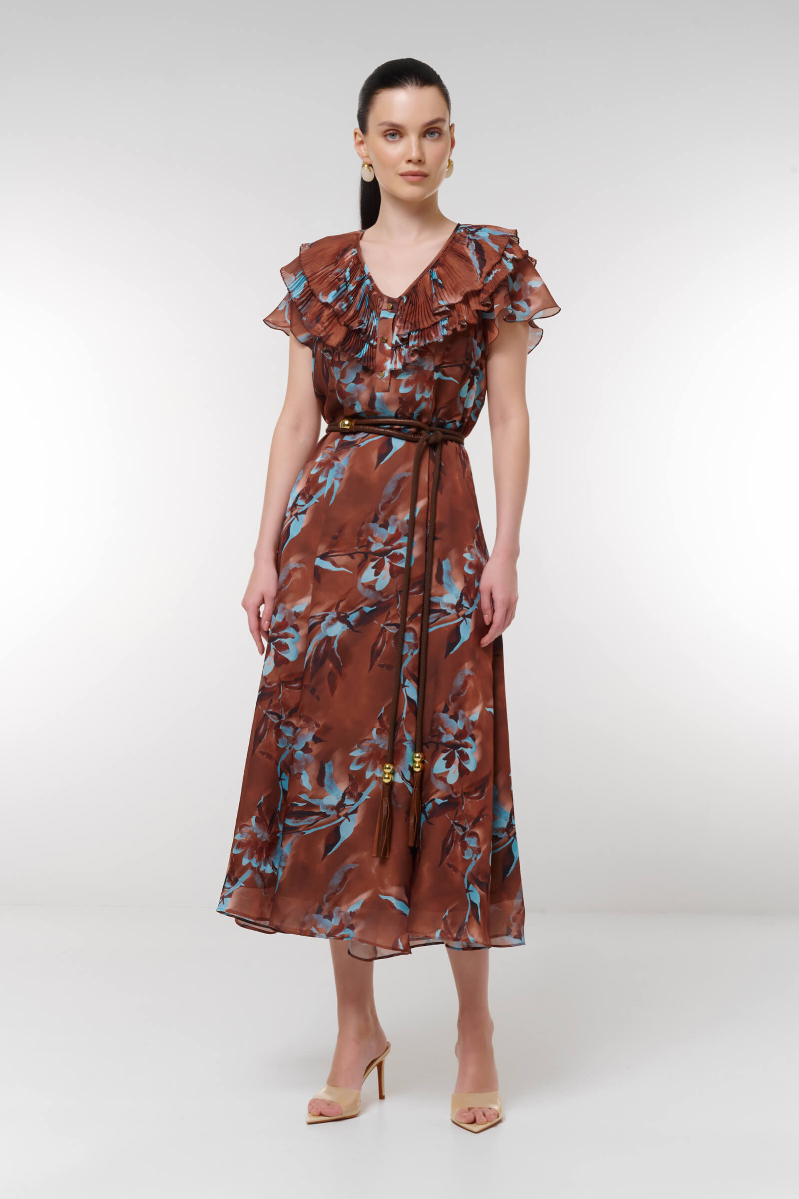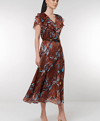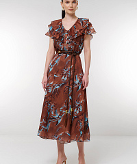 Погрузитесь в мир элегантности с нашим потрясающим платьем с цветочным принтом. Эта модель сочетает в себе легкость и стиль, делая ее идеальным выбором для летних праздников или прогулок по городу.