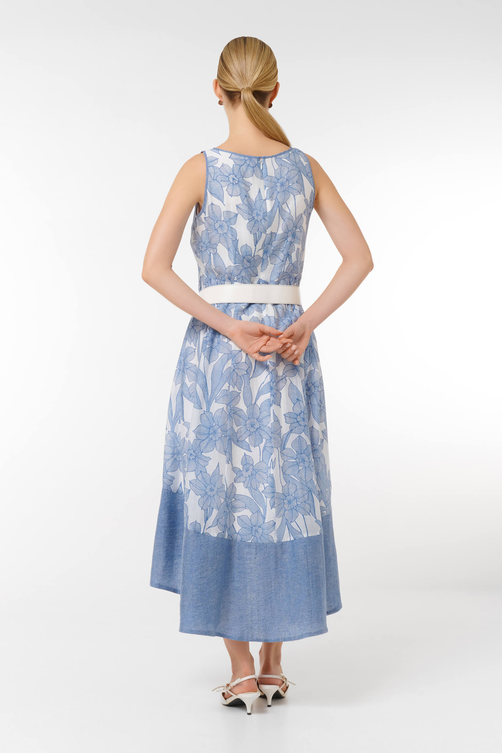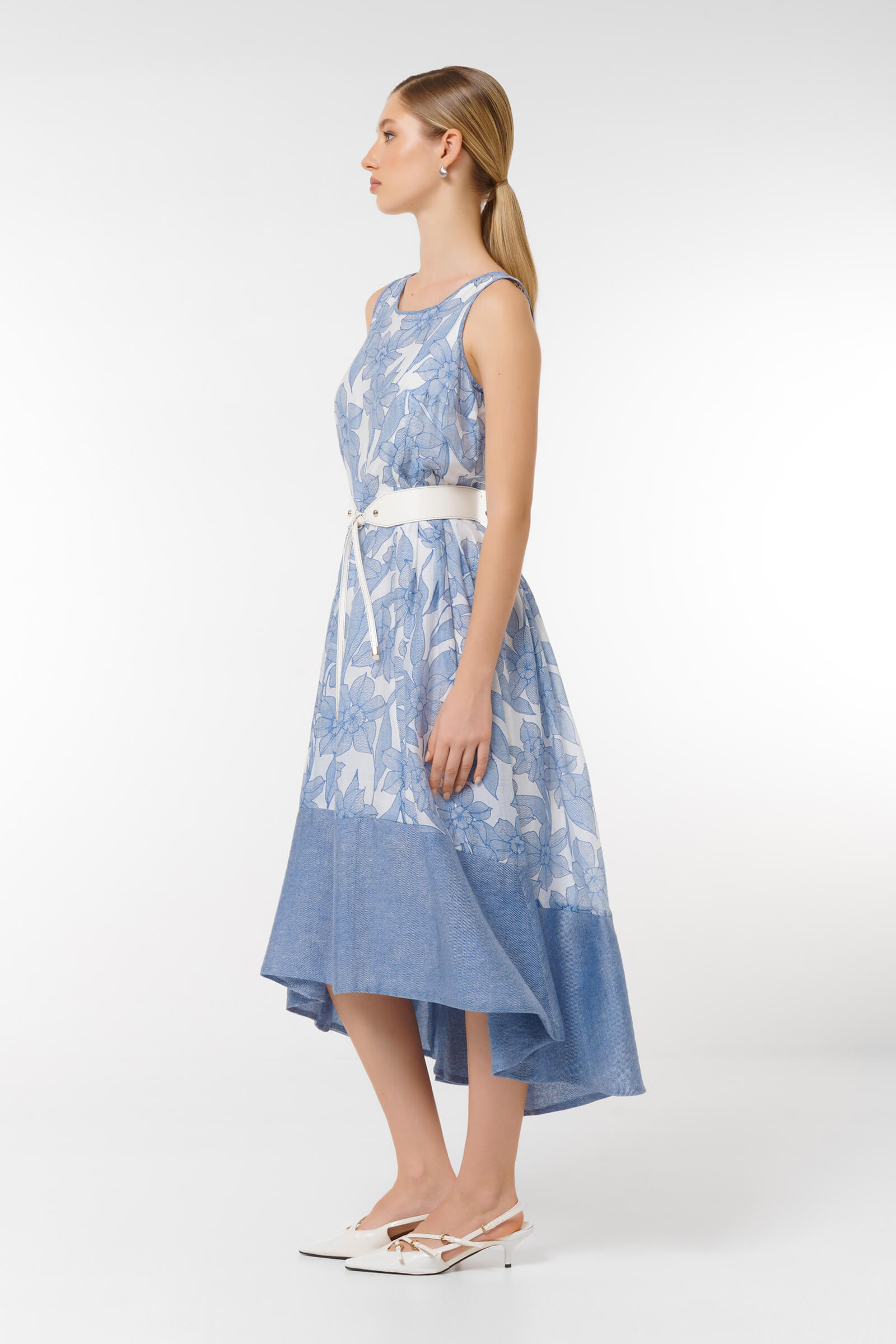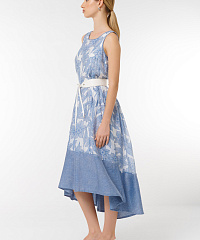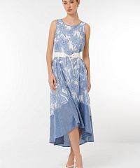 Платье с цветочным принтом придаст вам женственности и элегантности. Стильный асимметричный подол и удобный пояс подчеркивают силуэт, обеспечивая комфорт в любой ситуации.