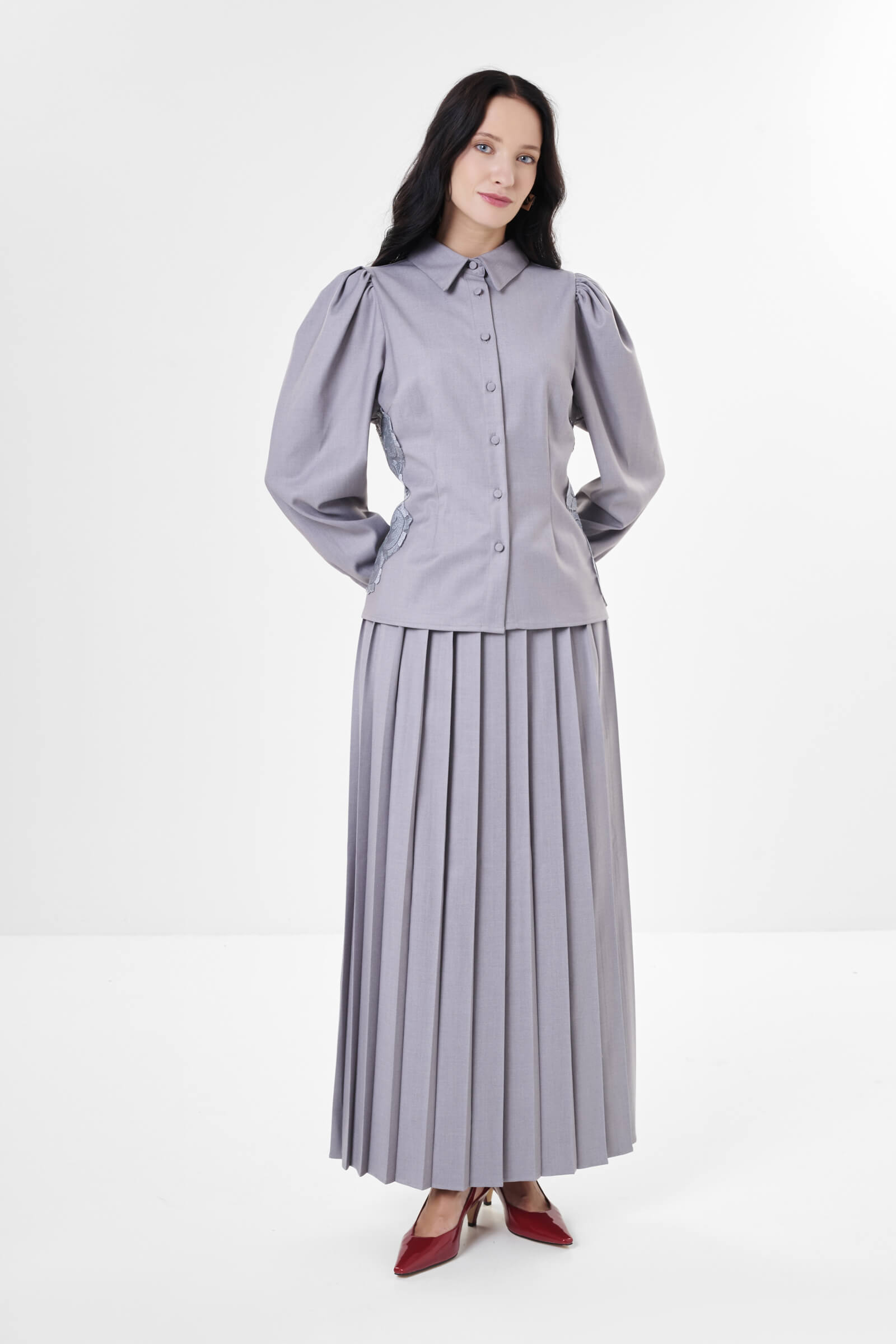 - Длинные рукава-фонарики с манжетами на пуговицах
