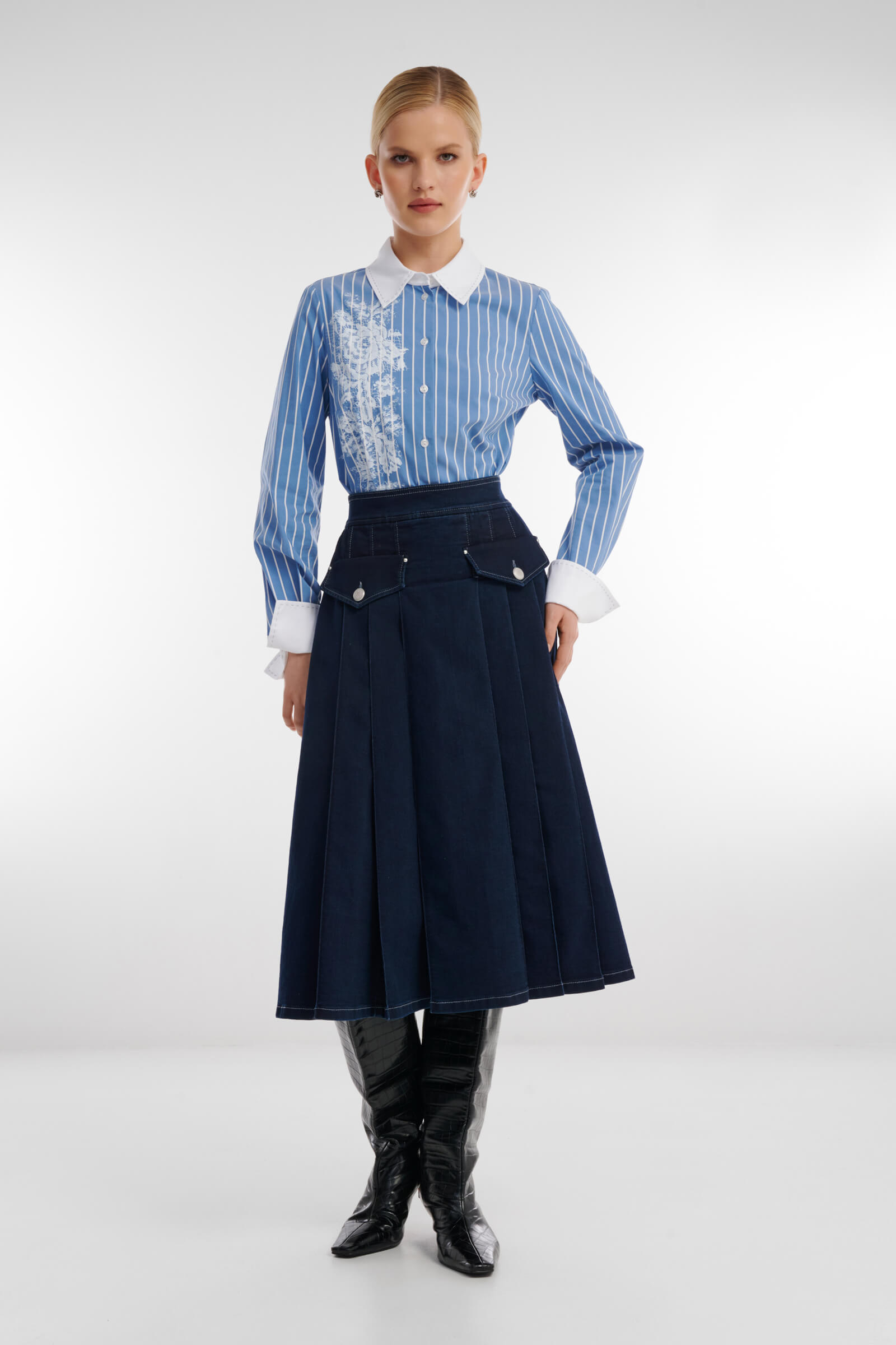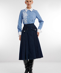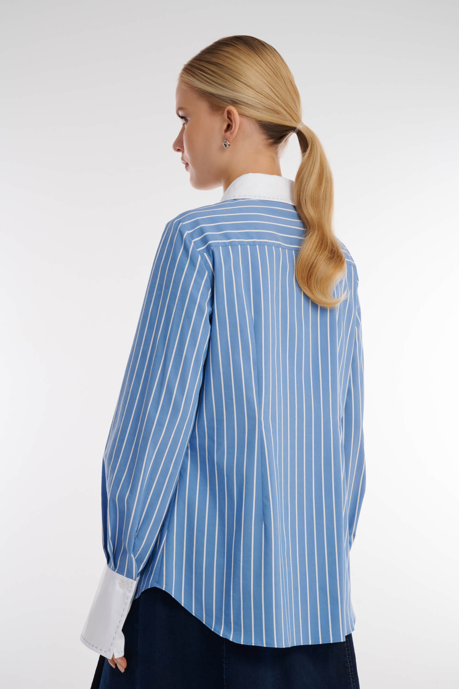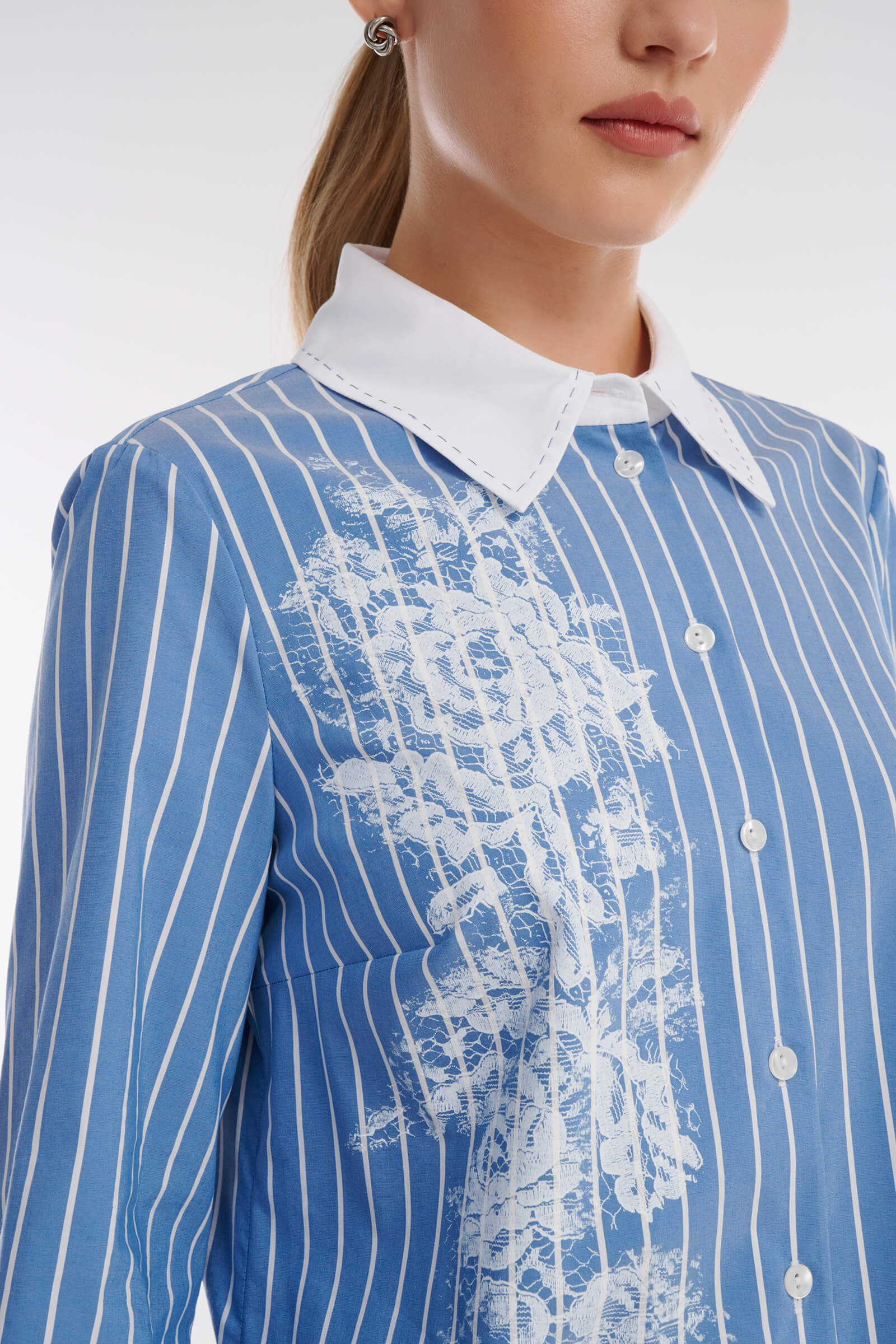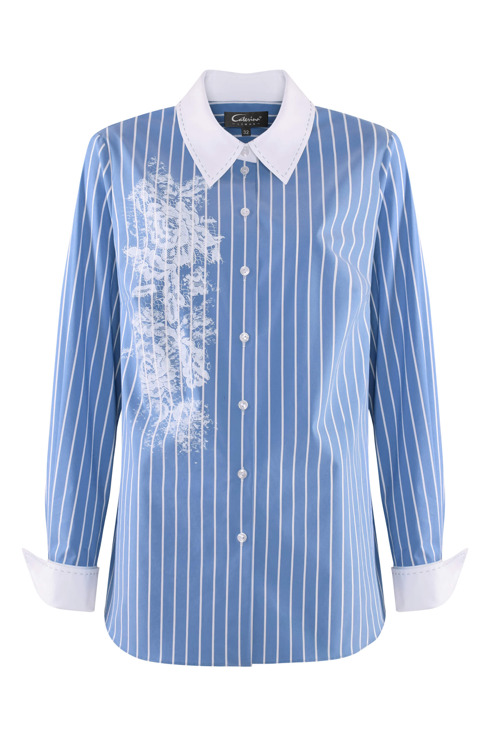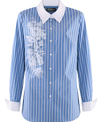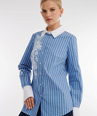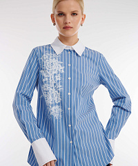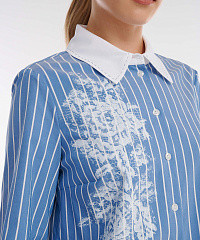 Рубашка свободного кроя — для стильных и комфортных образов на каждый день. Модель украшена цветочным рисунком. Смесовый материал на основе хлопка отлично пропускает воздух и крайне прост в уходе.