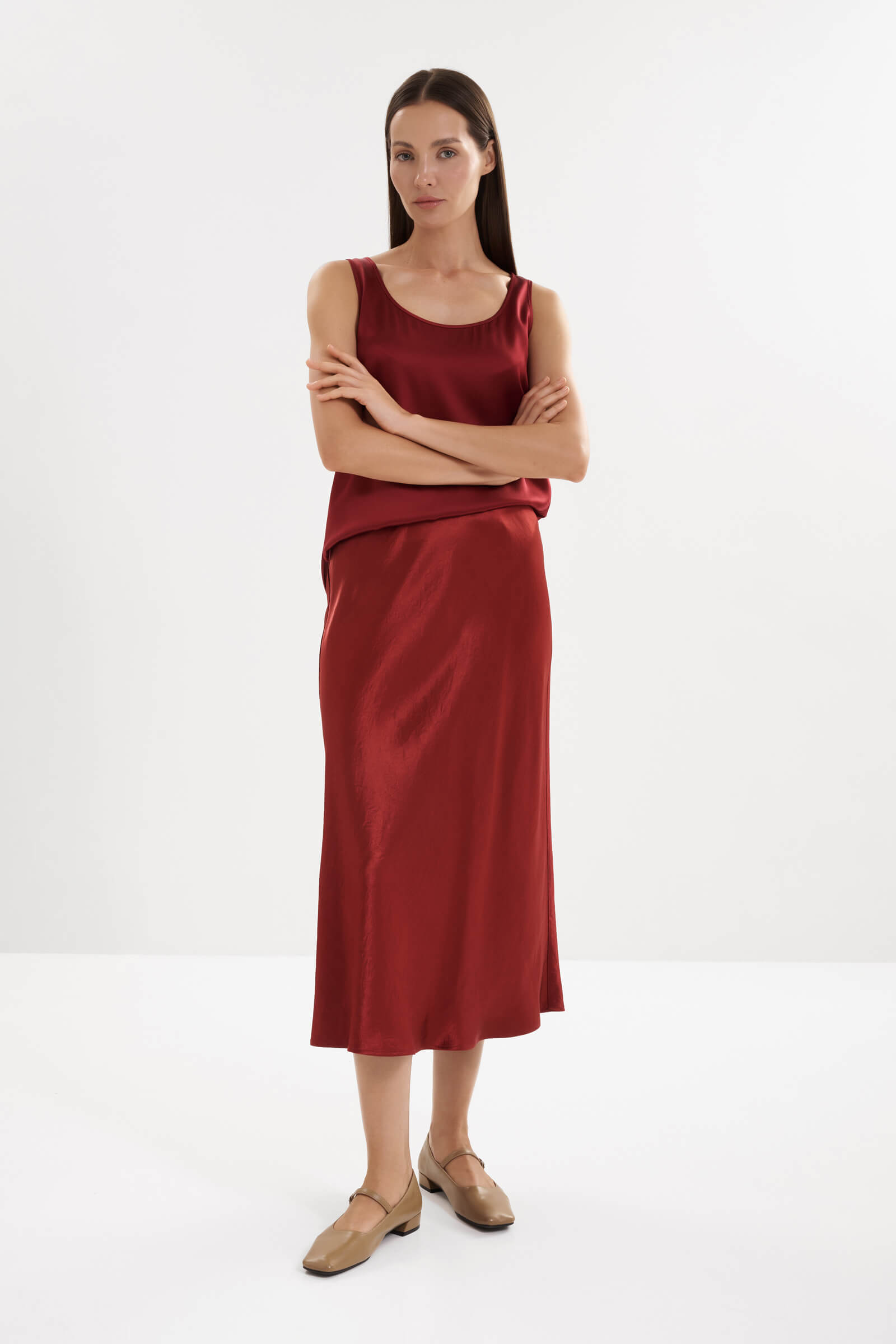 Атласная юбка с жатым эффектом MM