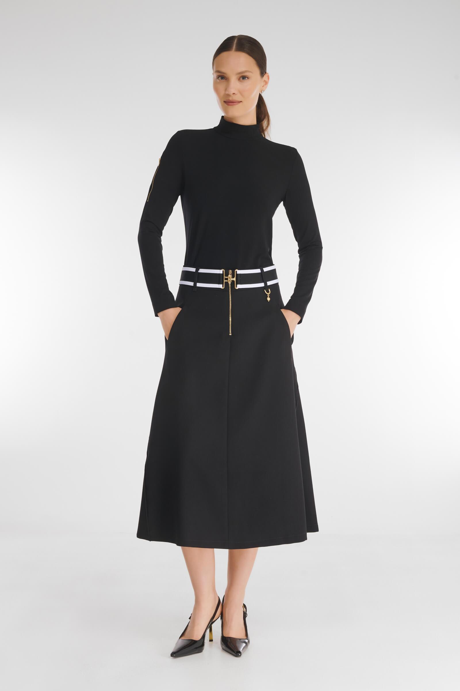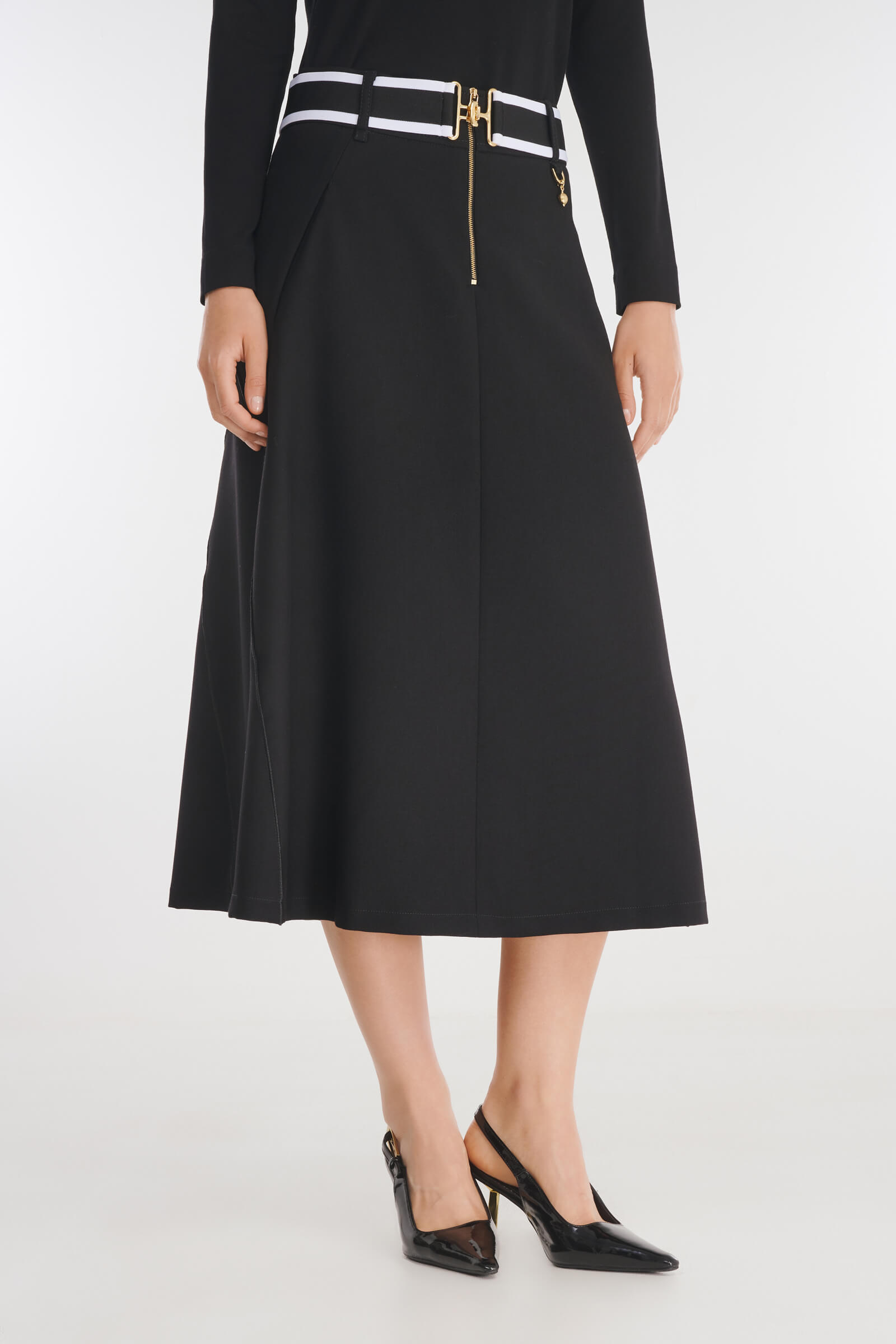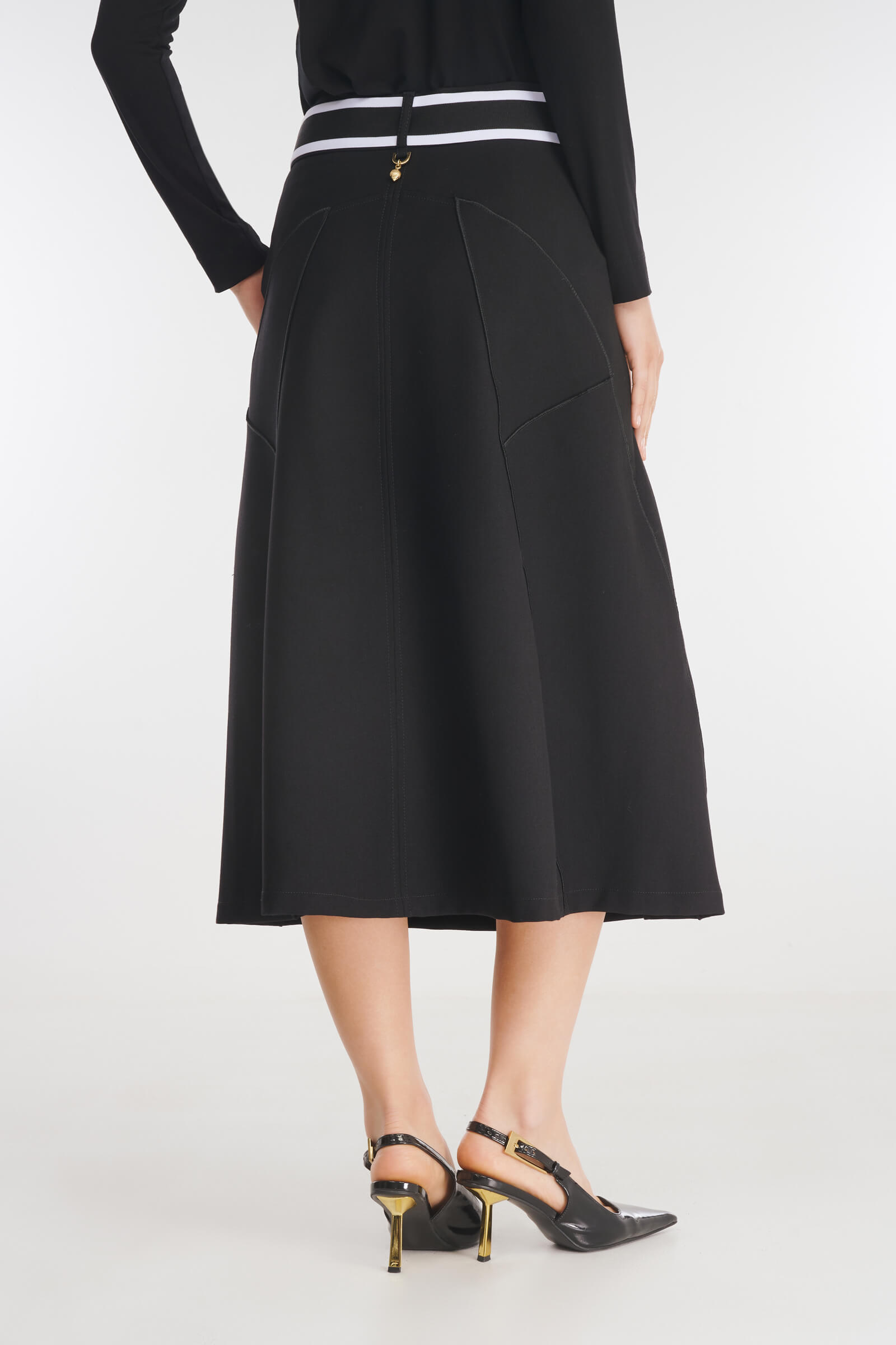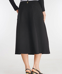 Расклешенная юбка с декоративными швами — для стильных повседневных образов. Модель выполнена из плотной смесовой вискозы. Прорезные карманы отвечают за функциональность. Для большего комфорта юбка дополнена гладкой подкладкой из вискозы с антистатическим свойством.