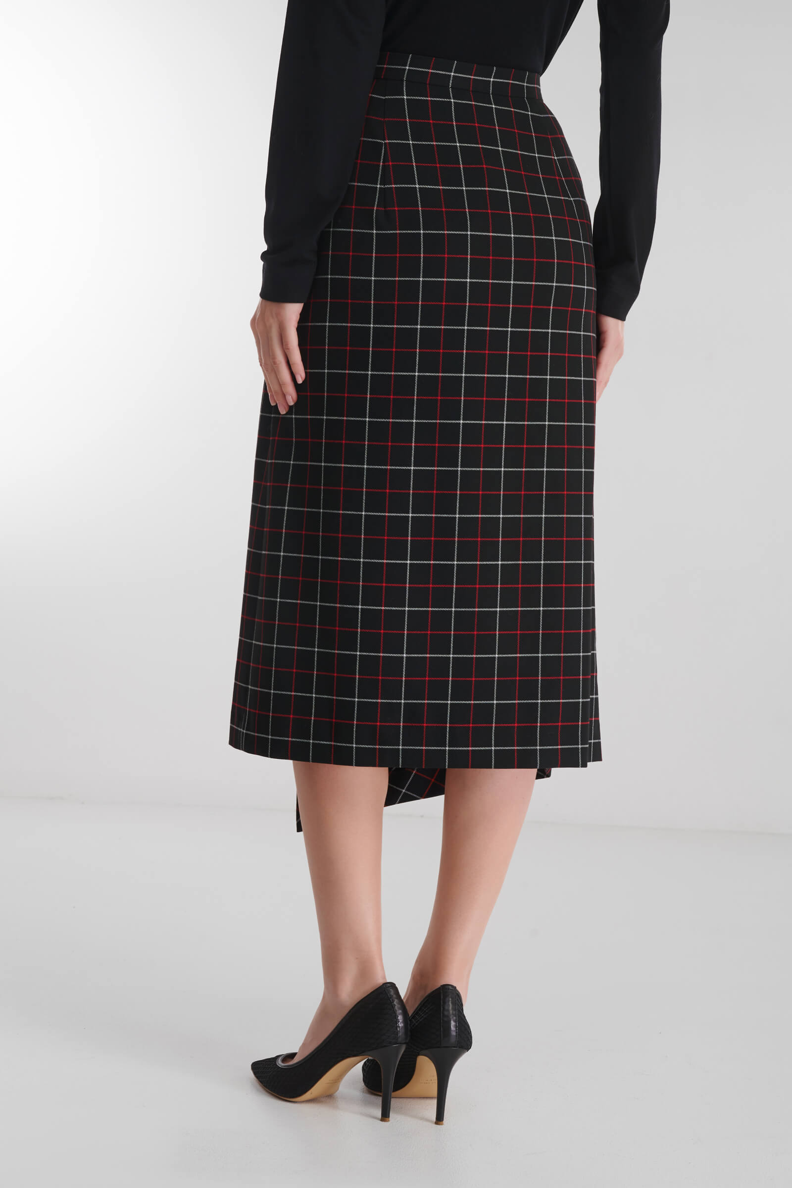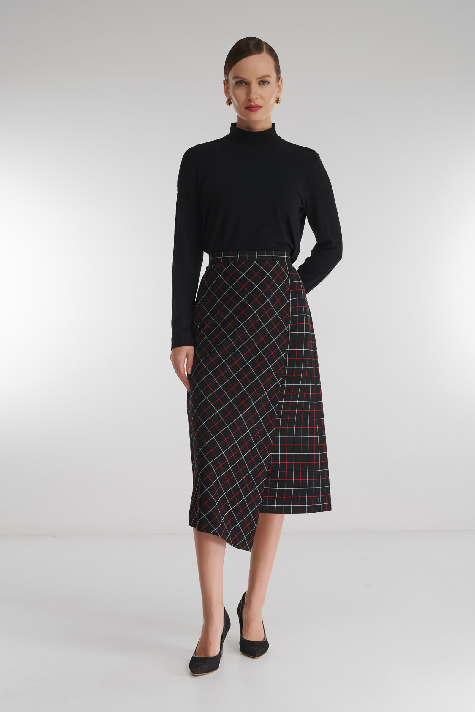 Элегантная юбка с акцентом на линию силуэта объединяет строгость формы и легкость движения. Графичный принт придает образу динамику, а продуманные пропорции создают безупречную посадку. Модель легко адаптируется под разное настроение — сочетайте ее с трикотажем для повседневной мягкости или с изящной блузкой для утонченного, собранного образа.