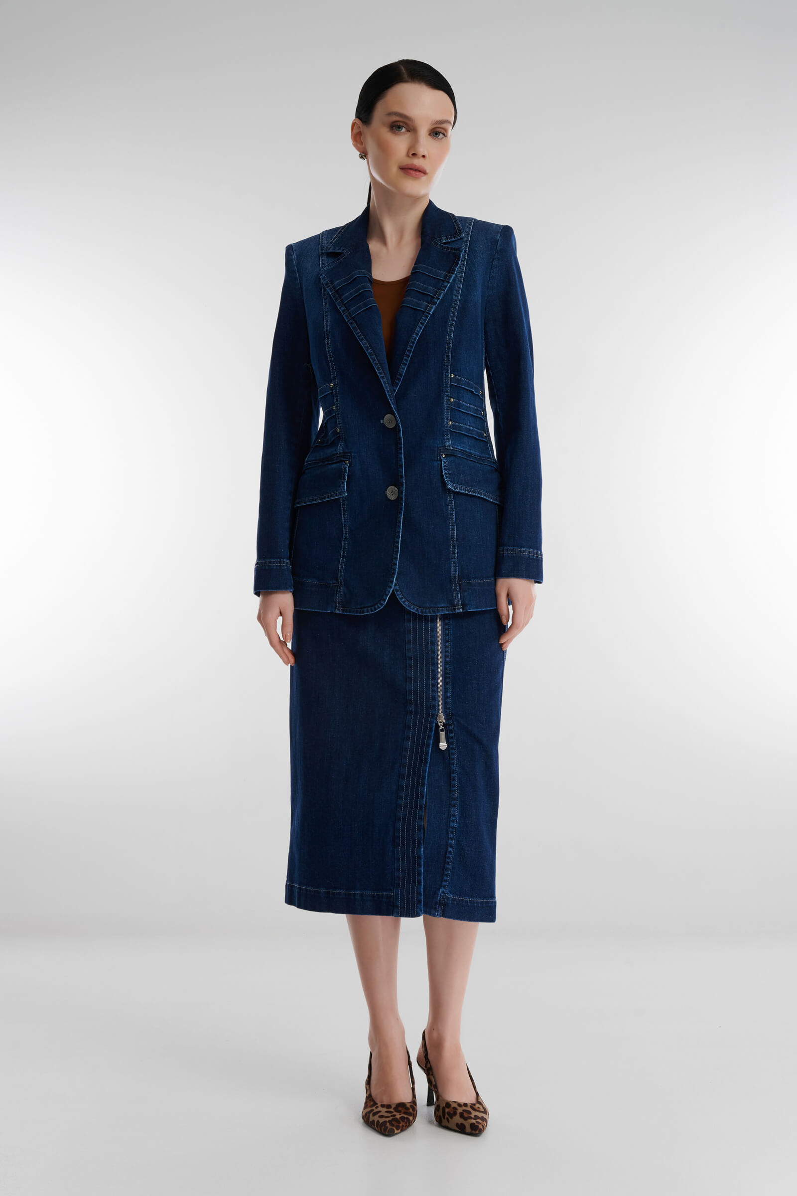 Деним остается одним из главных трендов последних сезонов, поэтому дизайнеры все чаще выходят за рамки создания исключительно джинсов. Мастера бренда предлагают добавить в базовую капсулу стильную джинсовую юбку. Дышащий материал на основе хлопка обеспечивает комфорт, а универсальный крой — безупречную посадку. Модель без труда сочетается с рубашками, топами и трикотажем.