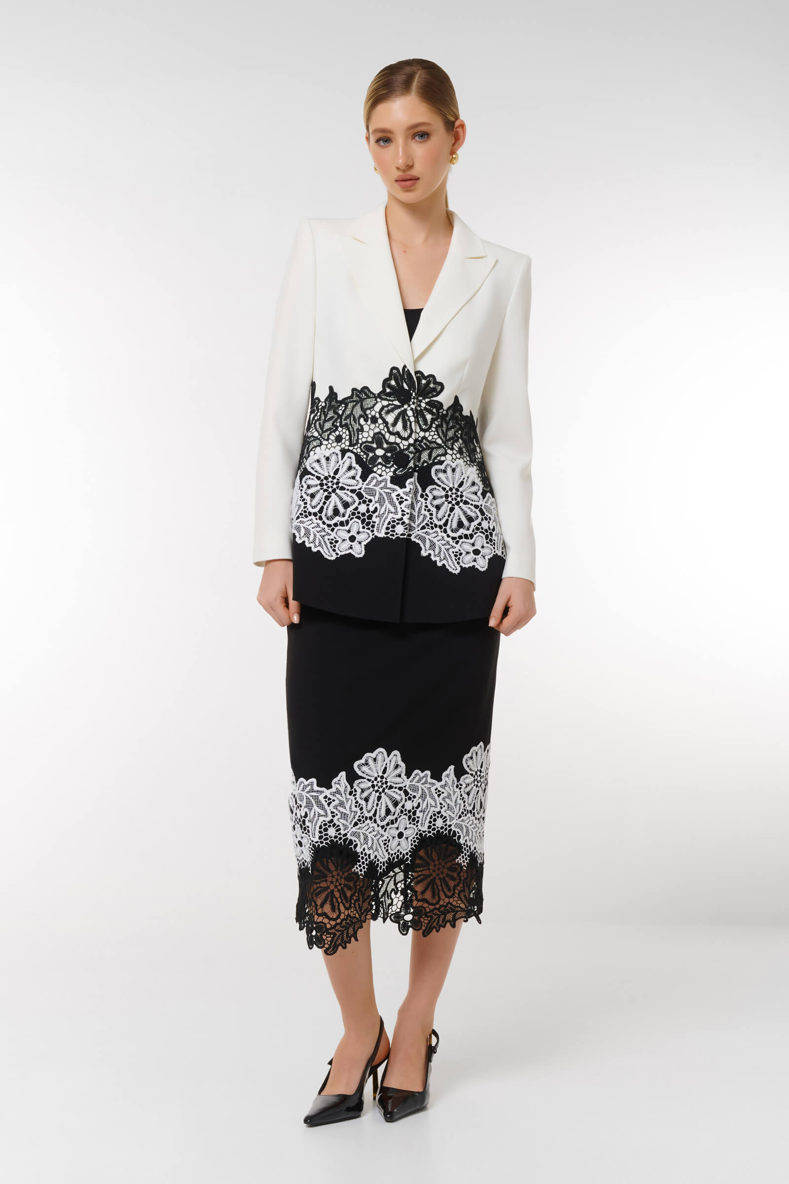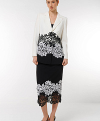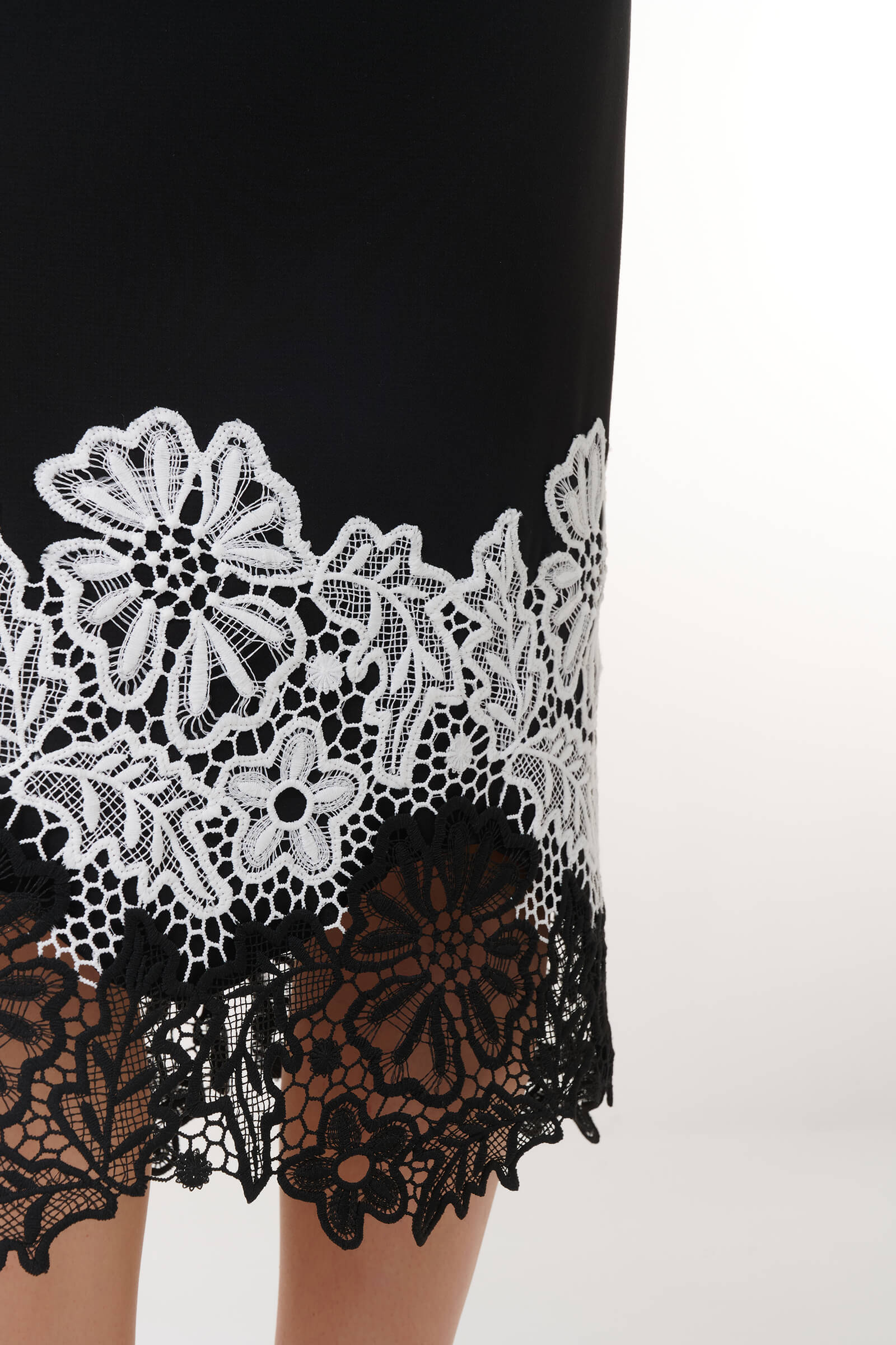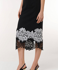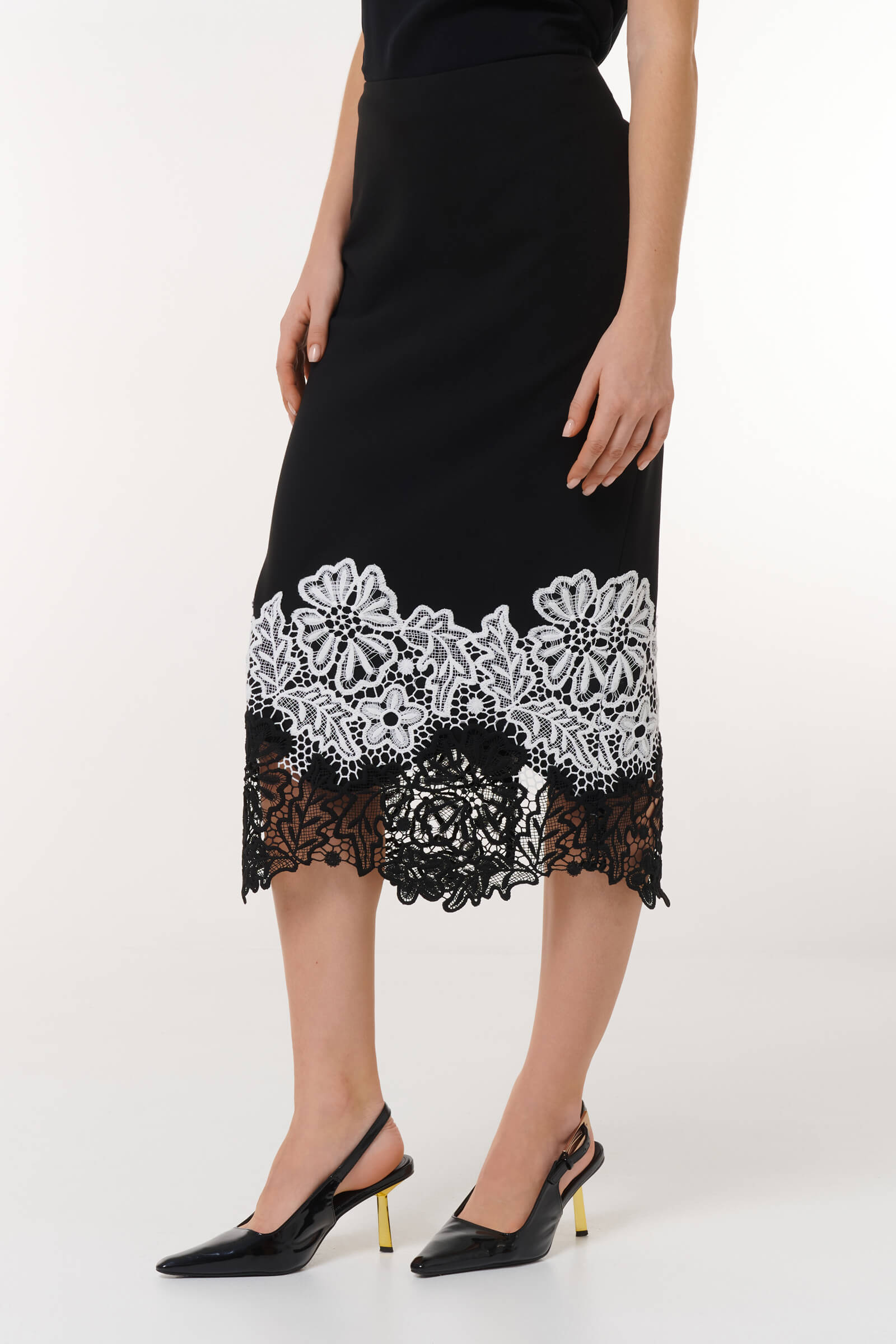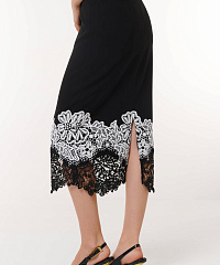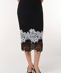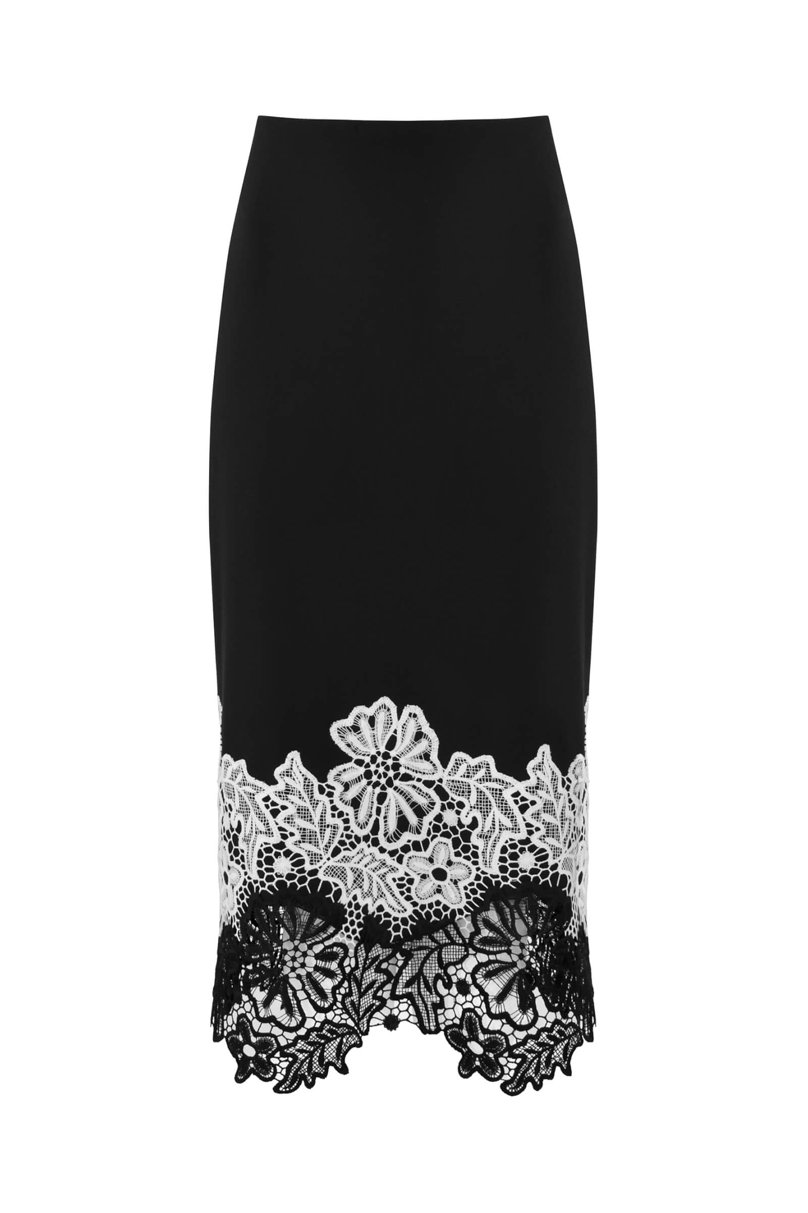 Юбка миди с кружевом. Эта стильная черная юбка с изысканно оформленным кружевным подолом станет отличным выбором как для офисных будней, так и для вечерних выходов.