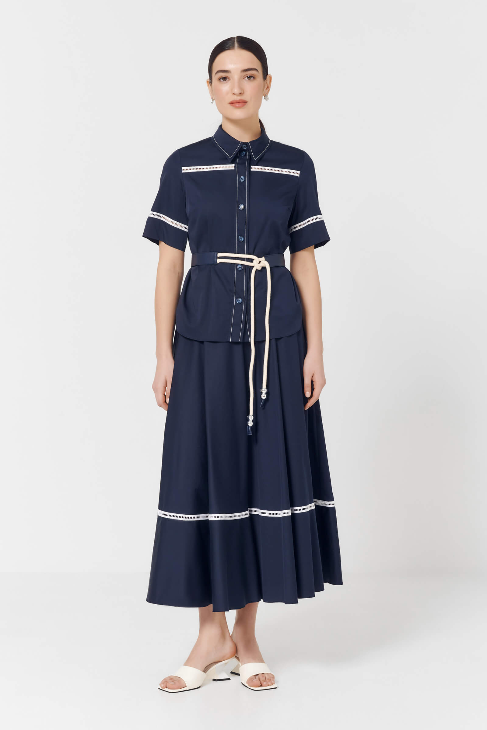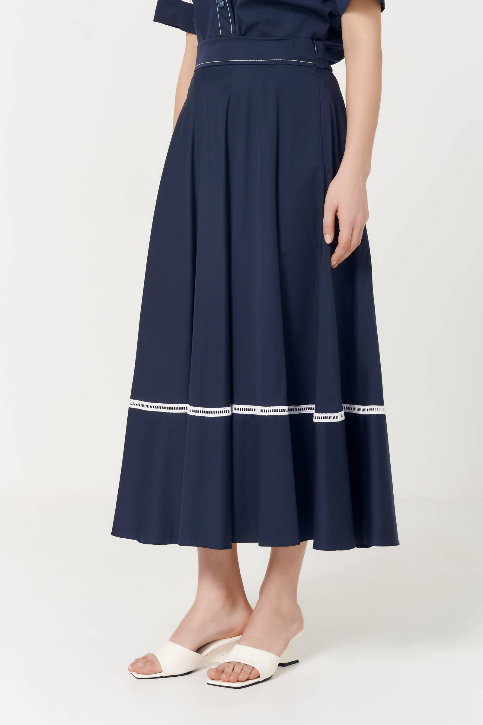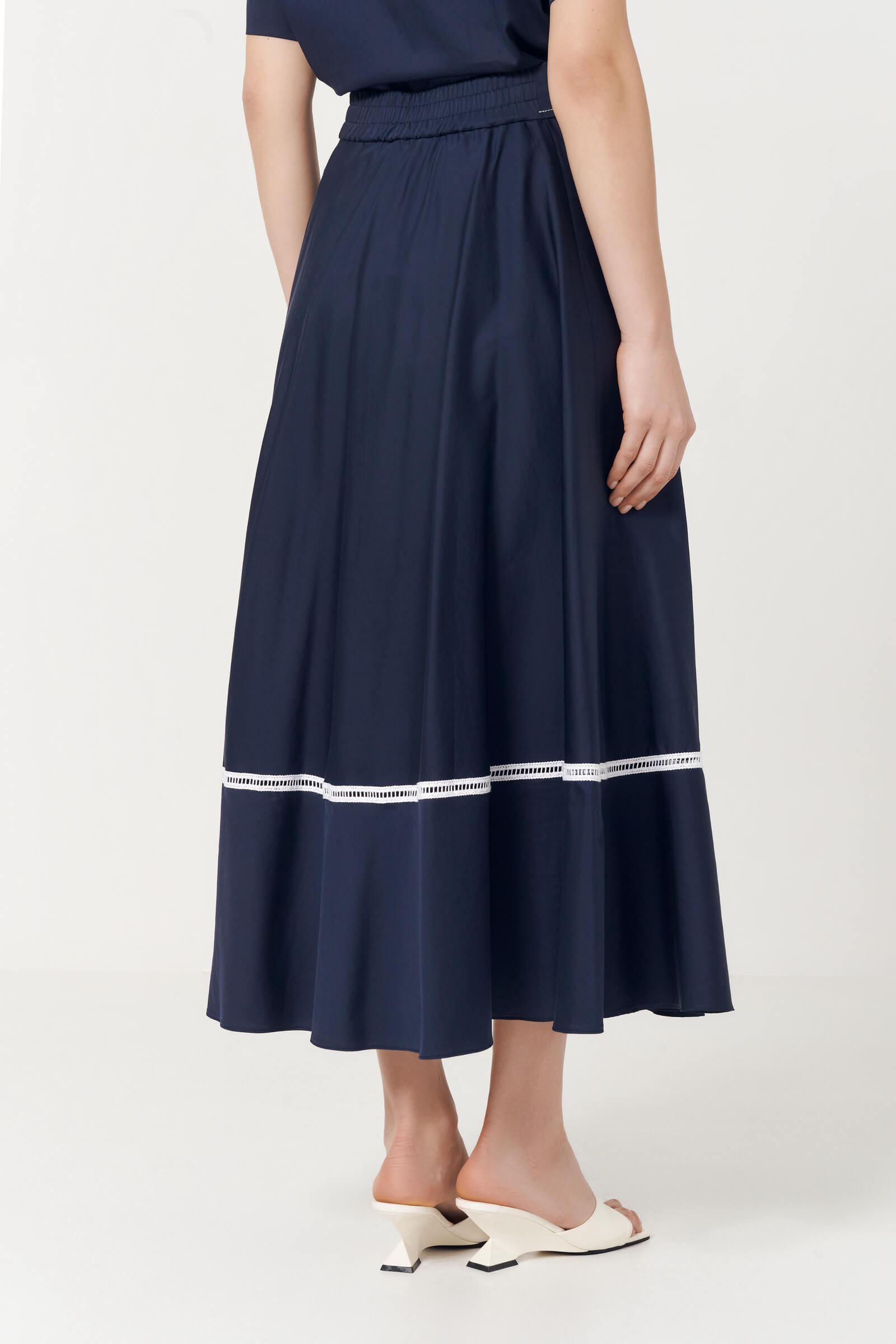 Юбка макси с расклёшенным силуэтом мягко движется при ходьбе, подчёркивая женственность.