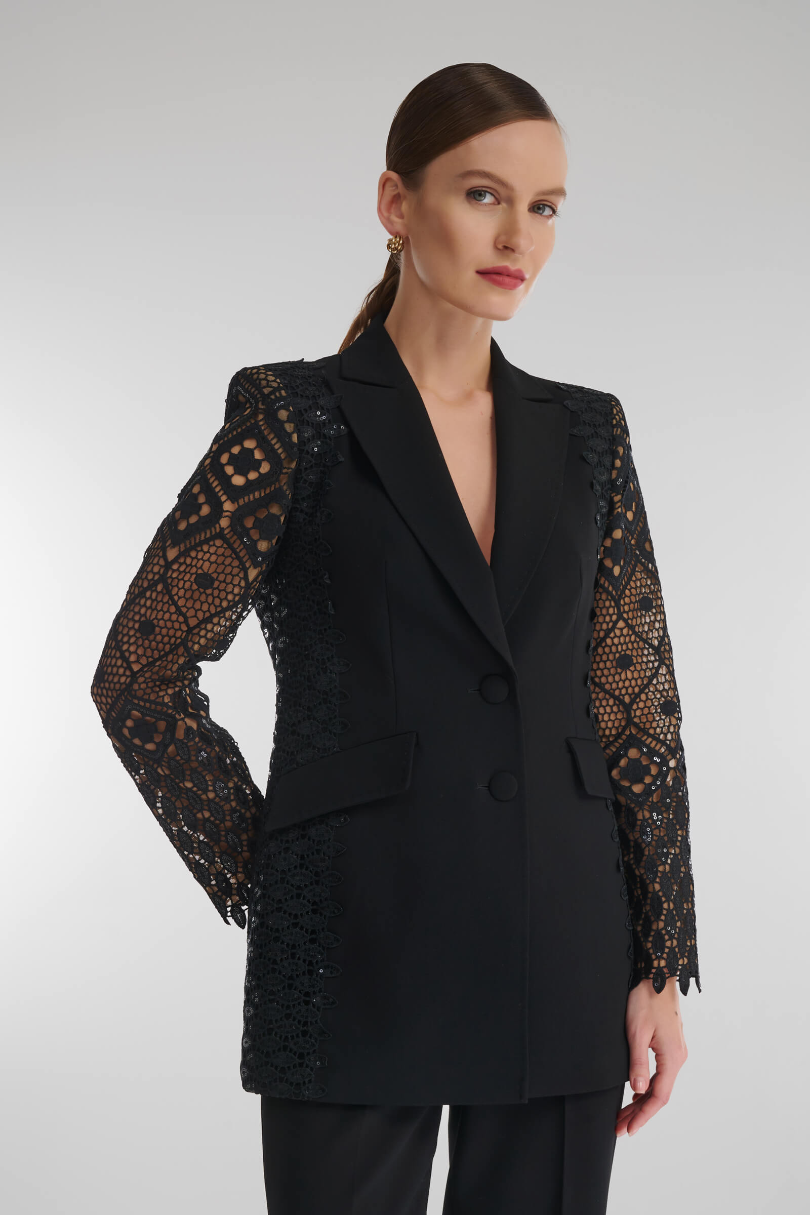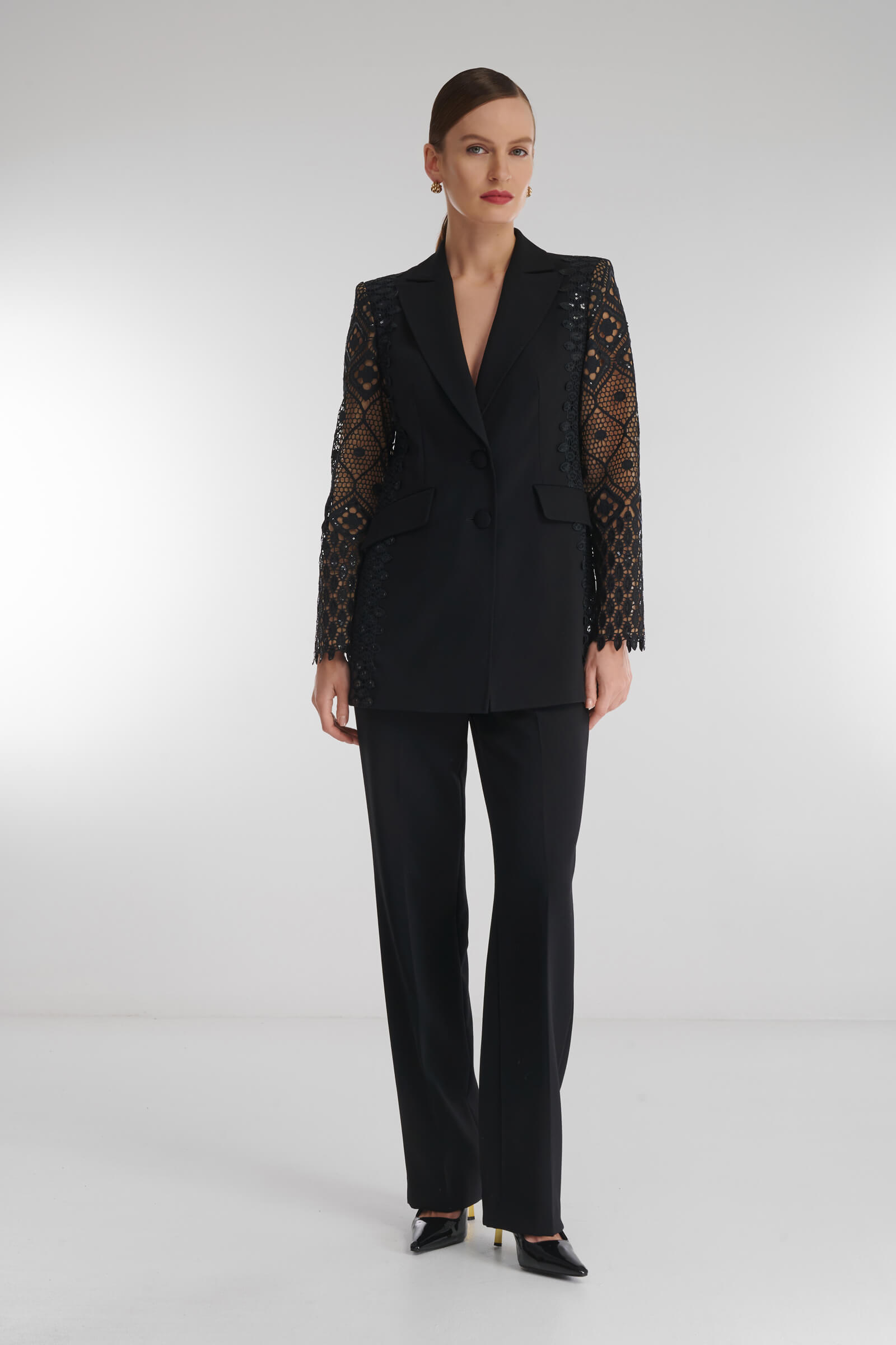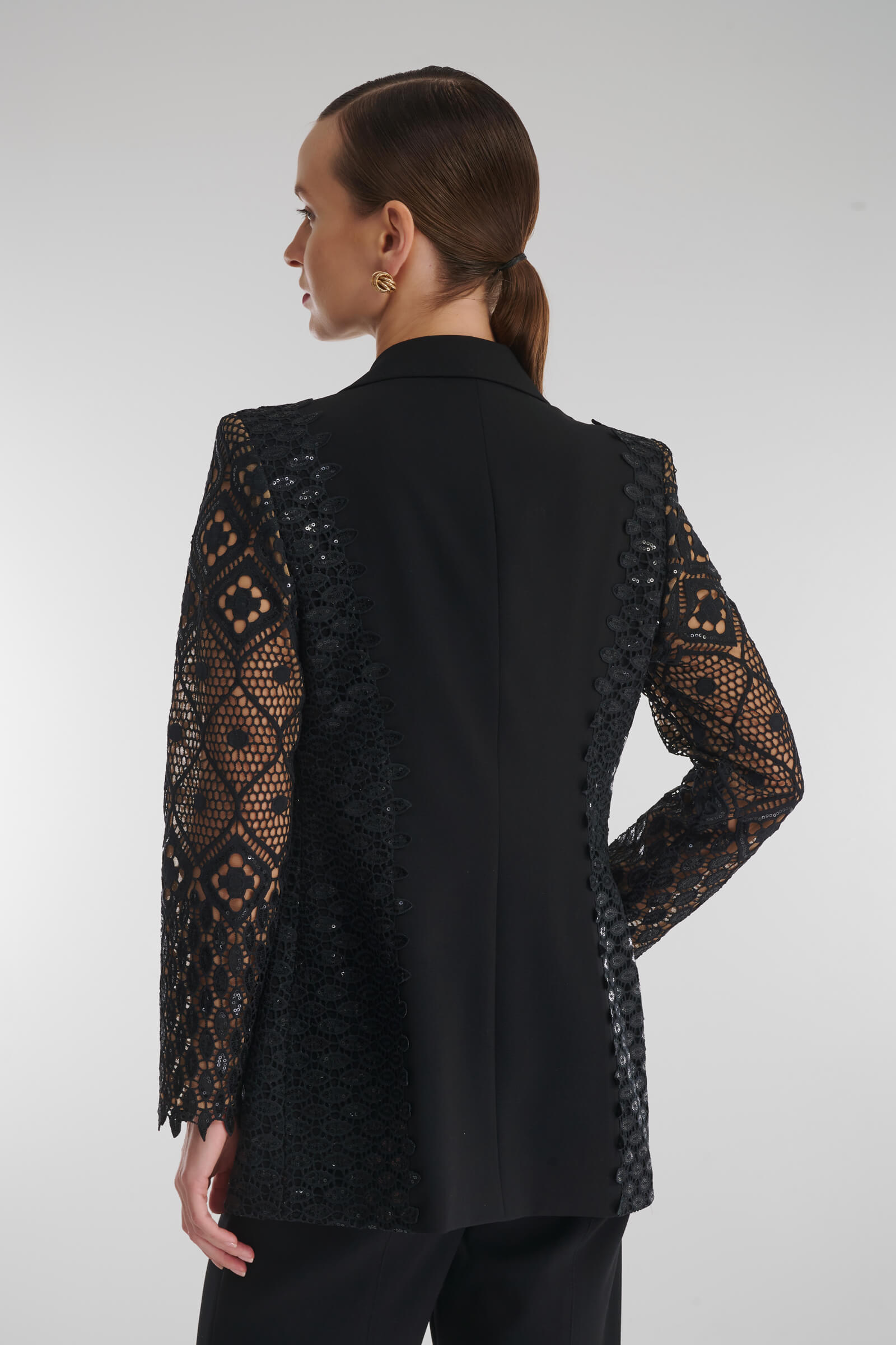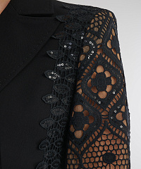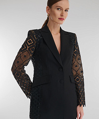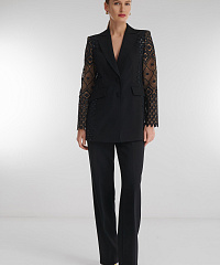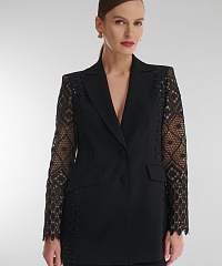 Жакет, который превращает каждый образ в маленькую историю роскоши и грации. Его линии подчеркивают силуэт, создавая ощущение легкости и аристократической утонченности, а блеск и фактура деталей словно играют со светом при каждом движении. Модель становится акцентом ансамбля, добавляя изысканность и характер как в дневных образах, так и в вечерних выходах.