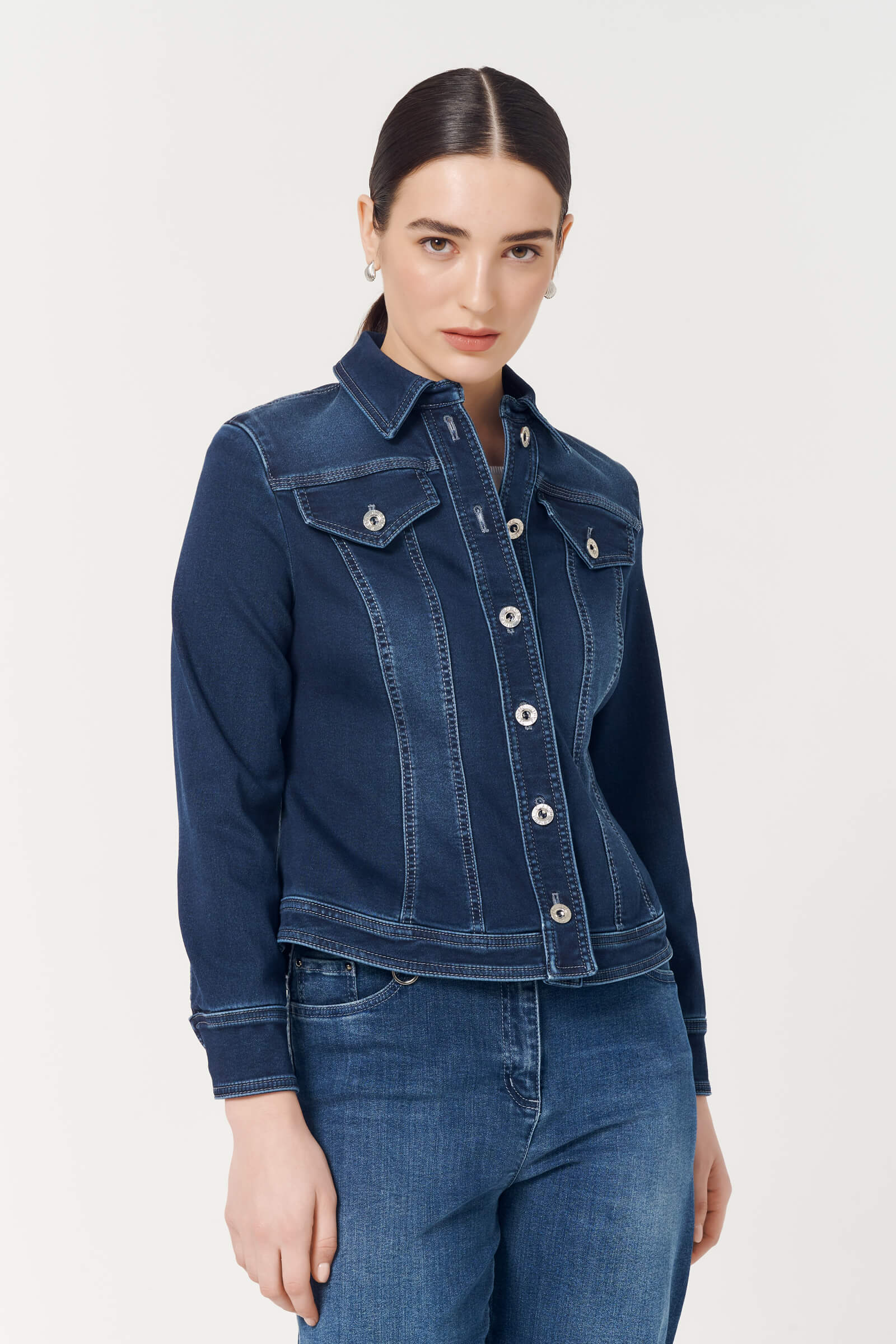 Джинсовая куртка из денима с потертостями идеально подойдет для создания повседневного образа на каждый день. Приталенный крой куртки изящно подчеркивает изгибы фигуры. Надежная и долговечная фурнитура в виде пуговиц на болтах, сделает модель любимой вещью в гардеробе.