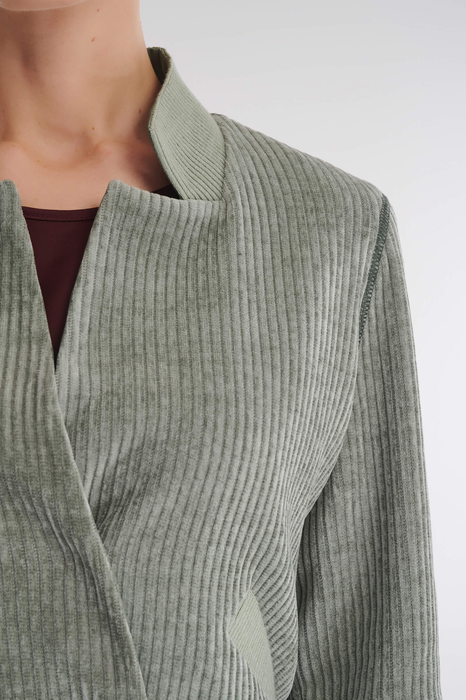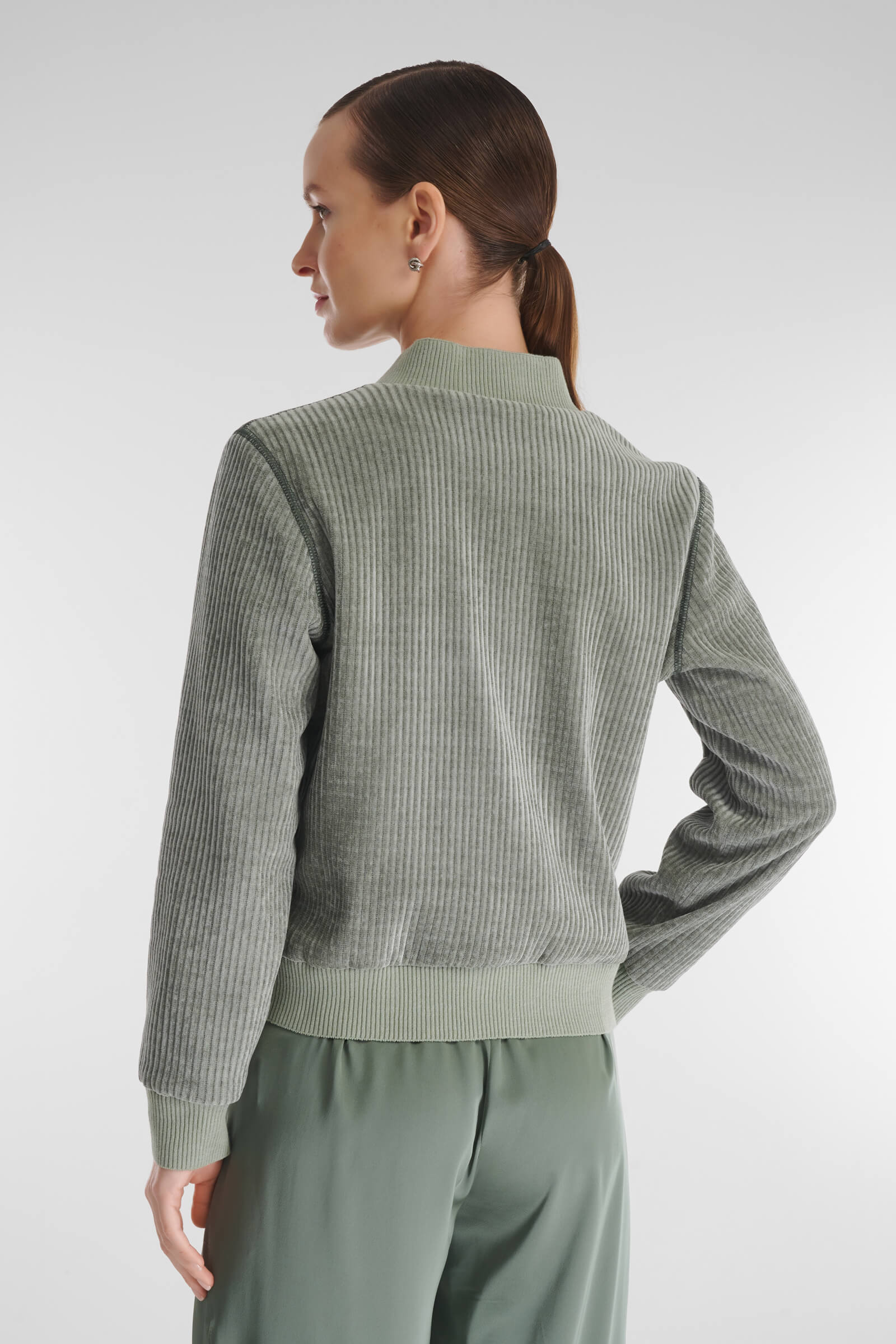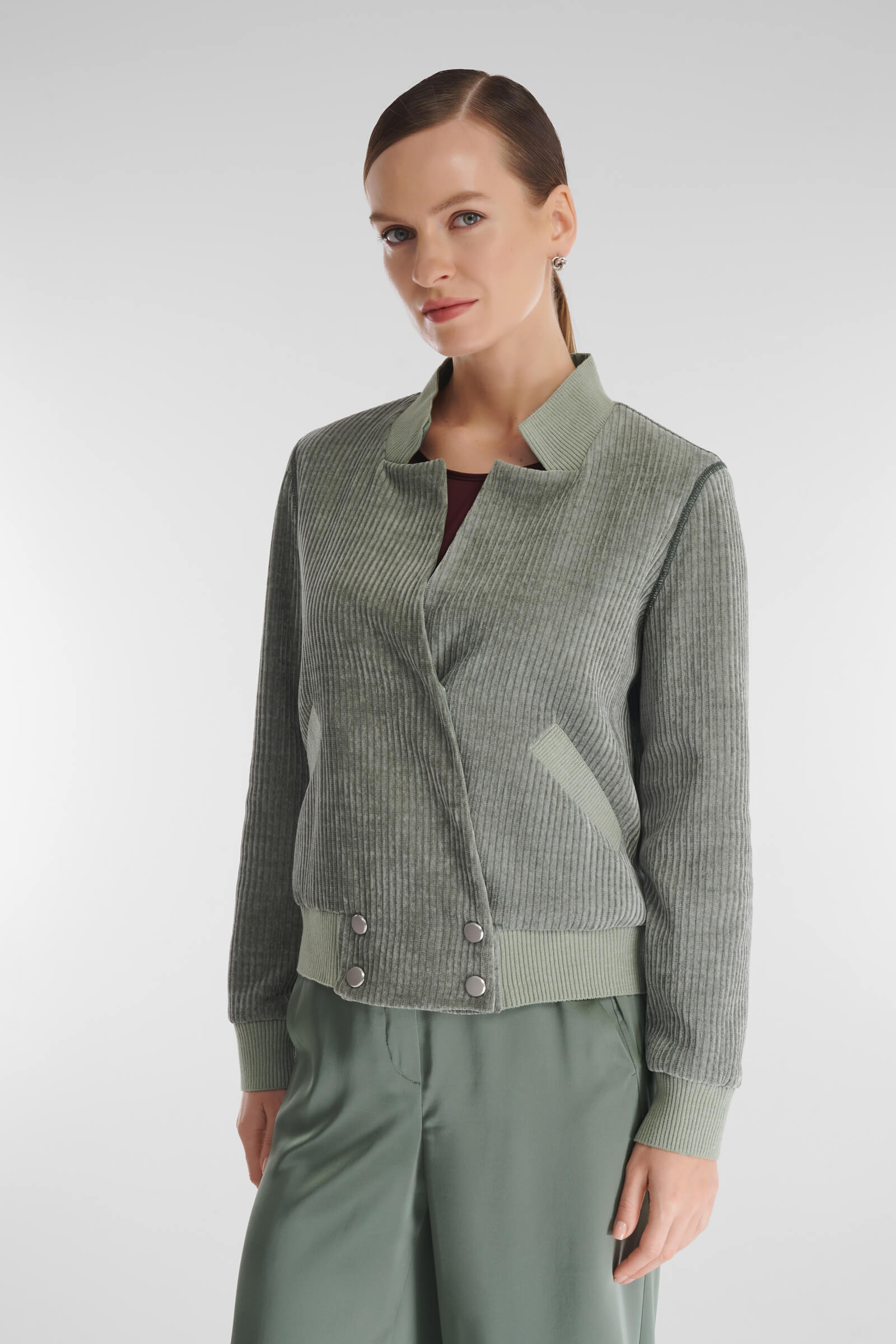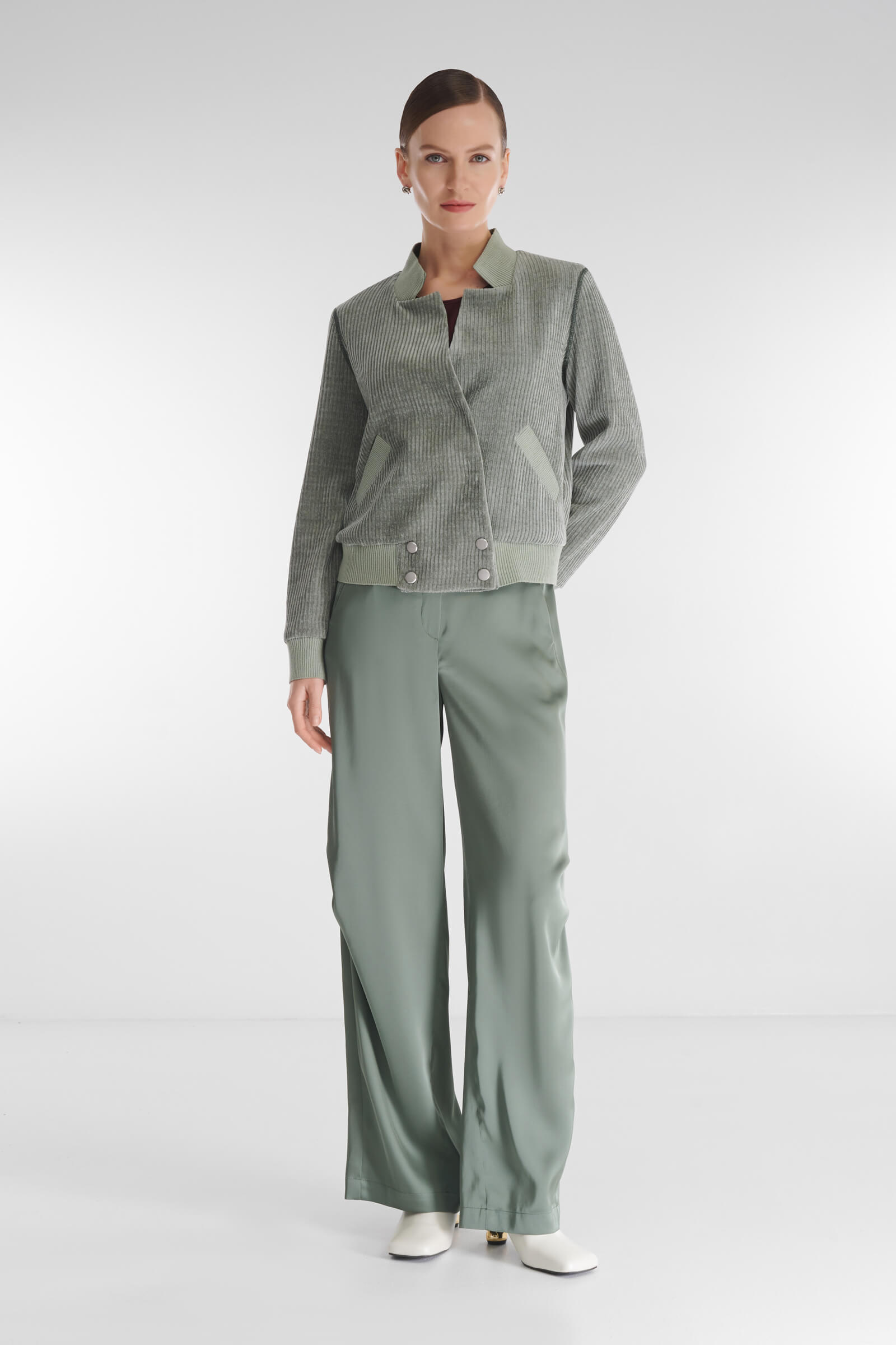 Идеальное сочетание уюта, практичности и стиля воплотилось в бомбере из мягкого вельвета. Атласные детали на воротнике и карманах создают элегантный акцент, а эластичные манжеты и нижний край в рубчик обеспечивают удобную посадку и подчеркивают современный силуэт.