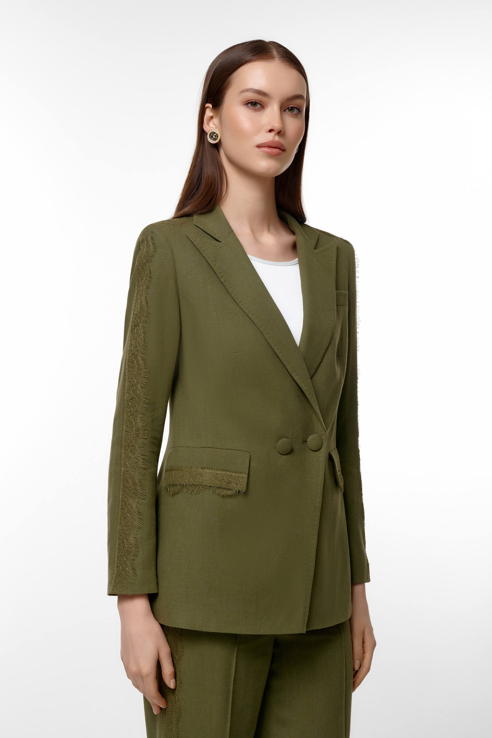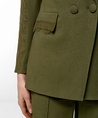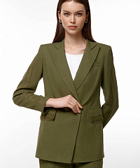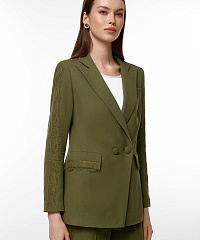 Очаровательный жакет из вискозы и льна — идеальный выбор для любительниц стиля и комфорта. Стильный крой с двойными пуговицами подчеркивает фигуру, а декорированные рукава добавляют изюминку. Жакет отлично комбинируется с юбками и брюками.