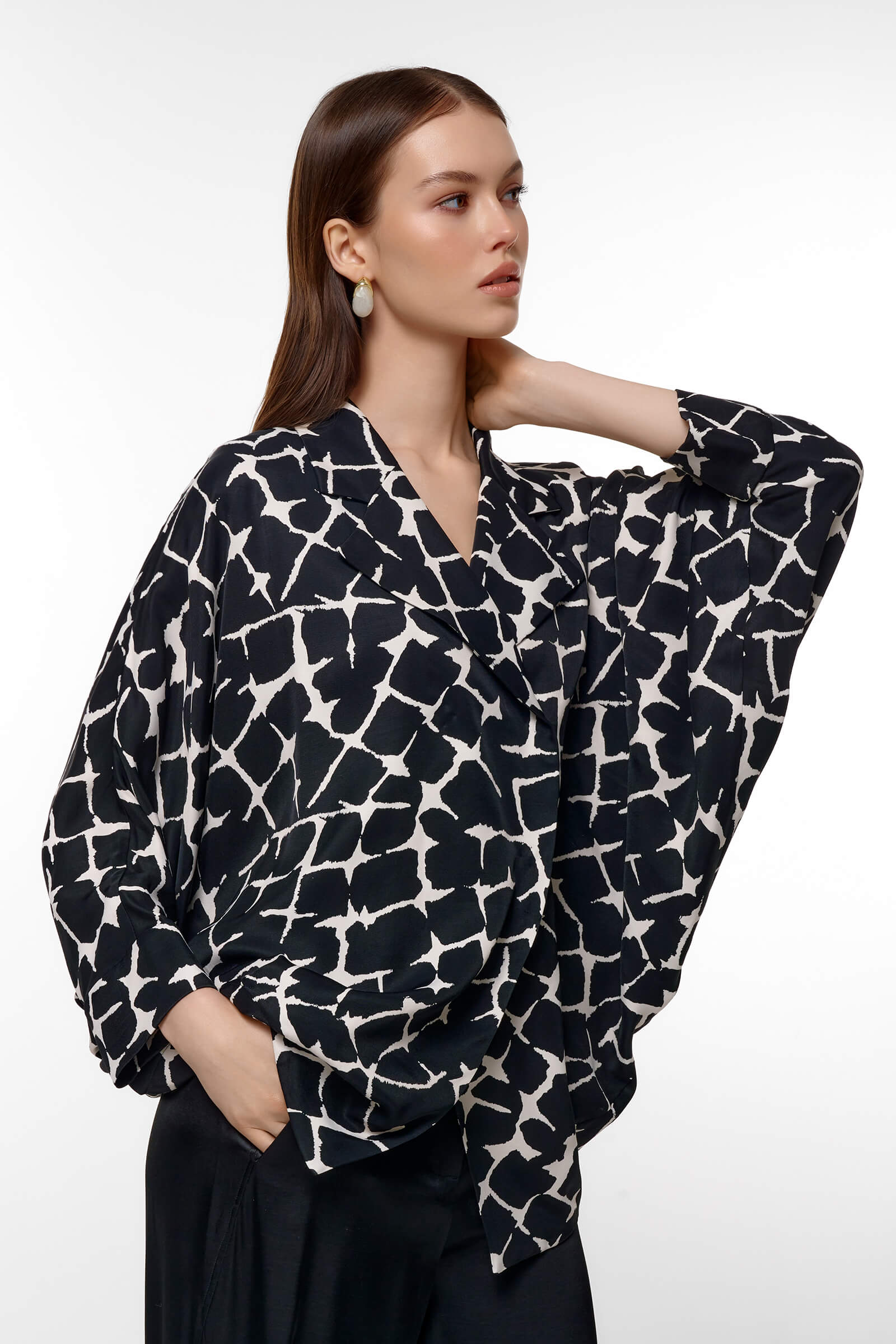 Жакет с рукавами "летучая мышь" с абстрактным принтом
