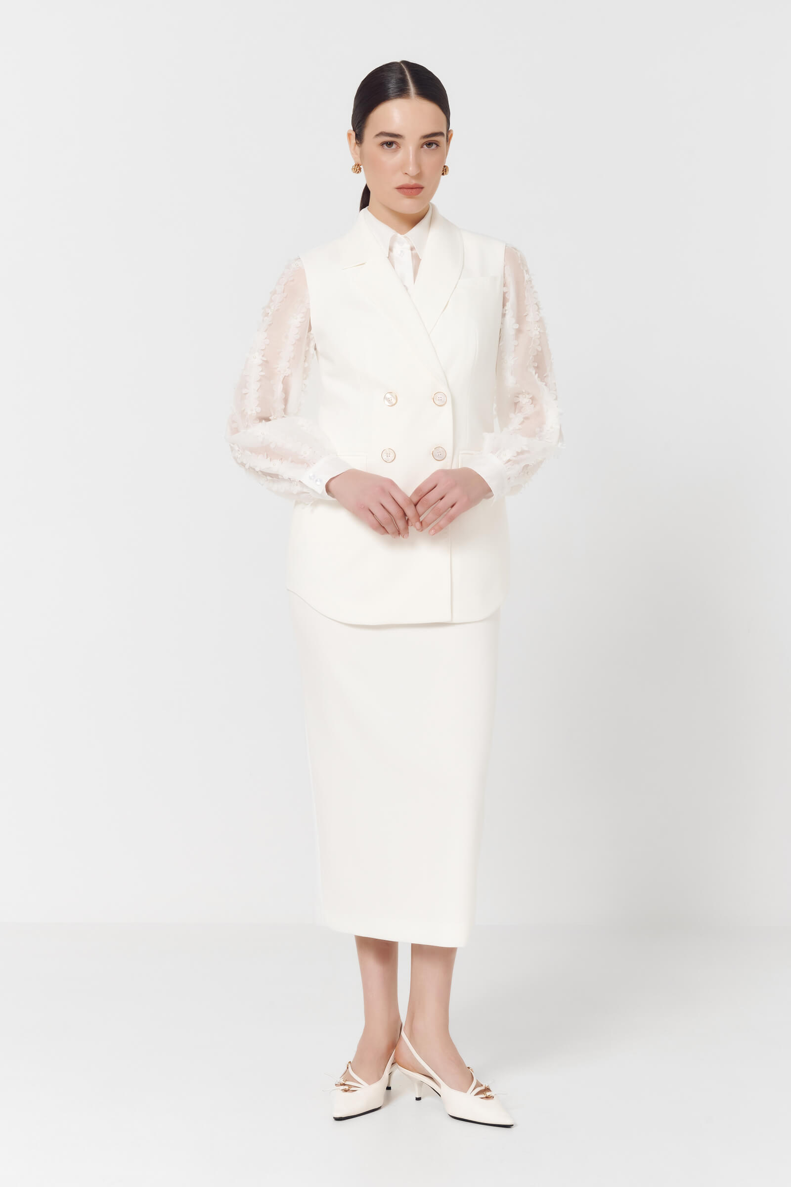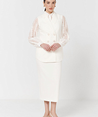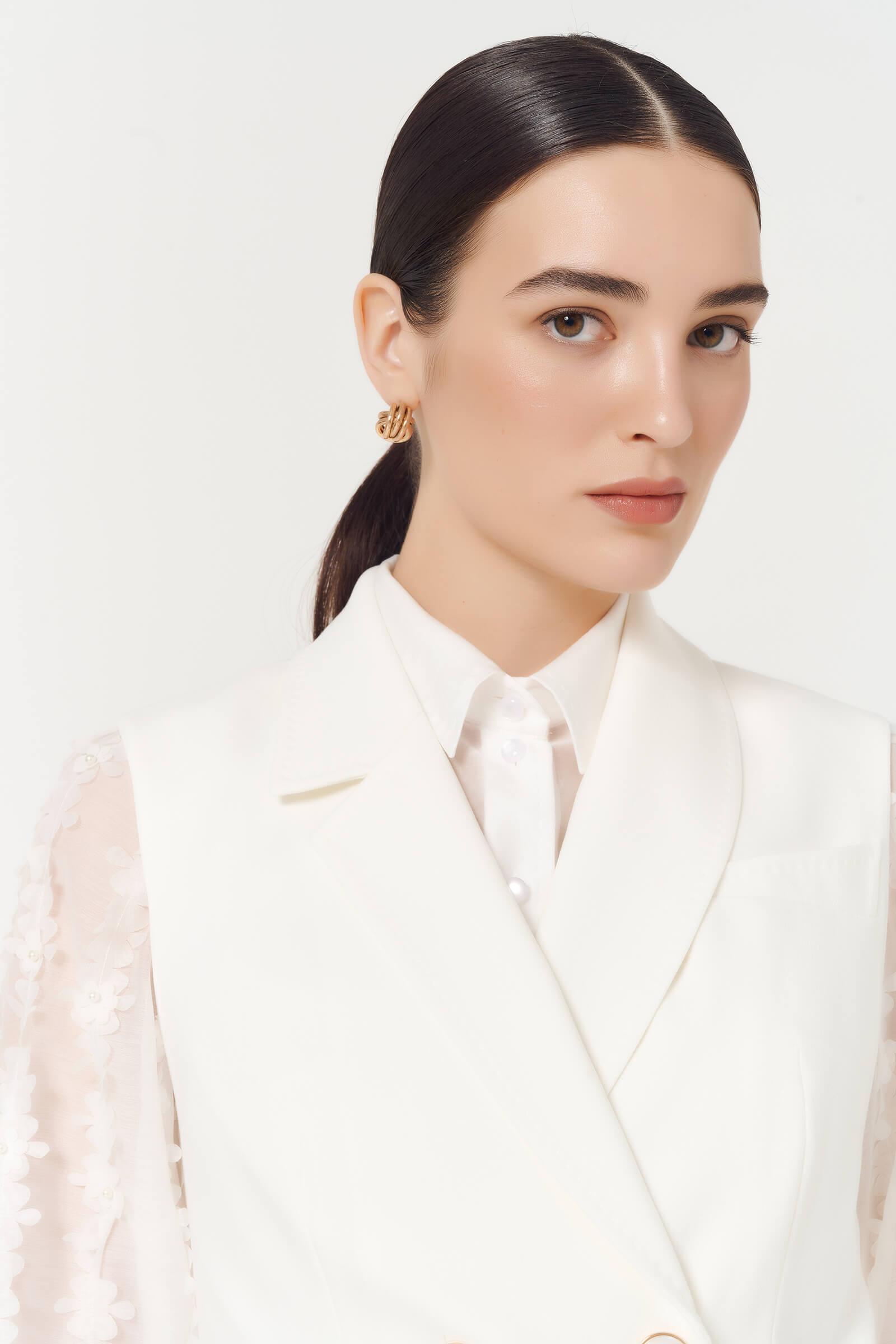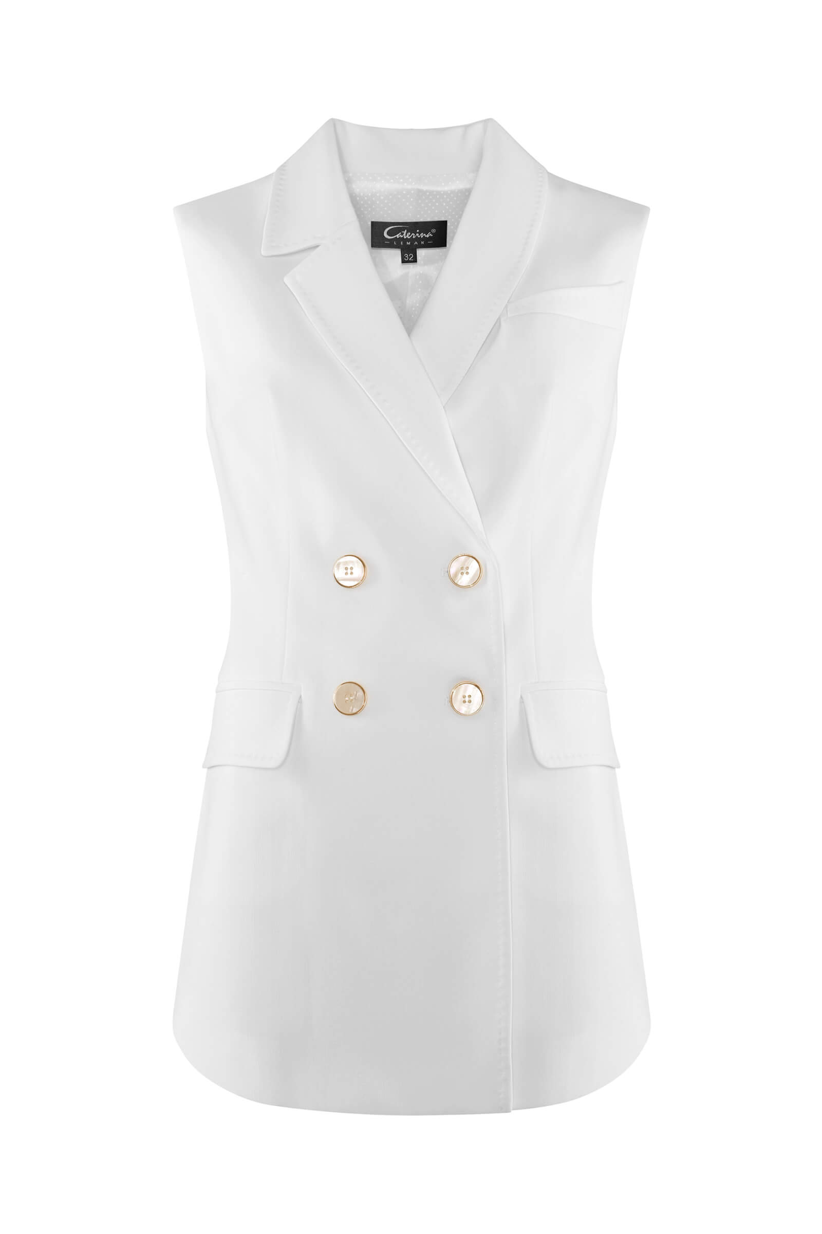 Жилет с английским воротником незаменим для создания стильных летних образов.Сочетайте жилет с брюками или юбкой для создания готового комплекта.